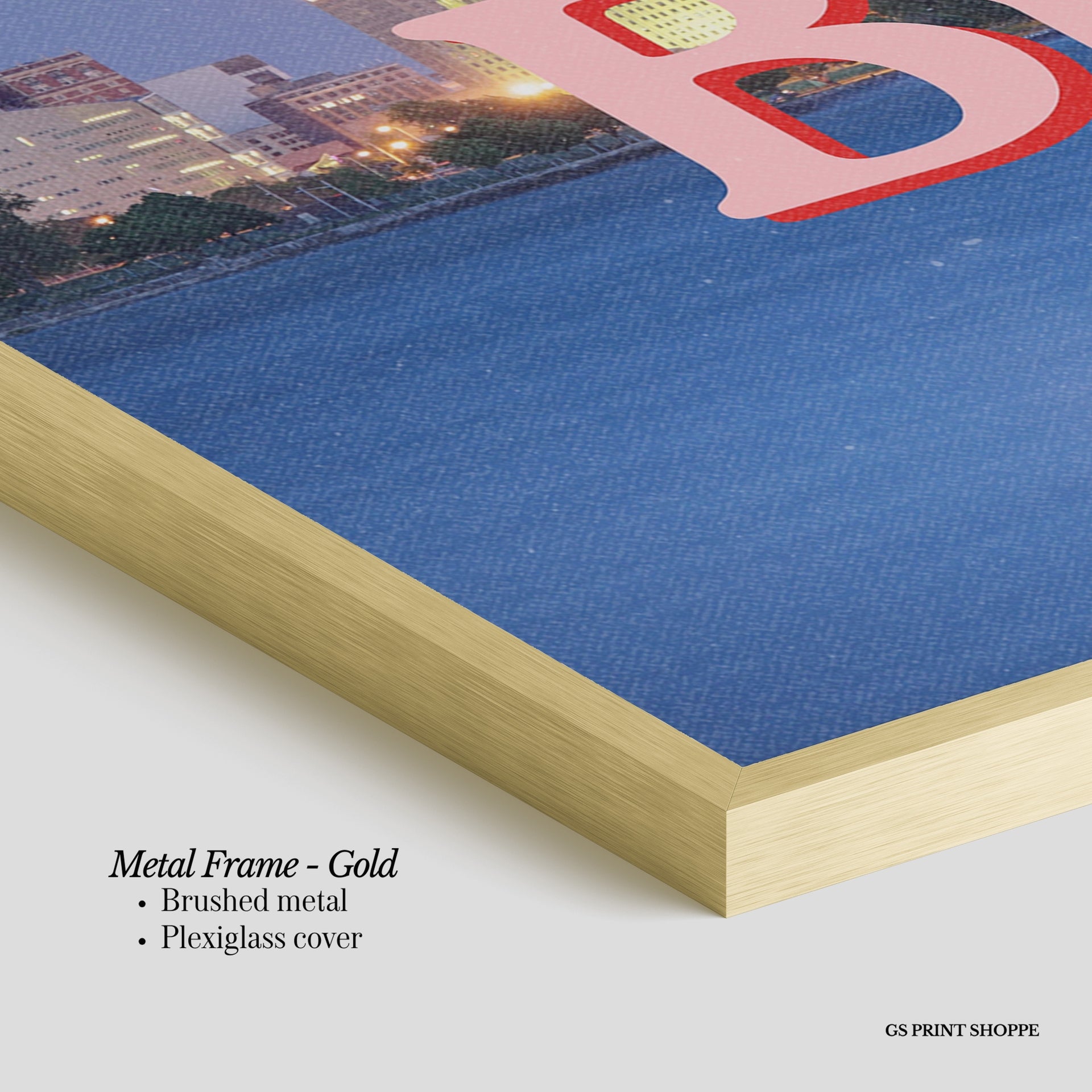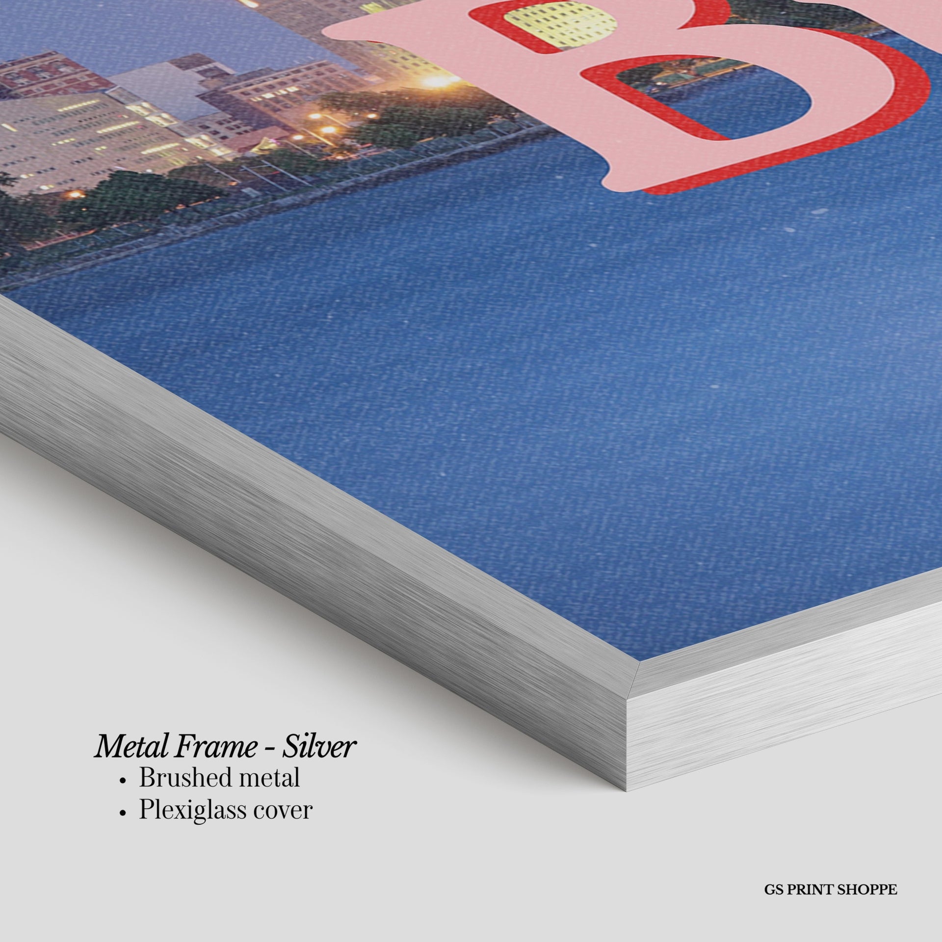 Metal Frame: Sleek and modern, our metal frame is crafted with brushed metal for a polished finish. It comes with durable plexiglass and sturdy metal hangers for horizontal or vertical display.