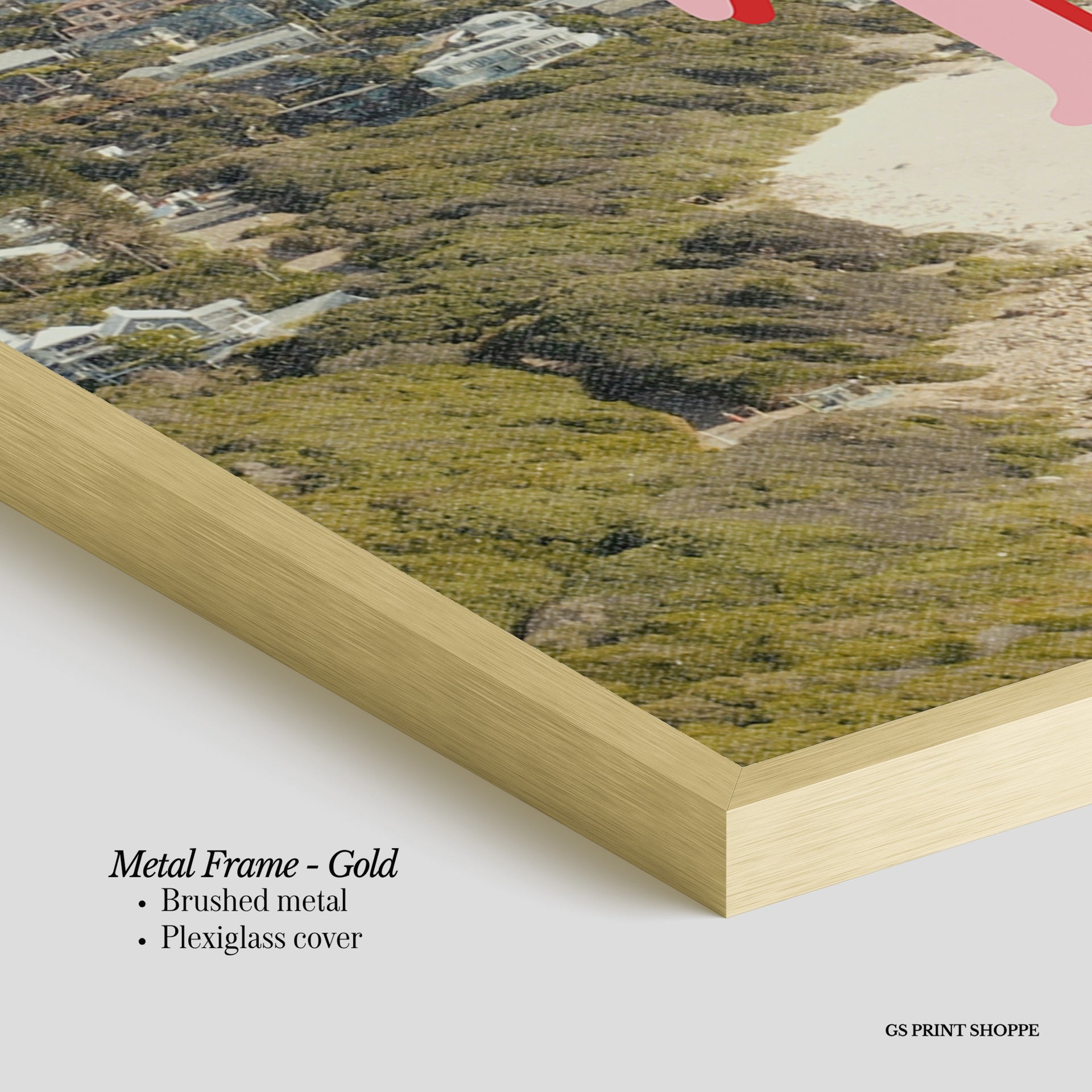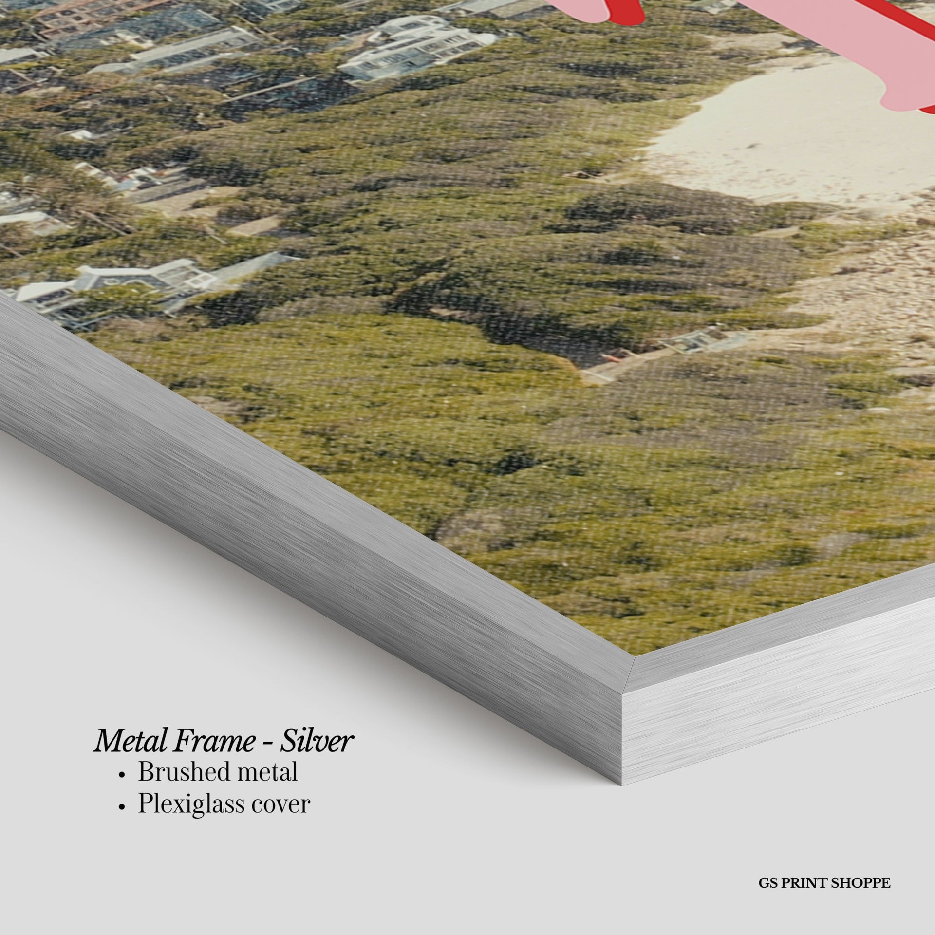 Metal Frame: Sleek and modern, our metal frame is crafted with brushed metal for a polished finish. It comes with durable plexiglass and sturdy metal hangers for horizontal or vertical display.