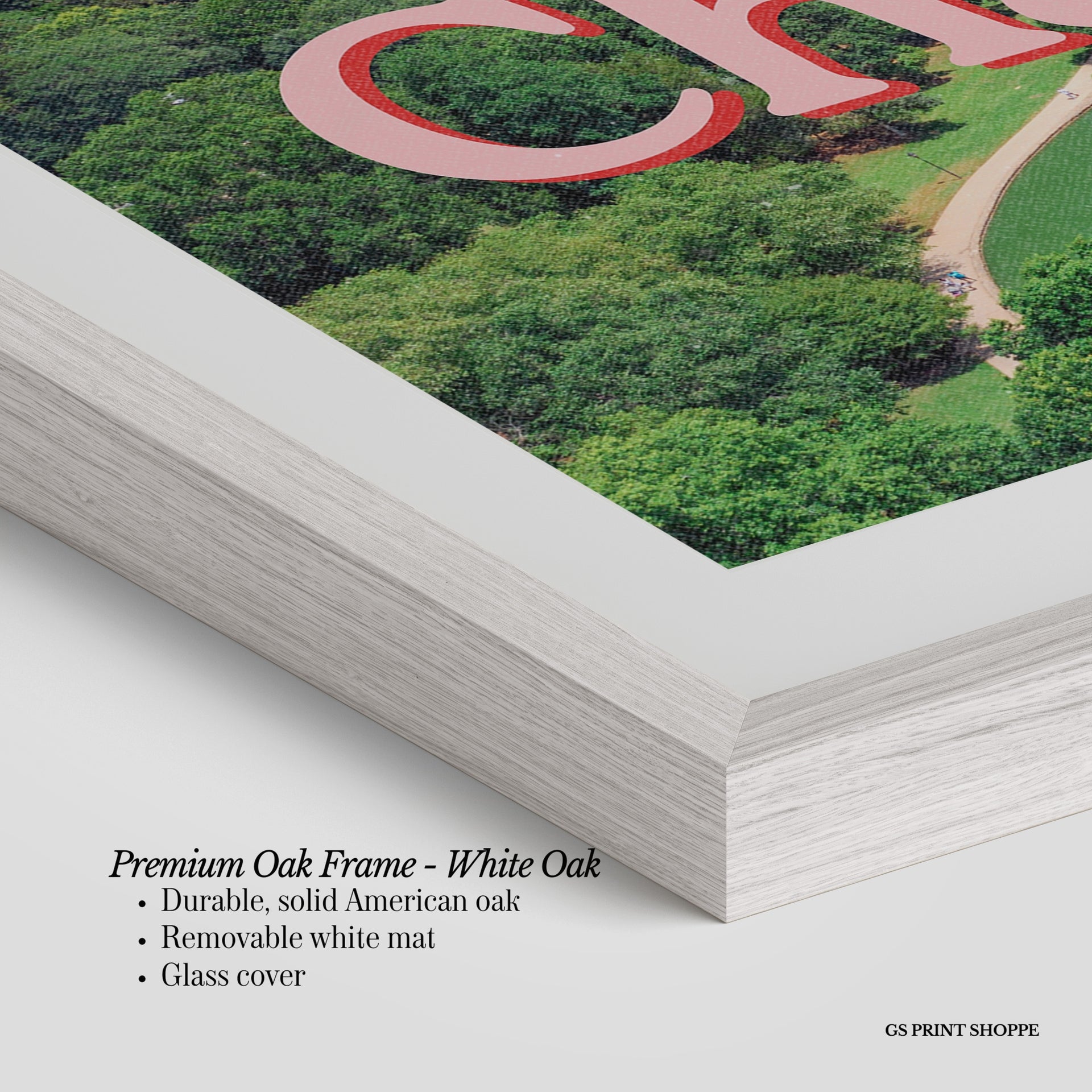 Premium Oak Frame: Our premium oak frame is crafted from solid American oak, offering a warm, natural feel with a high-end finish. We complete this elevated offering with a bright white removable mat and real glass for a versatile and polished look.