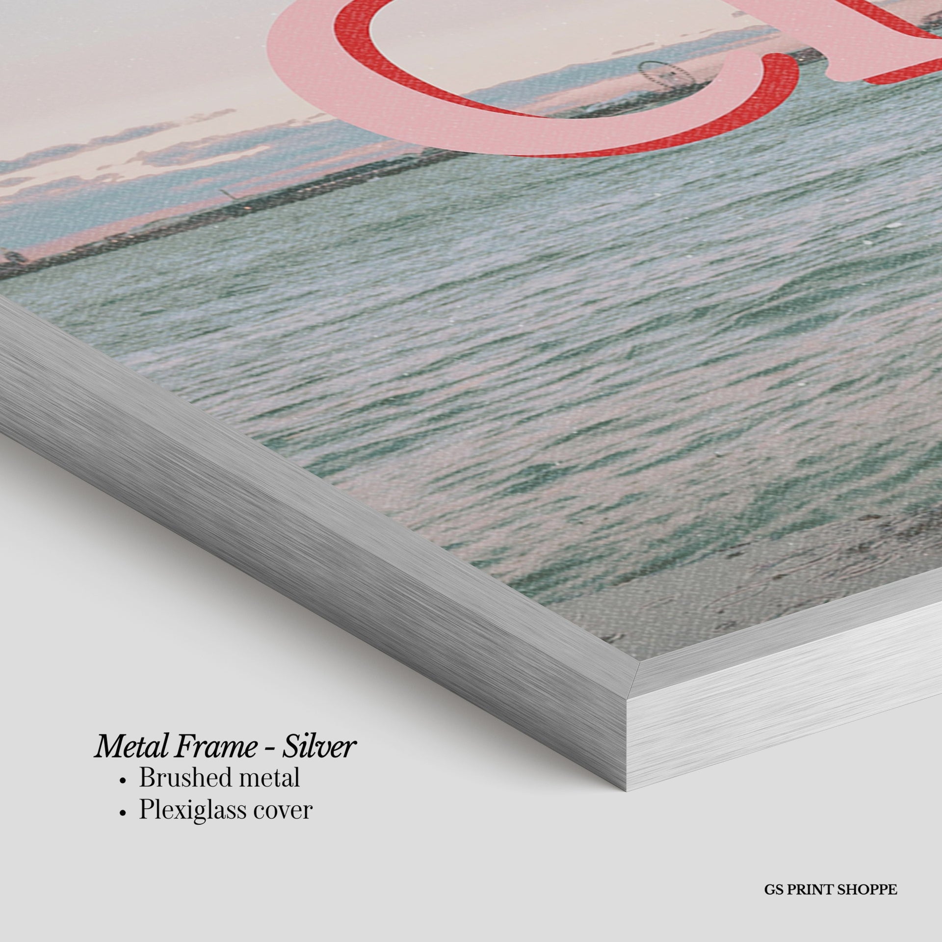 Metal Frame: Sleek and modern, our metal frame is crafted with brushed metal for a polished finish. It comes with durable plexiglass and sturdy metal hangers for horizontal or vertical display.