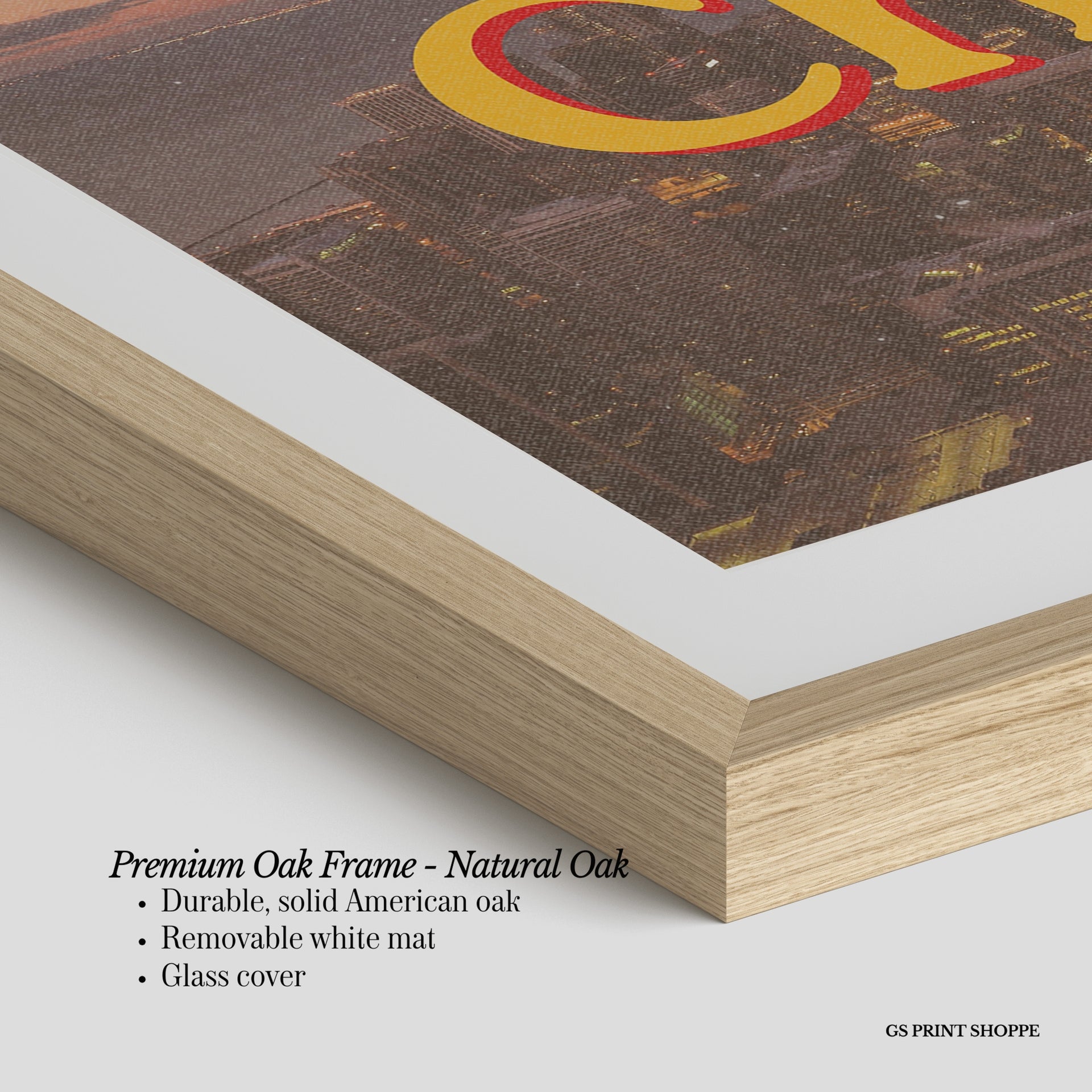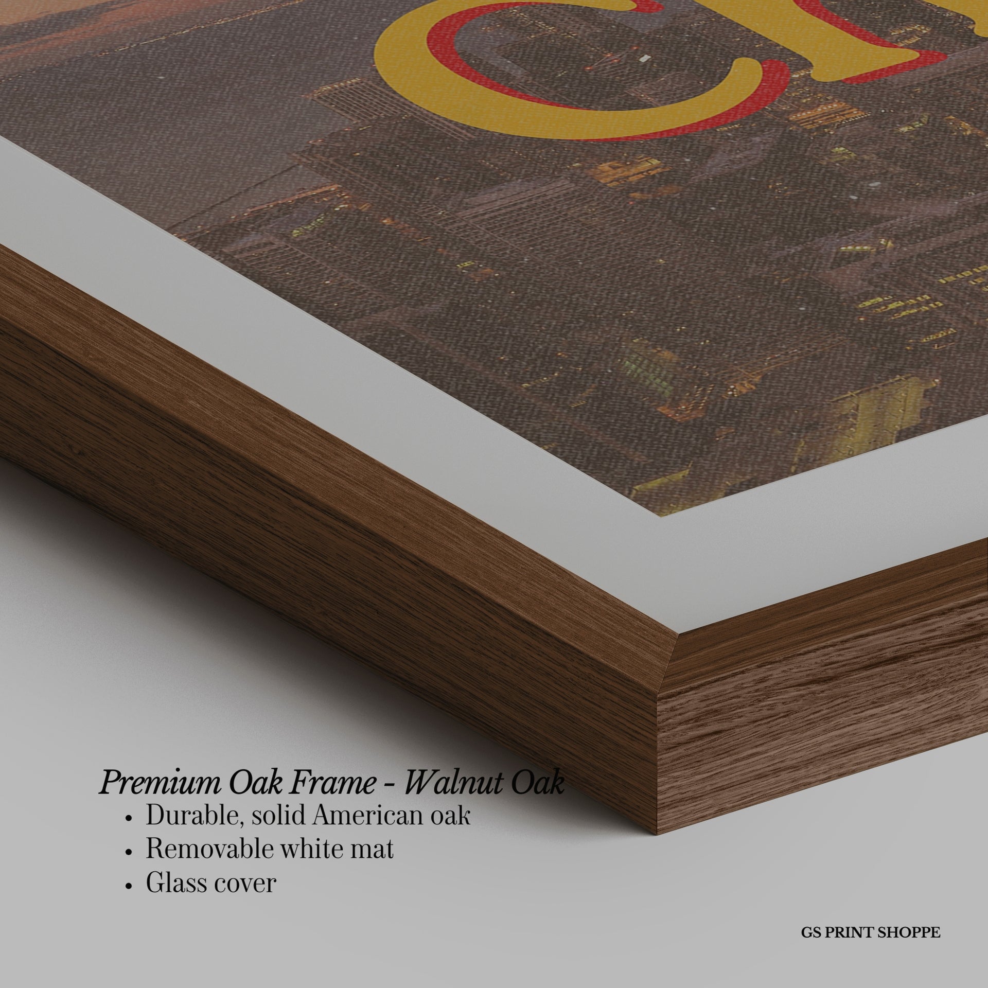 Oak Frame: Our solid oak frame blends durability with timeless appeal. Made from American oak, it features a smooth finish and plexiglass for long-lasting quality.