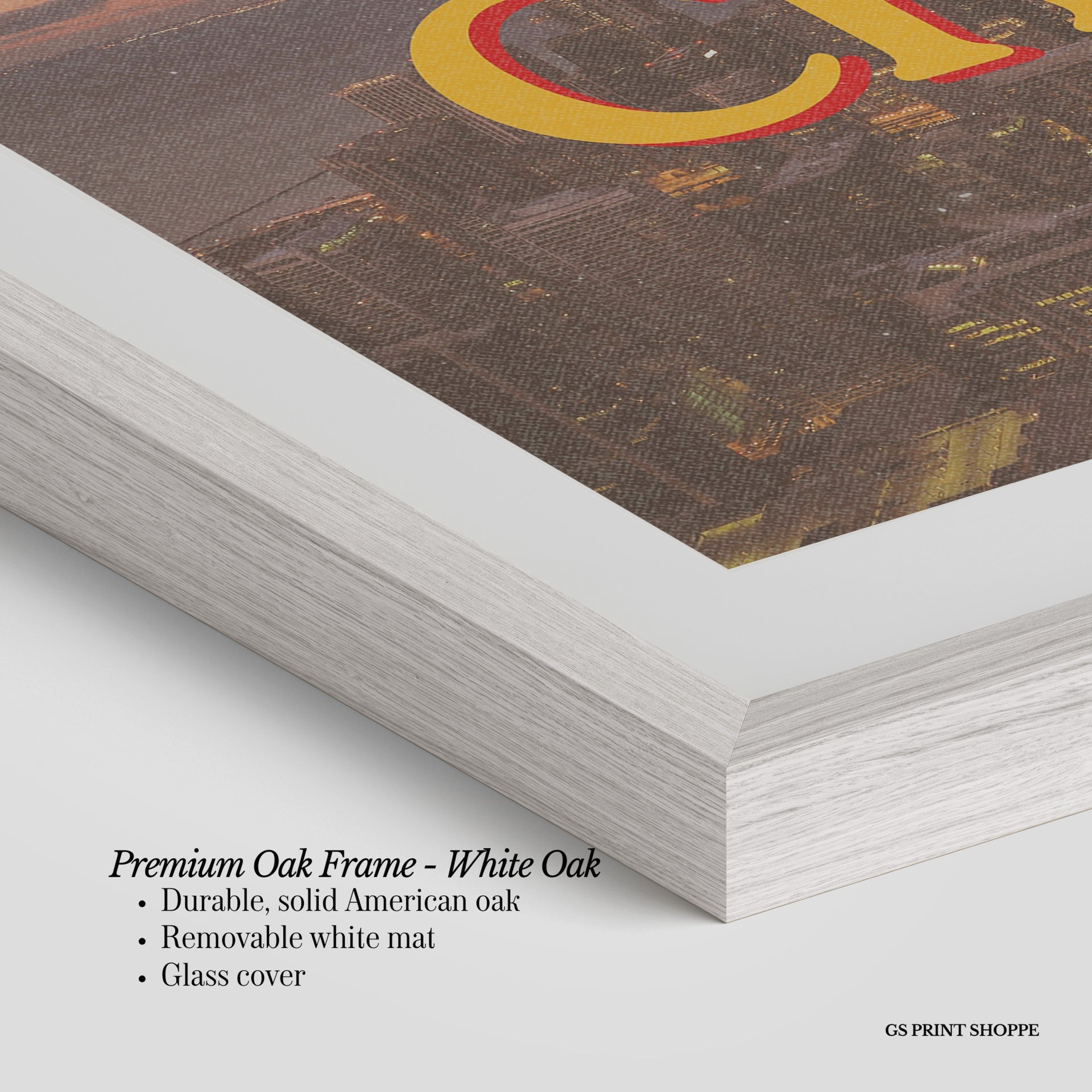 Premium Oak Frame: Our premium oak frame is crafted from solid American oak, offering a warm, natural feel with a high-end finish. We complete this elevated offering with a bright white removable mat and real glass for a versatile and polished look.
