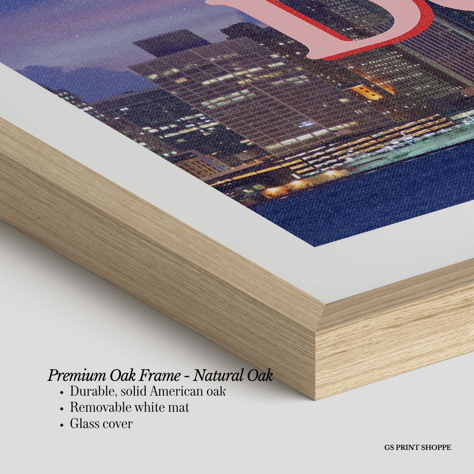 Premium Oak Frame: Our premium oak frame is crafted from solid American oak, offering a warm, natural feel with a high-end finish. We complete this elevated offering with a bright white removable mat and real glass for a versatile and polished look.