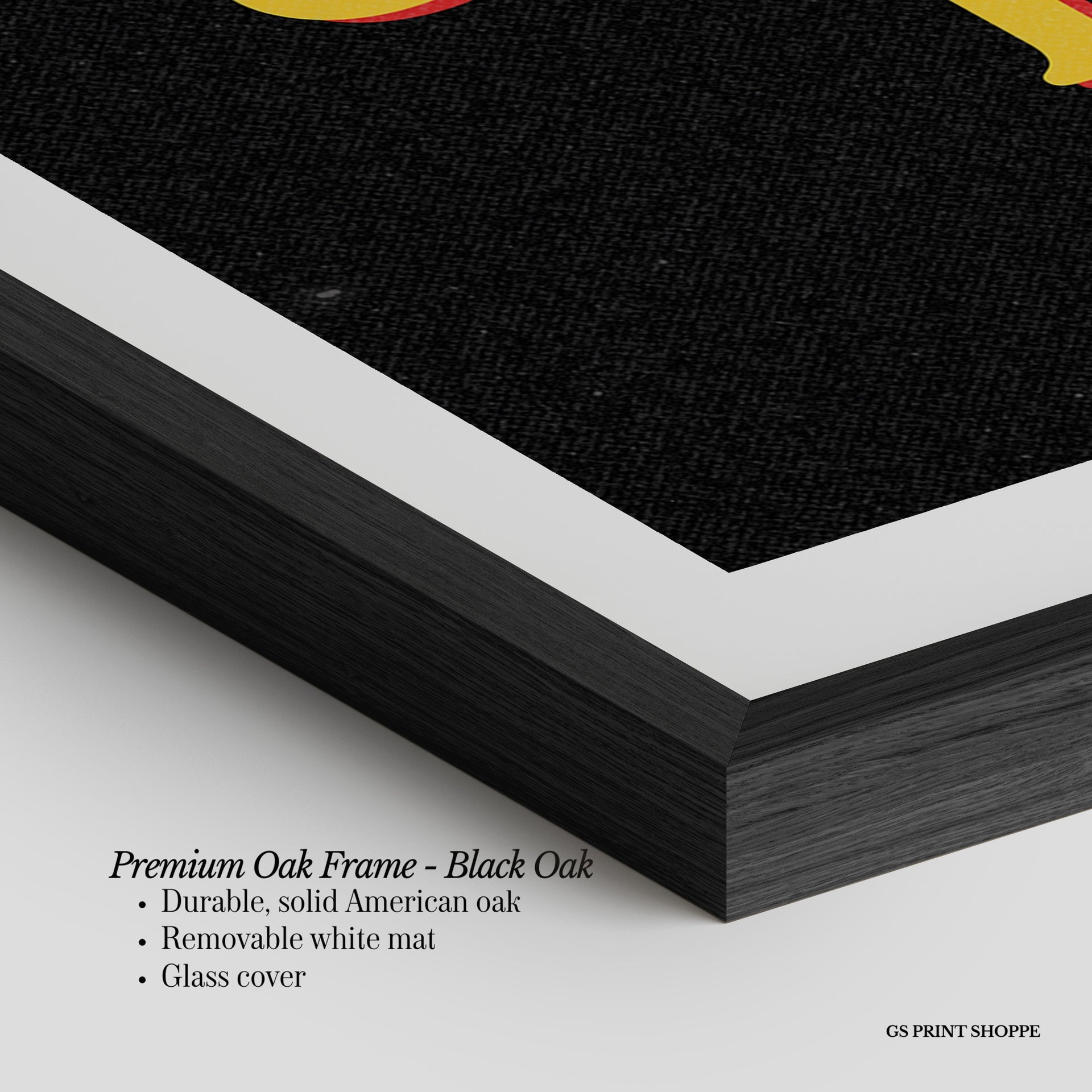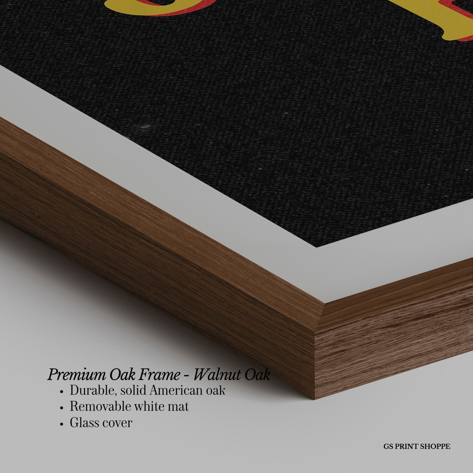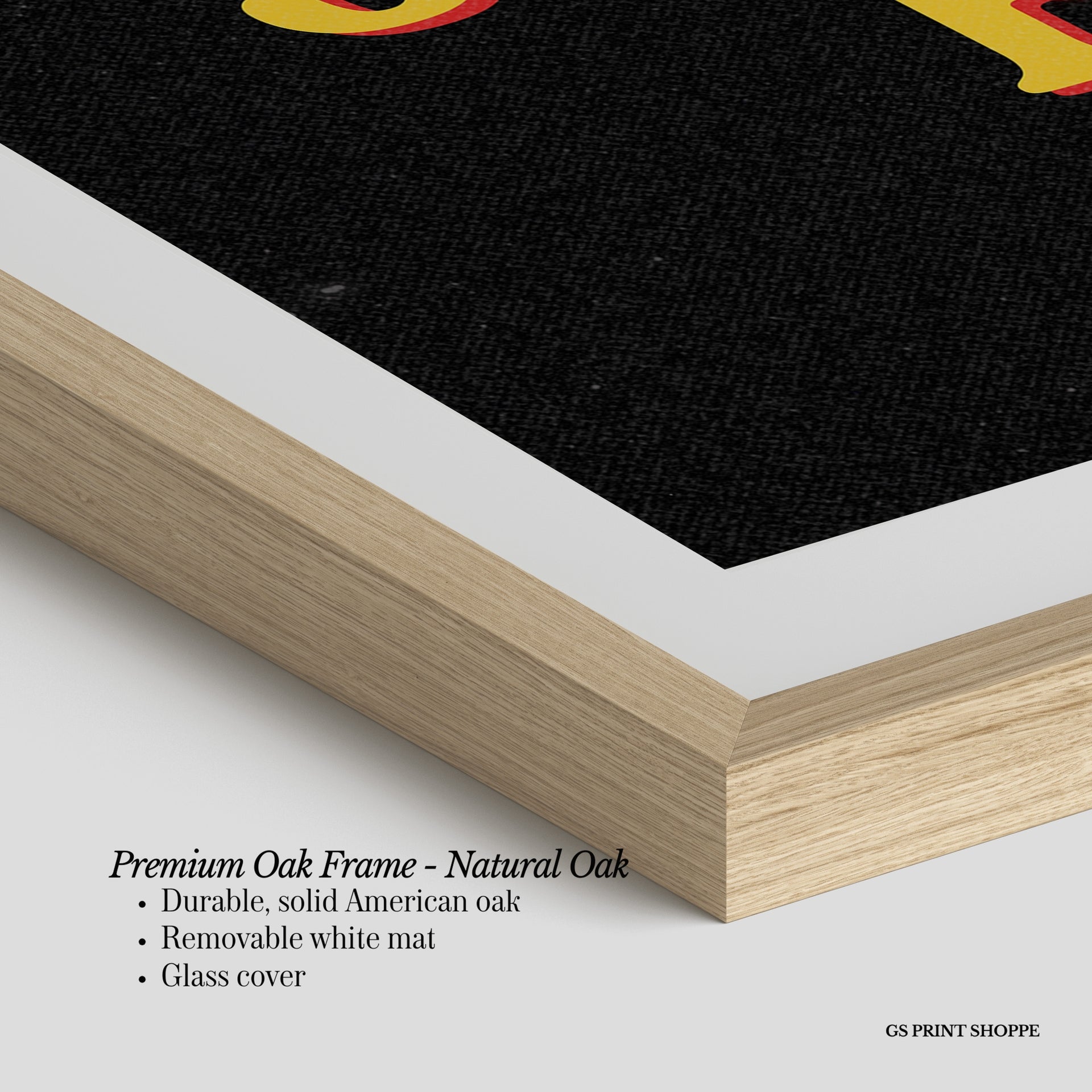Premium Oak Frame: Our premium oak frame is crafted from solid American oak, offering a warm, natural feel with a high-end finish. We complete this elevated offering with a bright white removable mat and real glass for a versatile and polished look.