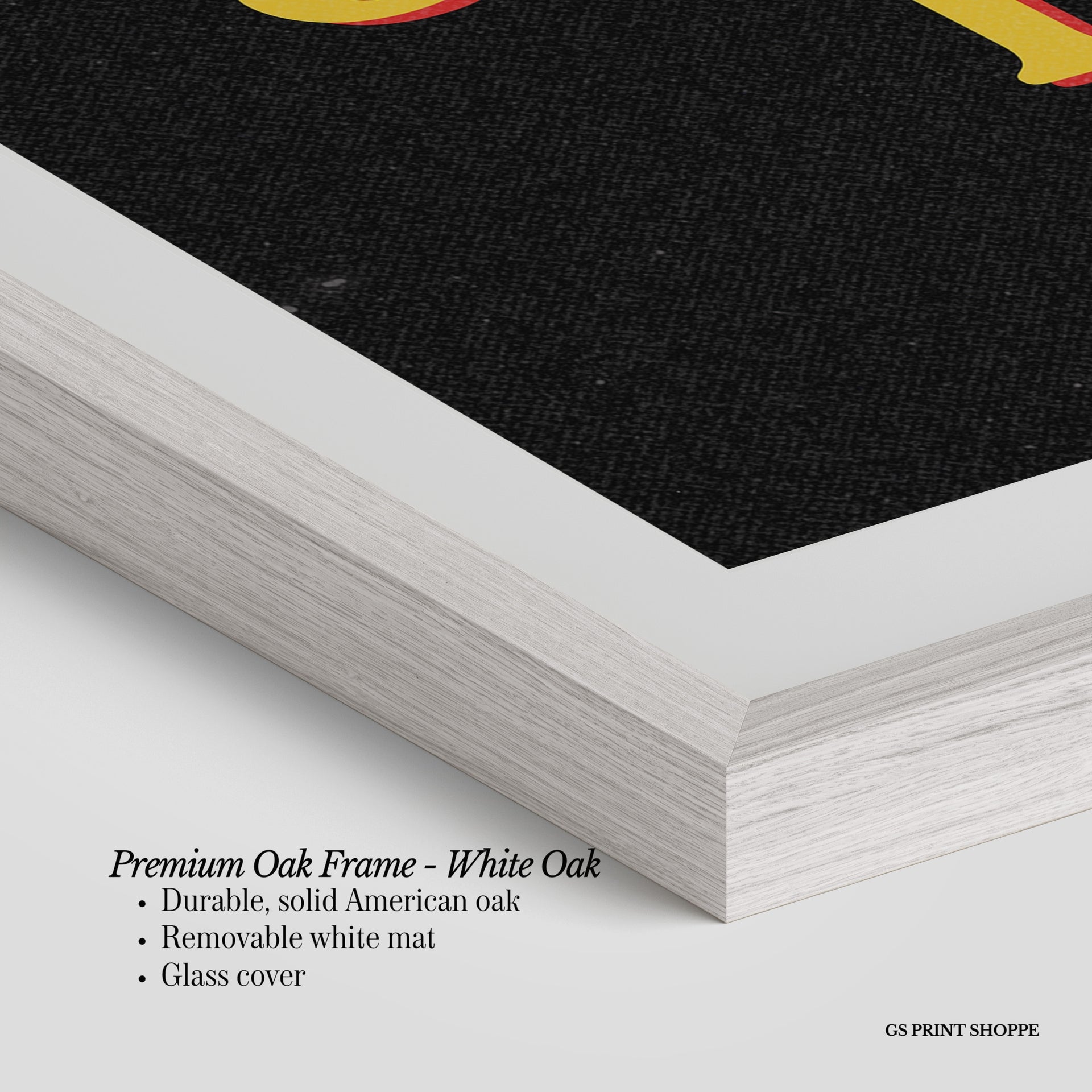 Oak Frame: Our solid oak frame blends durability with timeless appeal. Made from American oak, it features a smooth finish and plexiglass for long-lasting quality.