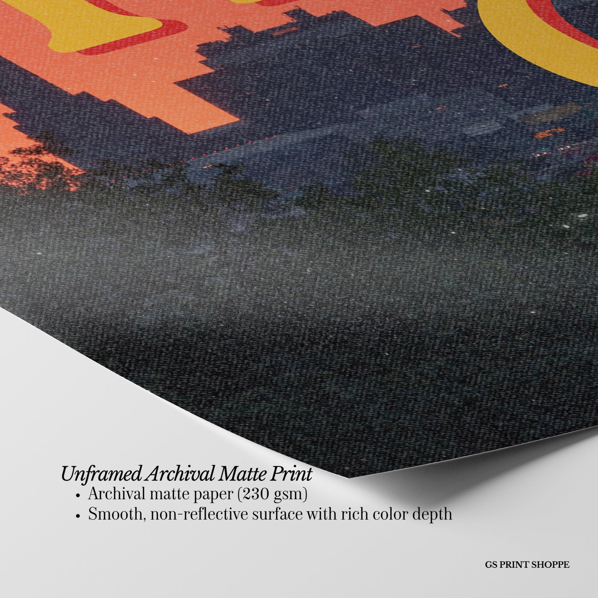 Unframed: This print is professionally printed on archival matte paper (230 gsm), a smooth, acid-free paper with a non-reflective finish. It will be carefully packaged to arrive safely at your door.