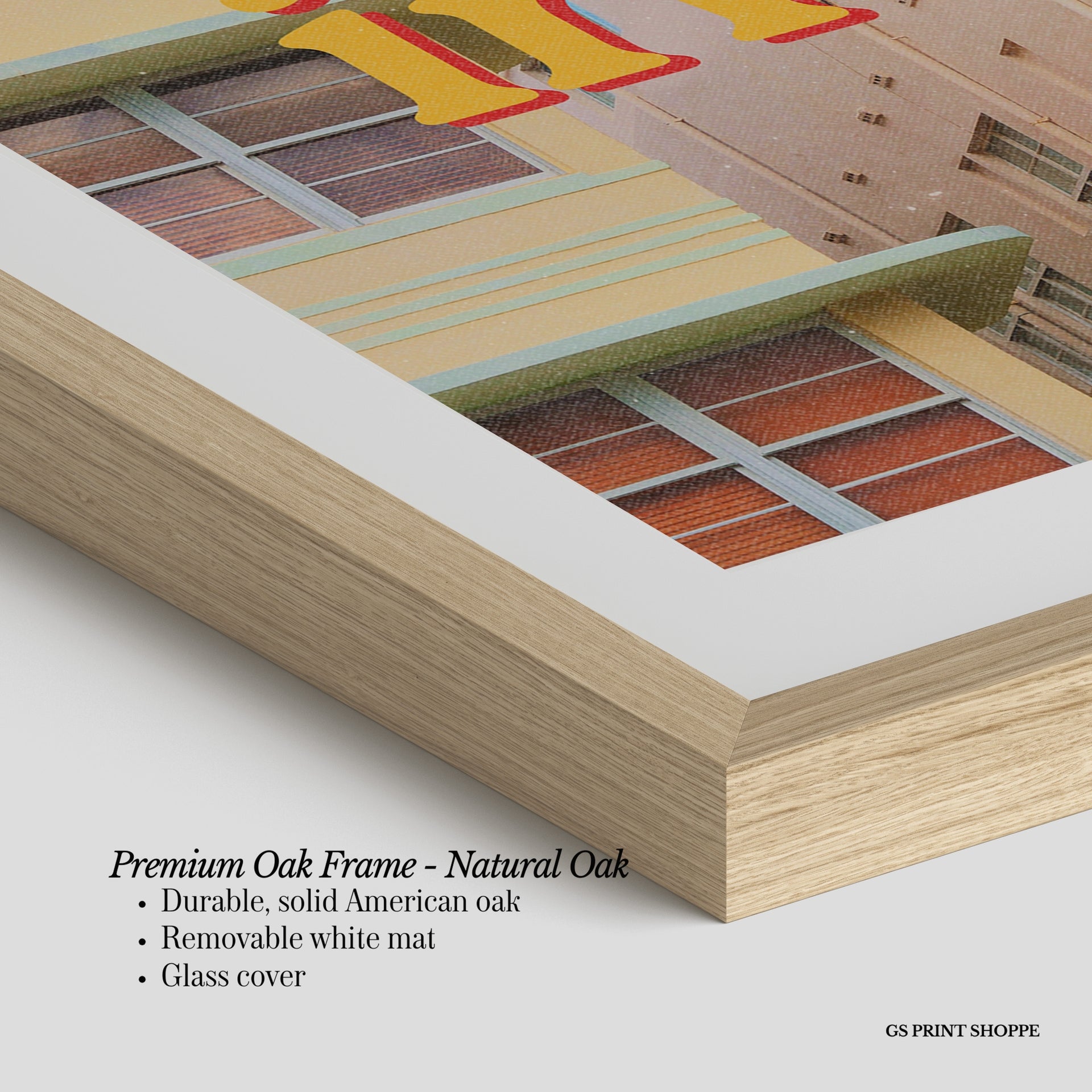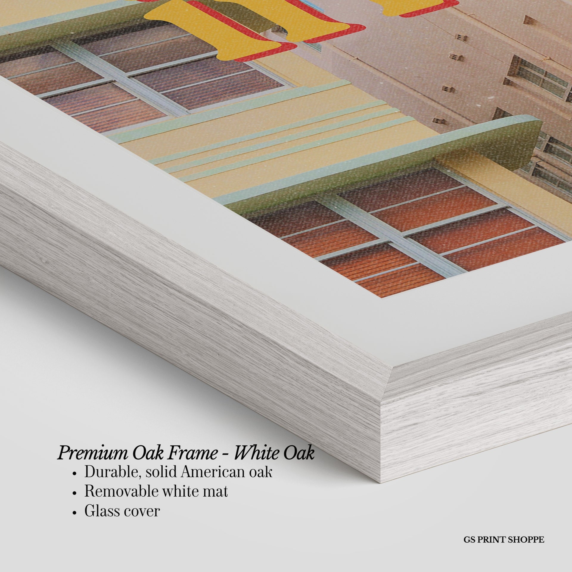 Premium Oak Frame: Our premium oak frame is crafted from solid American oak, offering a warm, natural feel with a high-end finish. We complete this elevated offering with a bright white removable mat and real glass for a versatile and polished look.