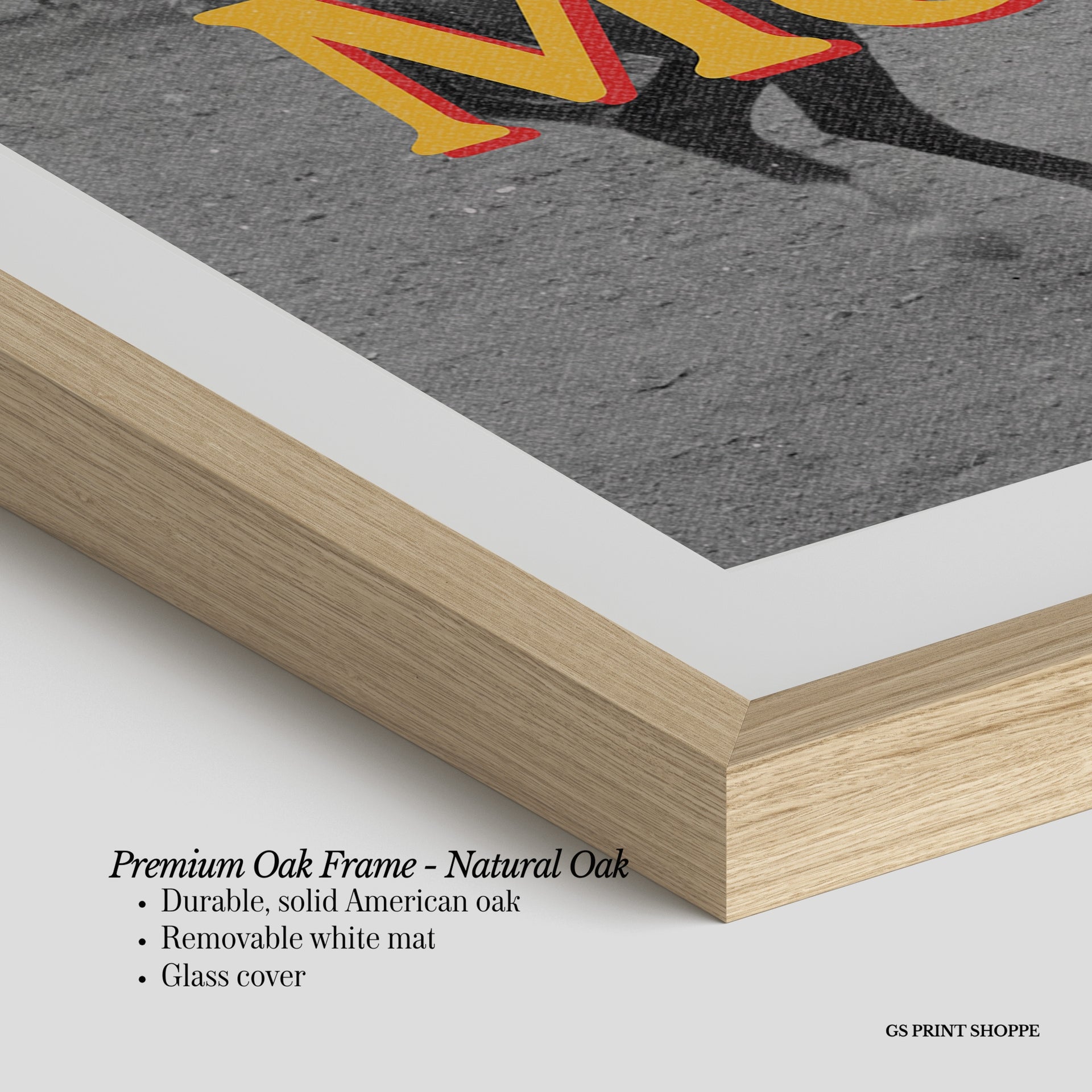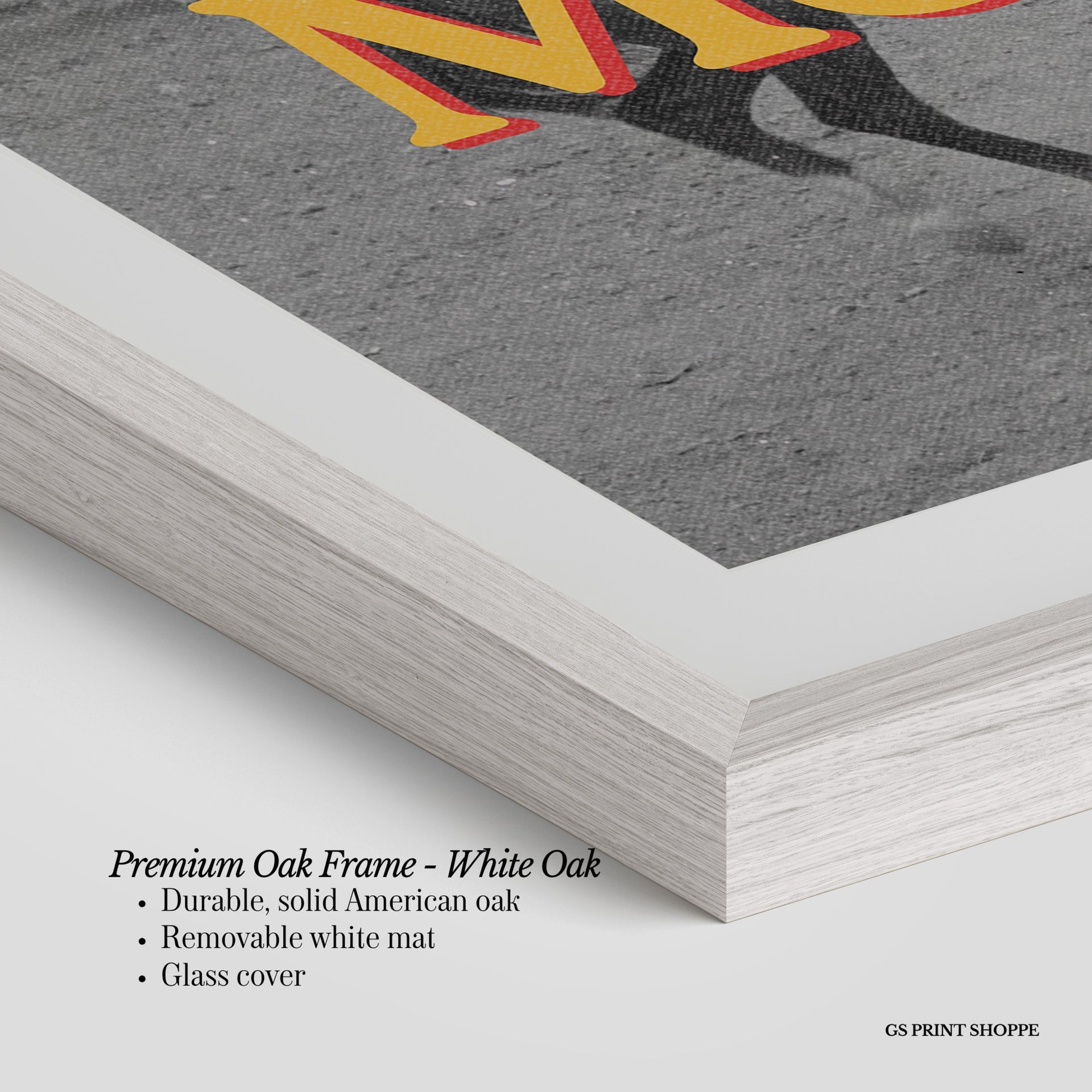 Premium Oak Frame: Our premium oak frame is crafted from solid American oak, offering a warm, natural feel with a high-end finish. We complete this elevated offering with a bright white removable mat and real glass for a versatile and polished look.