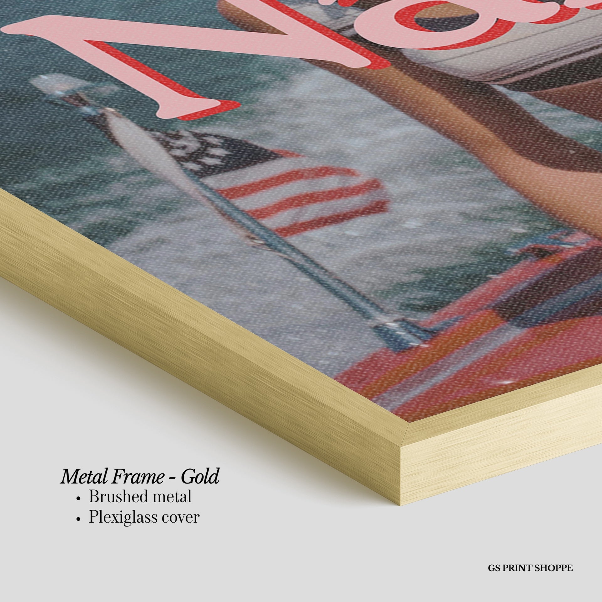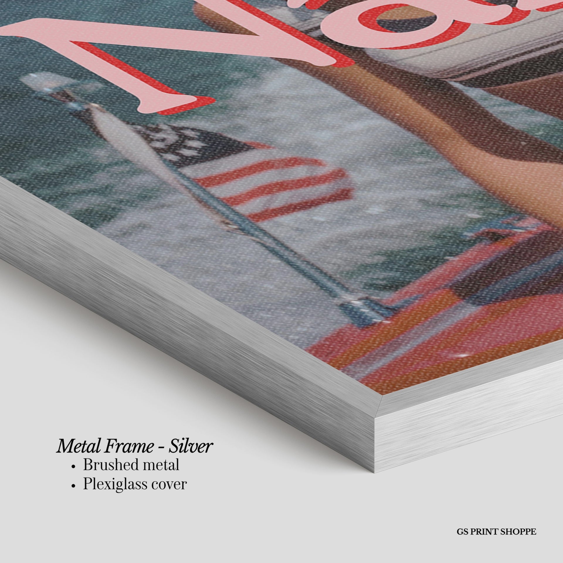 Metal Frame: Sleek and modern, our metal frame is crafted with brushed metal for a polished finish. It comes with durable plexiglass and sturdy metal hangers for horizontal or vertical display.