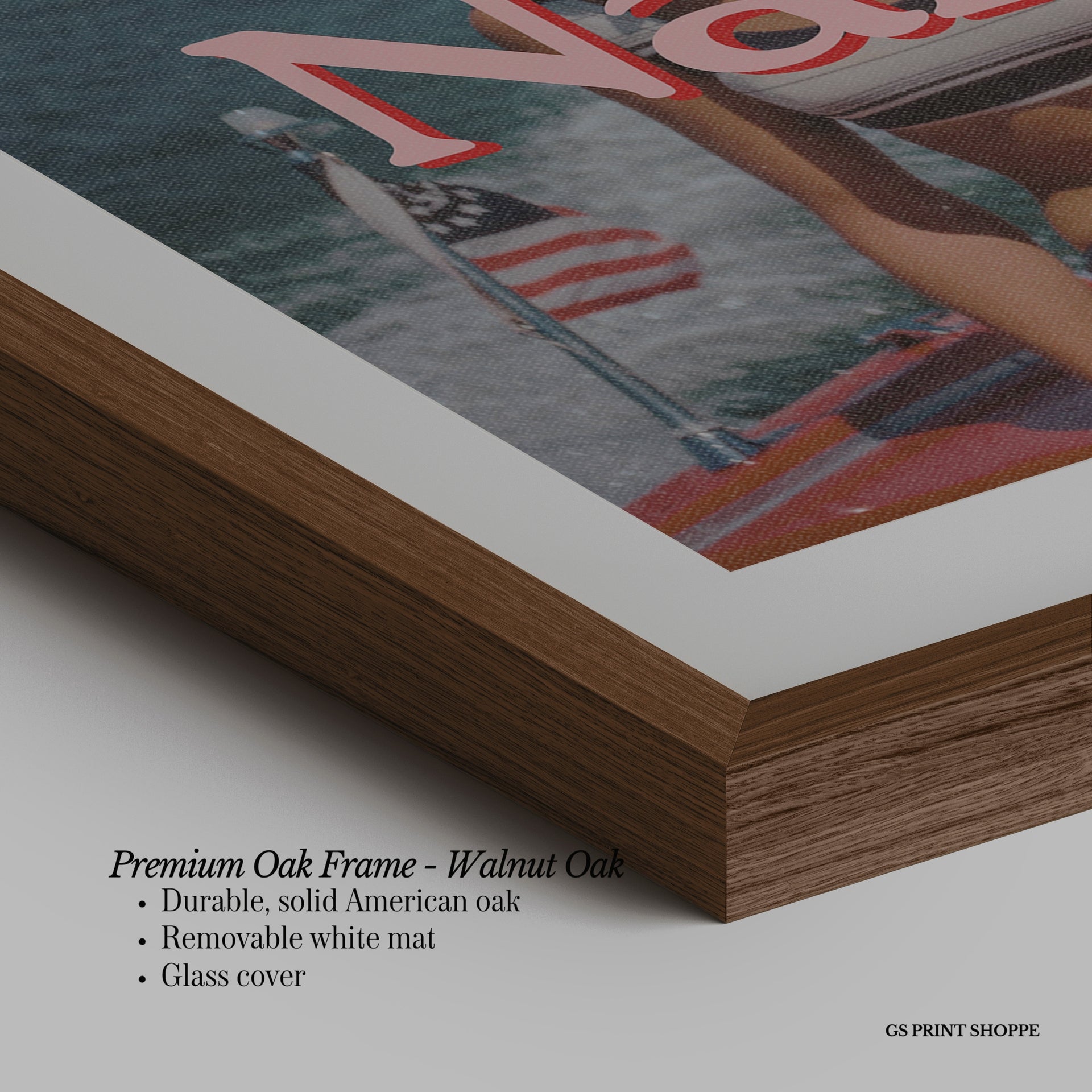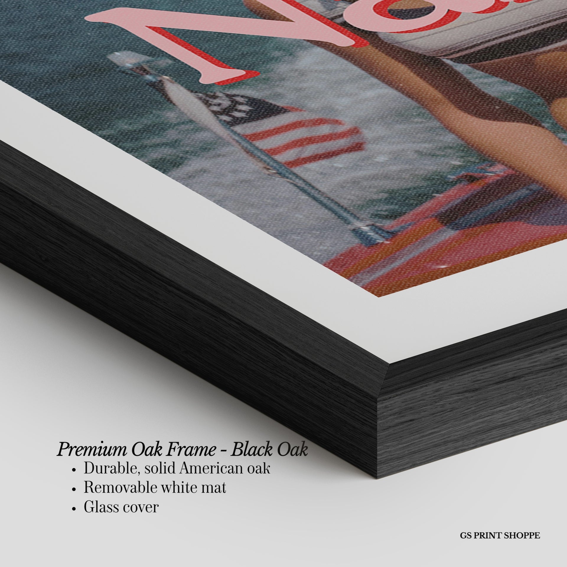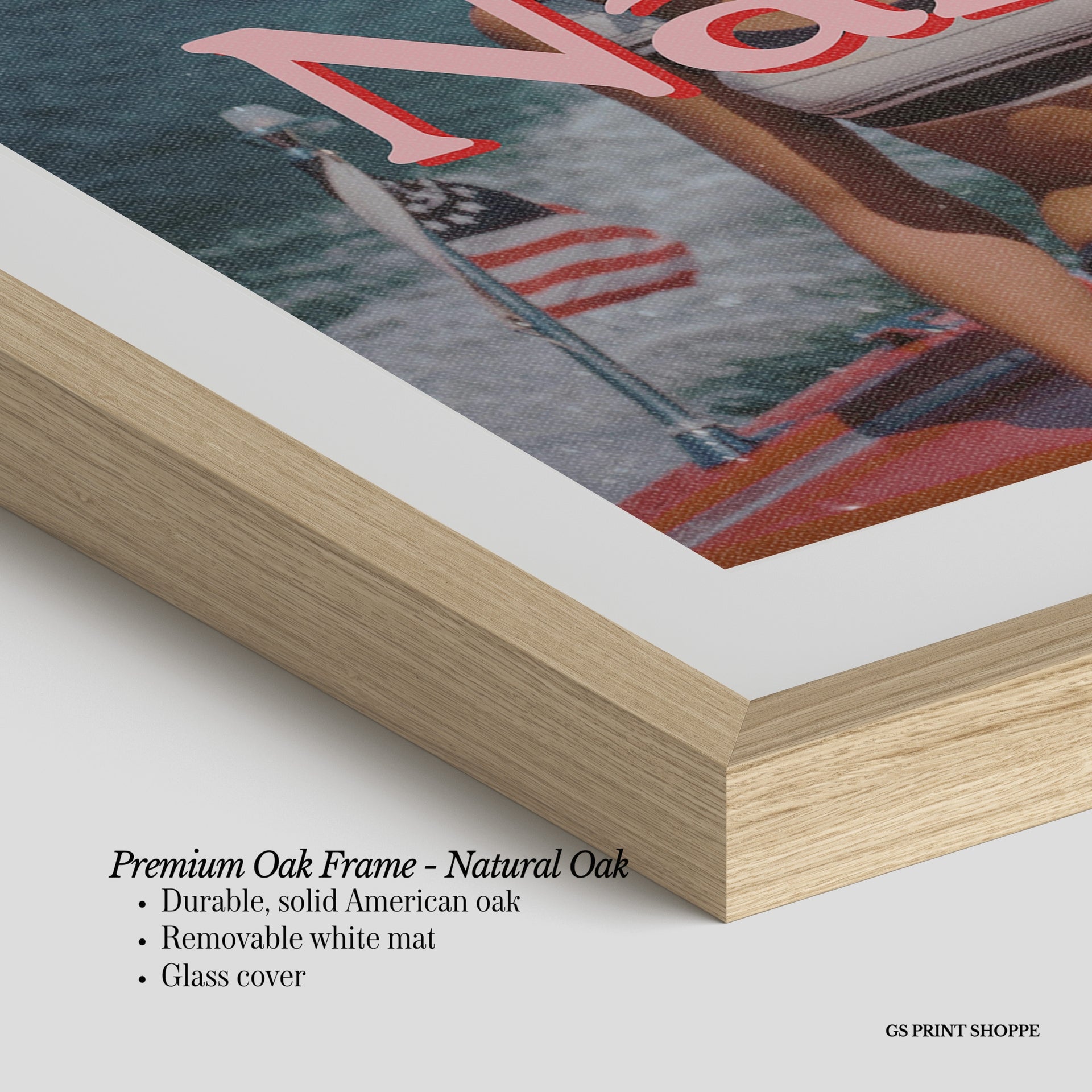 Premium Oak Frame: Our premium oak frame is crafted from solid American oak, offering a warm, natural feel with a high-end finish. We complete this elevated offering with a bright white removable mat and real glass for a versatile and polished look.
