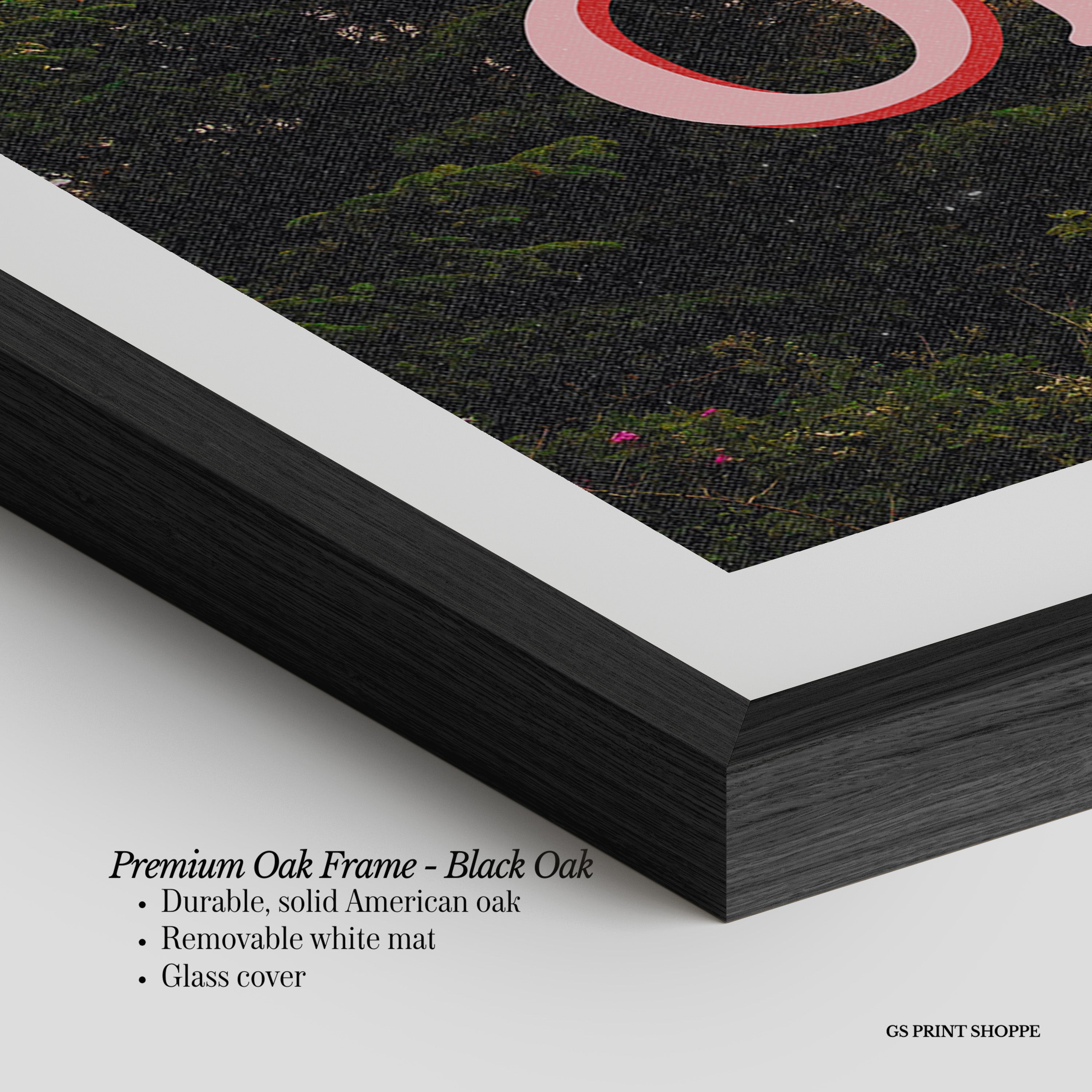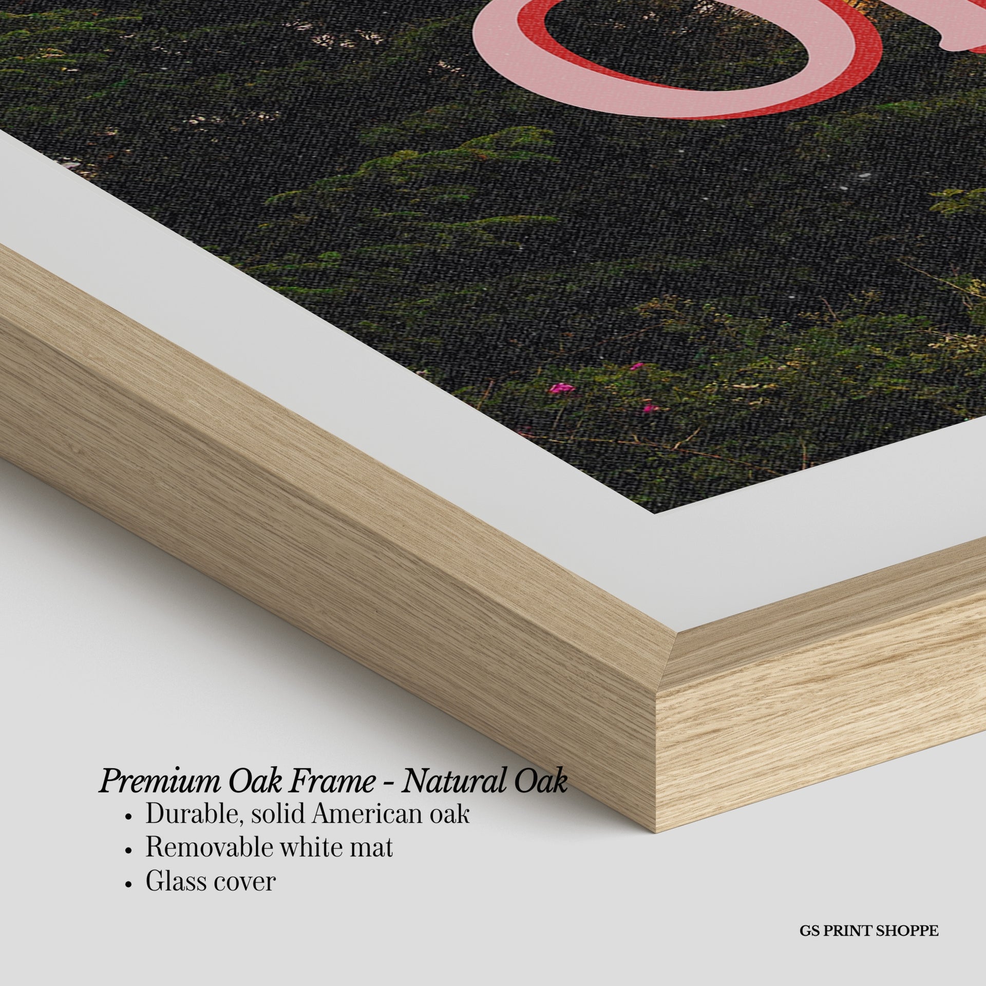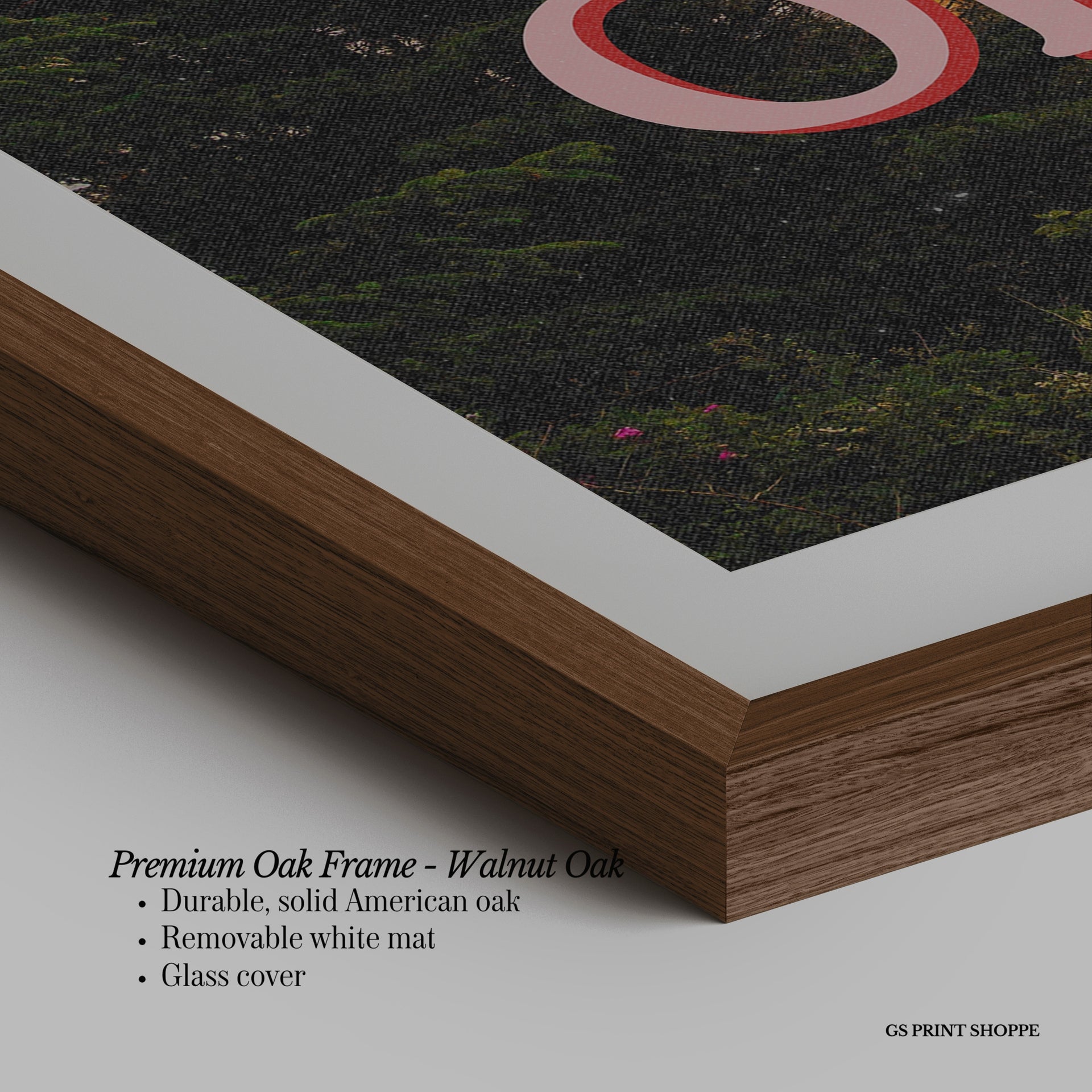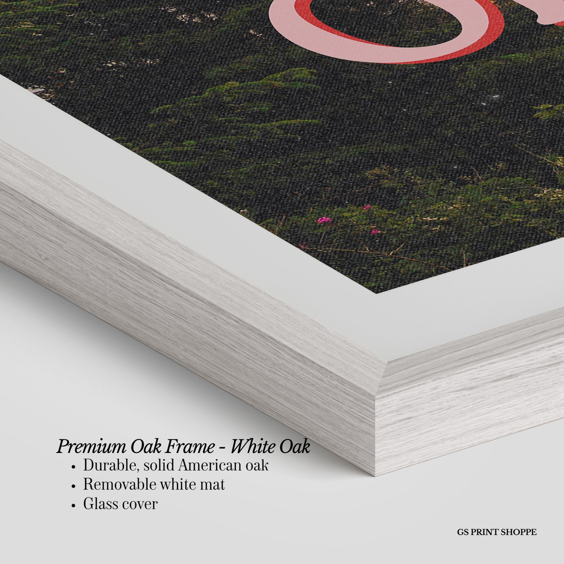 Premium Oak Frame: Our premium oak frame is crafted from solid American oak, offering a warm, natural feel with a high-end finish. We complete this elevated offering with a bright white removable mat and real glass for a versatile and polished look.