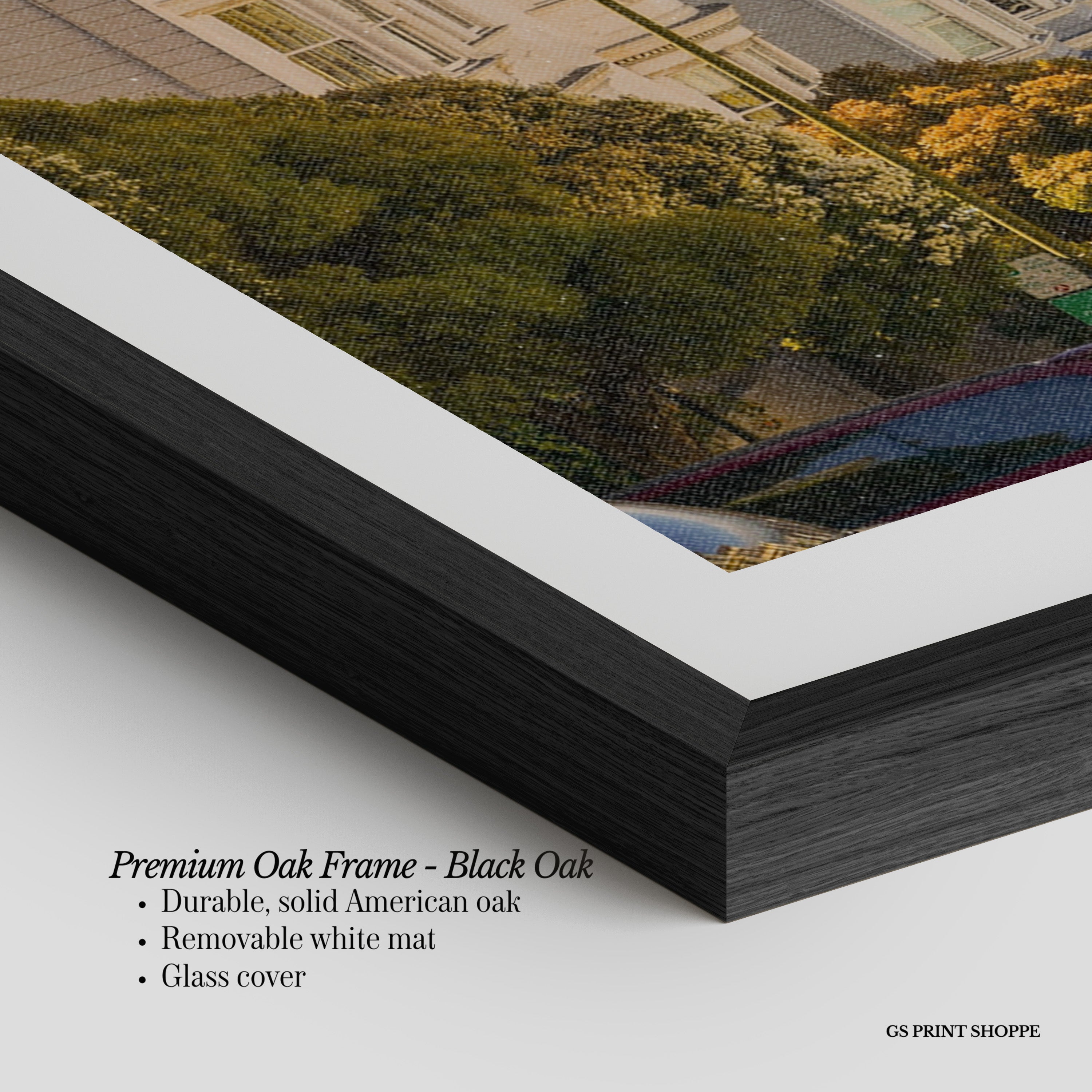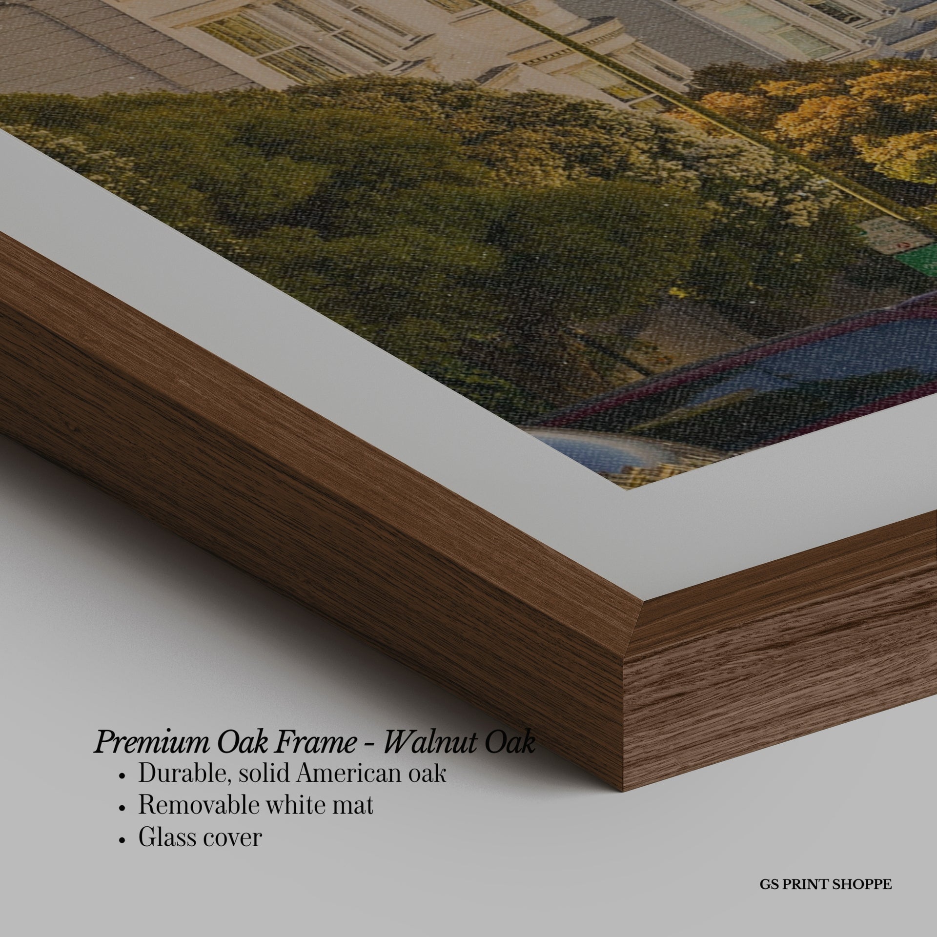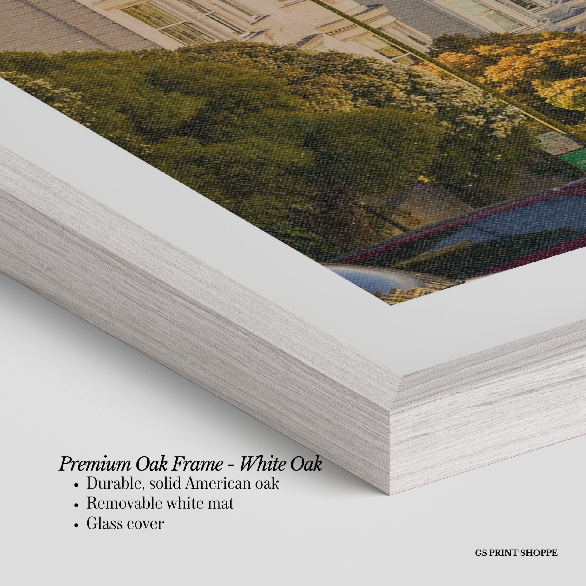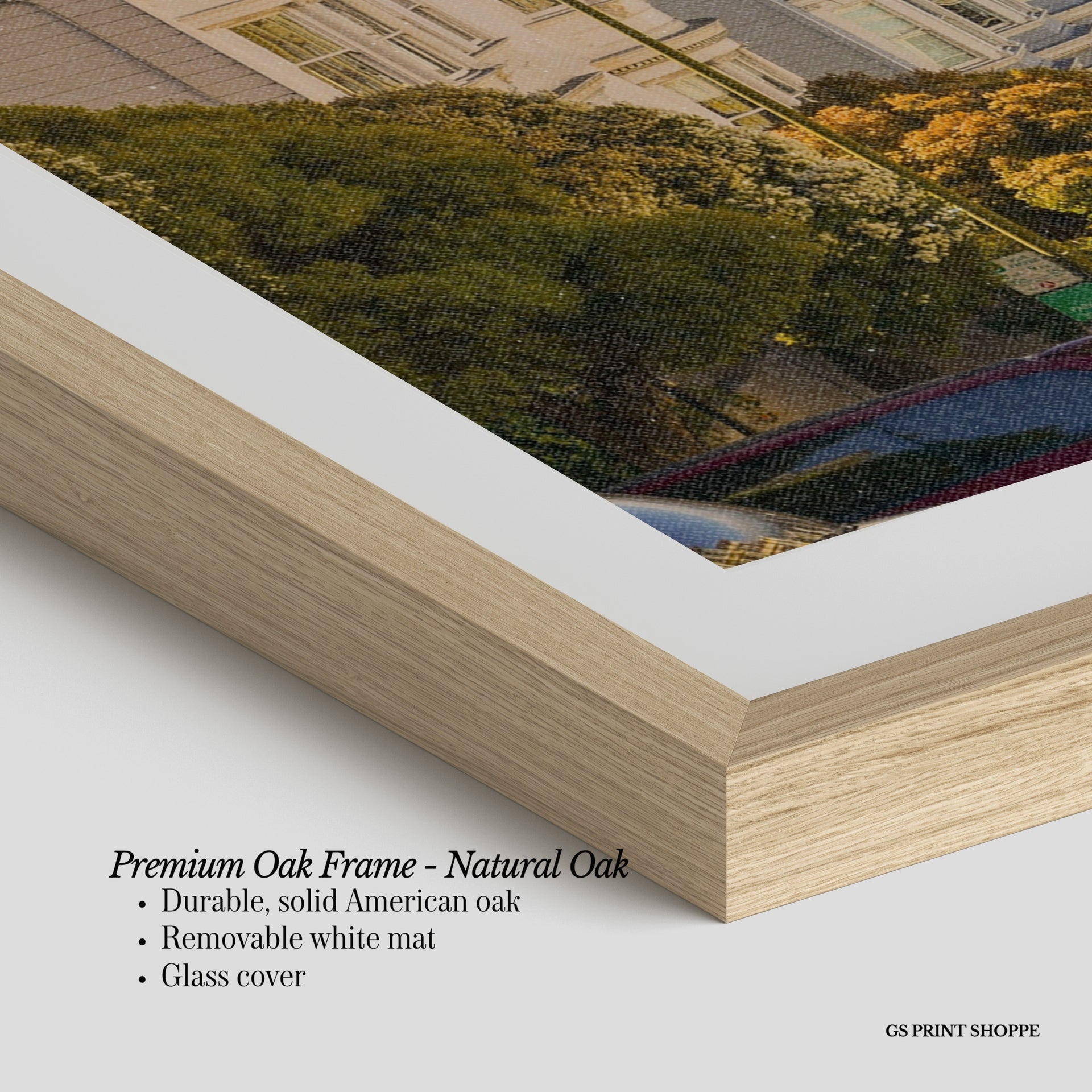 Premium Oak Frame: Our premium oak frame is crafted from solid American oak, offering a warm, natural feel with a high-end finish. We complete this elevated offering with a bright white removable mat and real glass for a versatile and polished look.