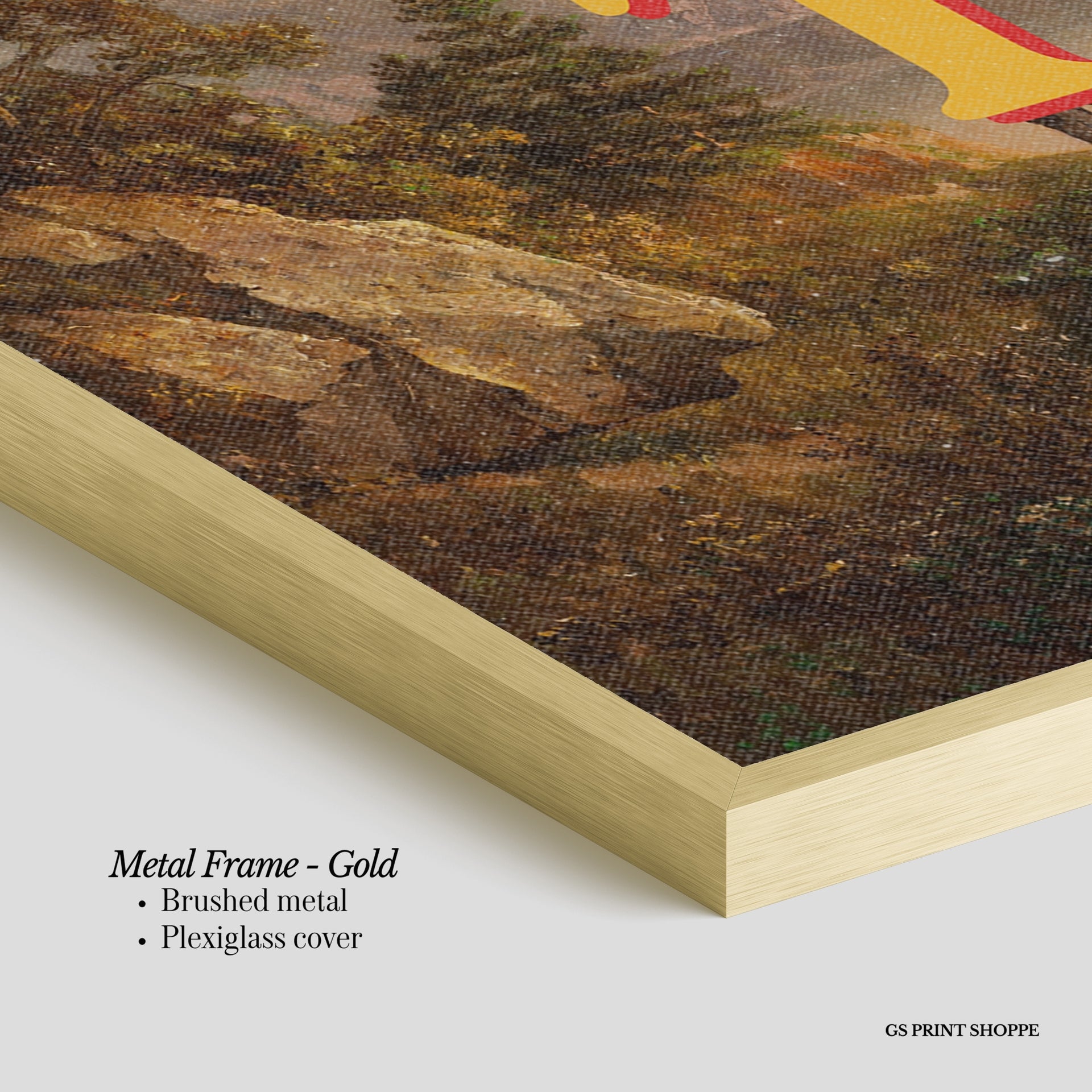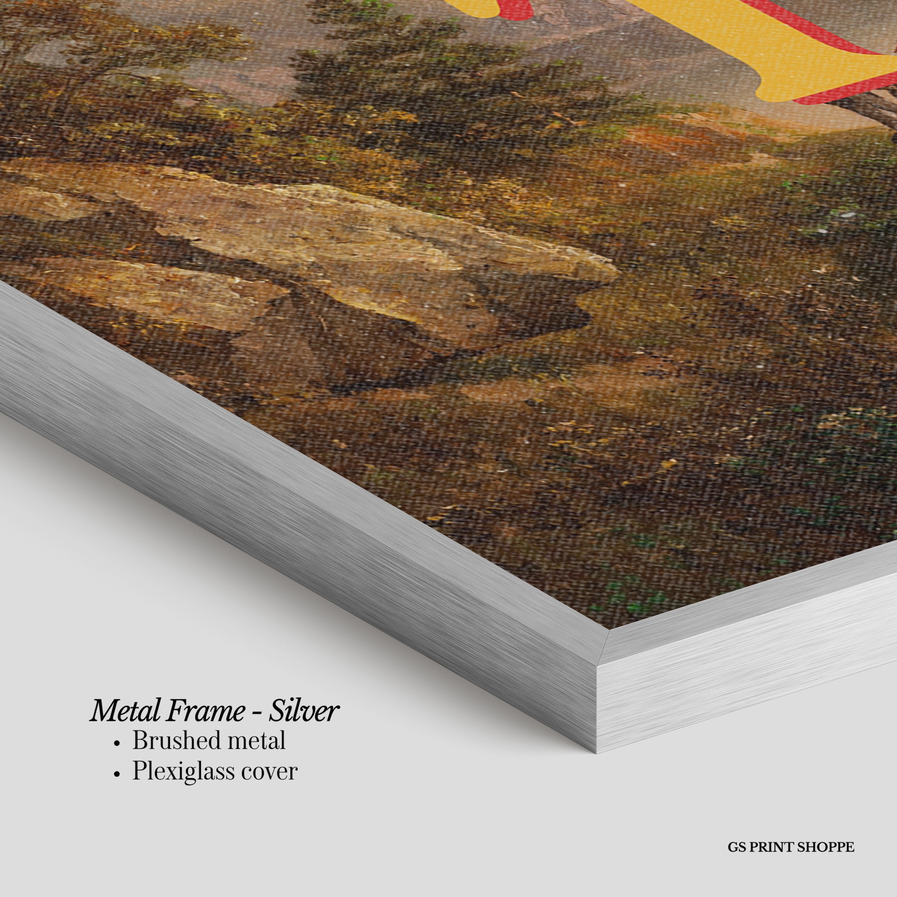 Metal Frame: Sleek and modern, our metal frame is crafted with brushed metal for a polished finish. It comes with durable plexiglass and sturdy metal hangers for horizontal or vertical display.