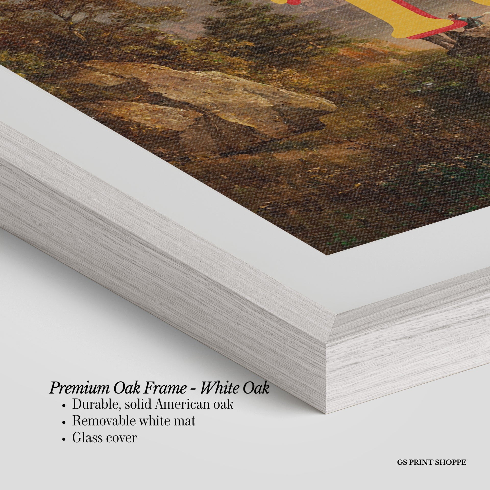 Premium Oak Frame: Our premium oak frame is crafted from solid American oak, offering a warm, natural feel with a high-end finish. We complete this elevated offering with a bright white removable mat and real glass for a versatile and polished look.