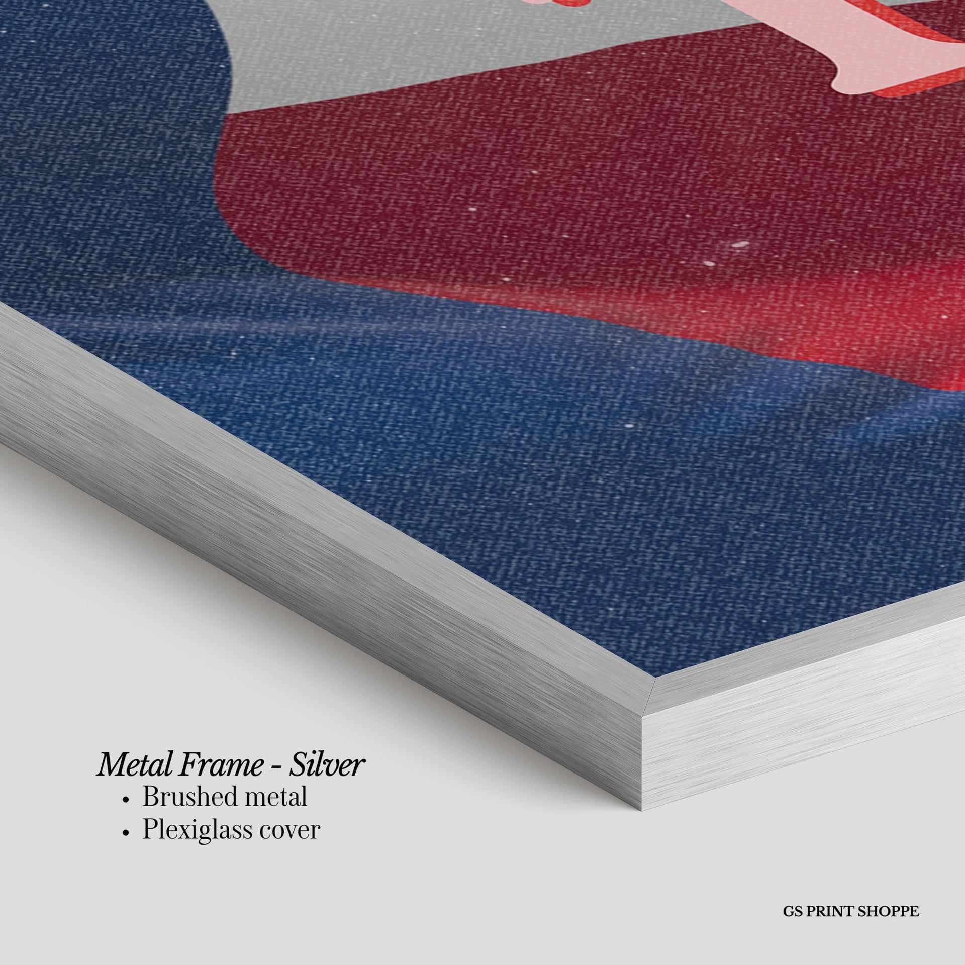 Metal Frame: Sleek and modern, our metal frame is crafted with brushed metal for a polished finish. It comes with durable plexiglass and sturdy metal hangers for horizontal or vertical display.