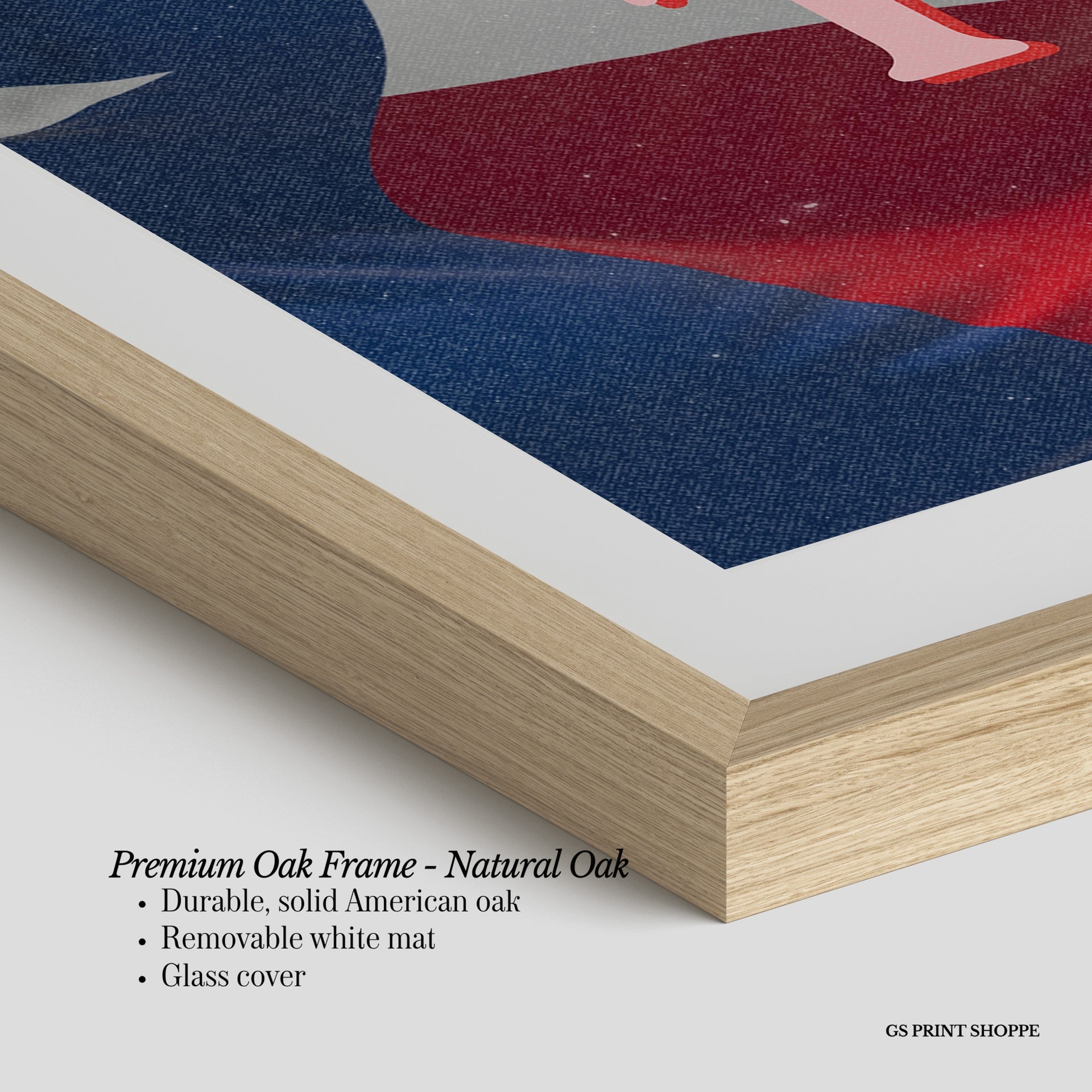 Oak Frame: Our solid oak frame blends durability with timeless appeal. Made from American oak, it features a smooth finish and plexiglass for long-lasting quality.