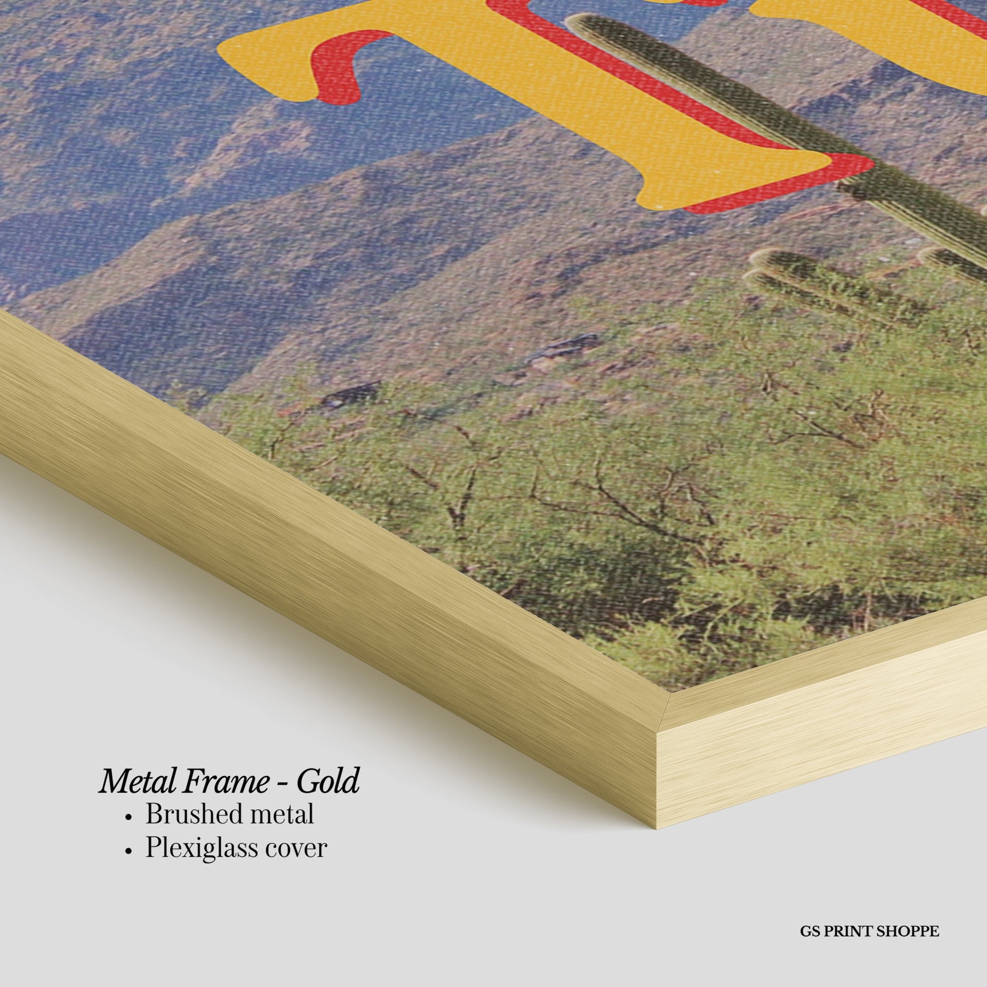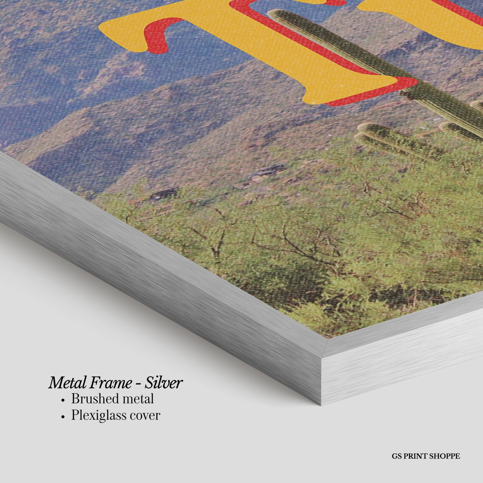 Metal Frame: Sleek and modern, our metal frame is crafted with brushed metal for a polished finish. It comes with durable plexiglass and sturdy metal hangers for horizontal or vertical display.