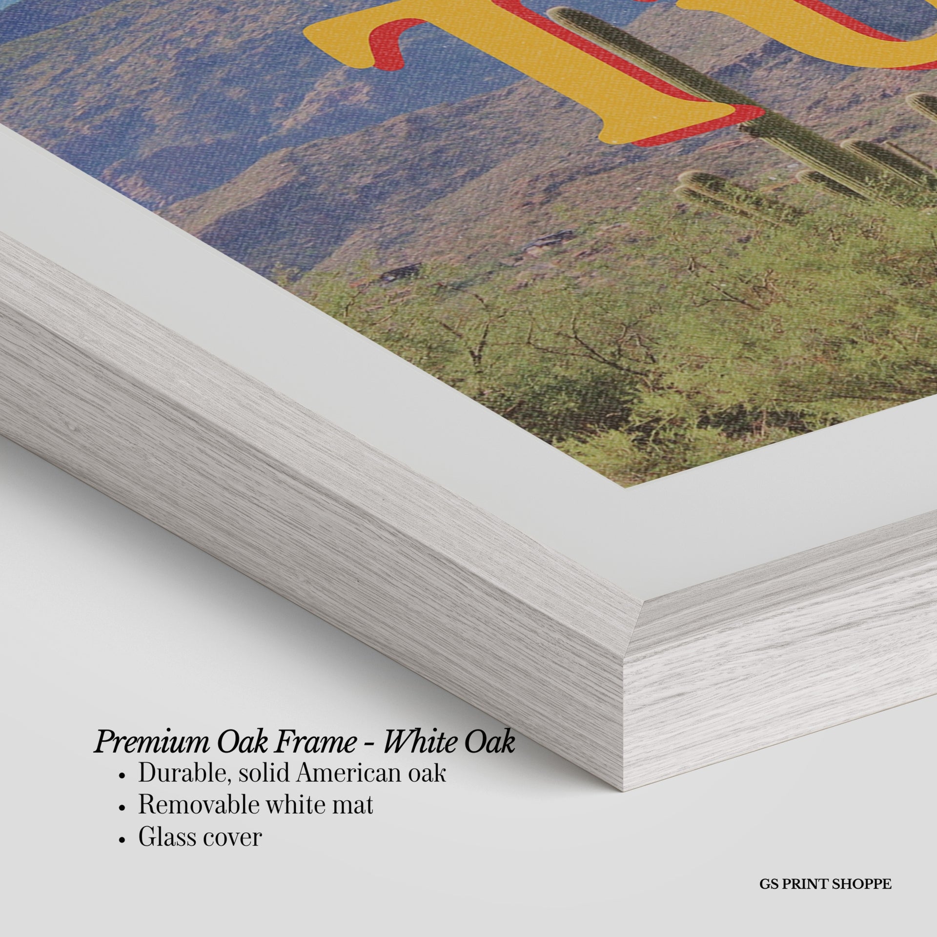Premium Oak Frame: Our premium oak frame is crafted from solid American oak, offering a warm, natural feel with a high-end finish. We complete this elevated offering with a bright white removable mat and real glass for a versatile and polished look.