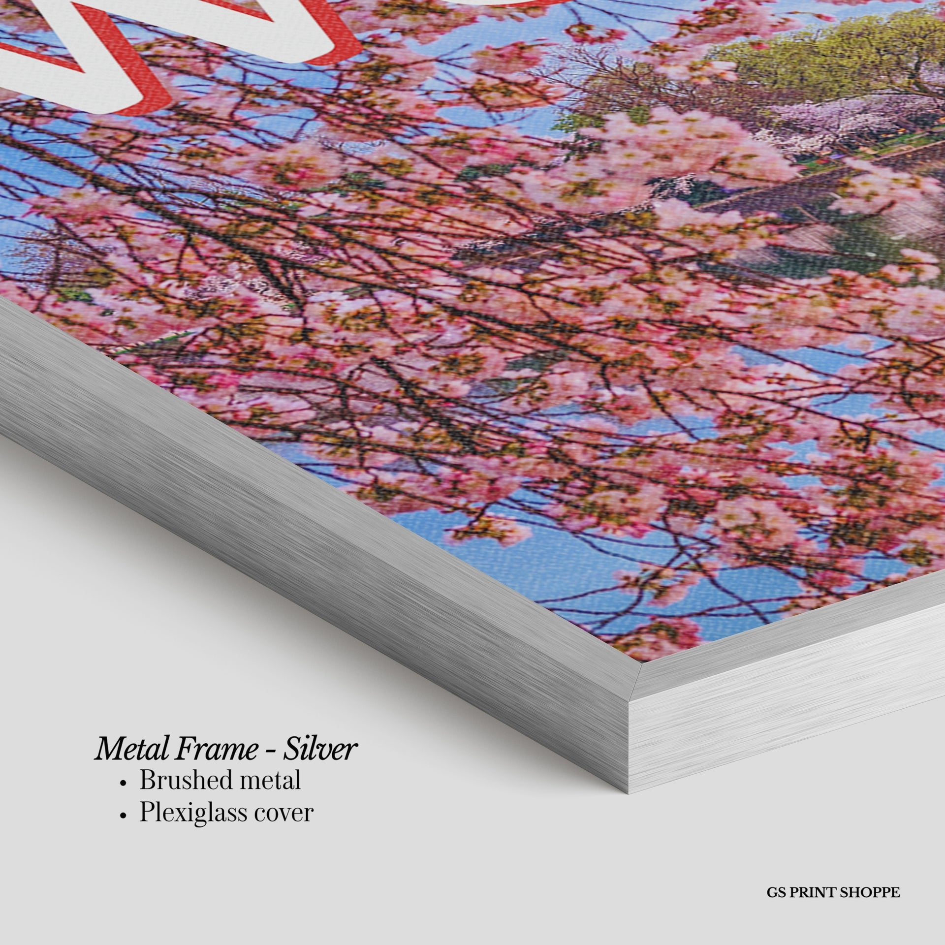 Metal Frame: Sleek and modern, our metal frame is crafted with brushed metal for a polished finish. It comes with durable plexiglass and sturdy metal hangers for horizontal or vertical display.