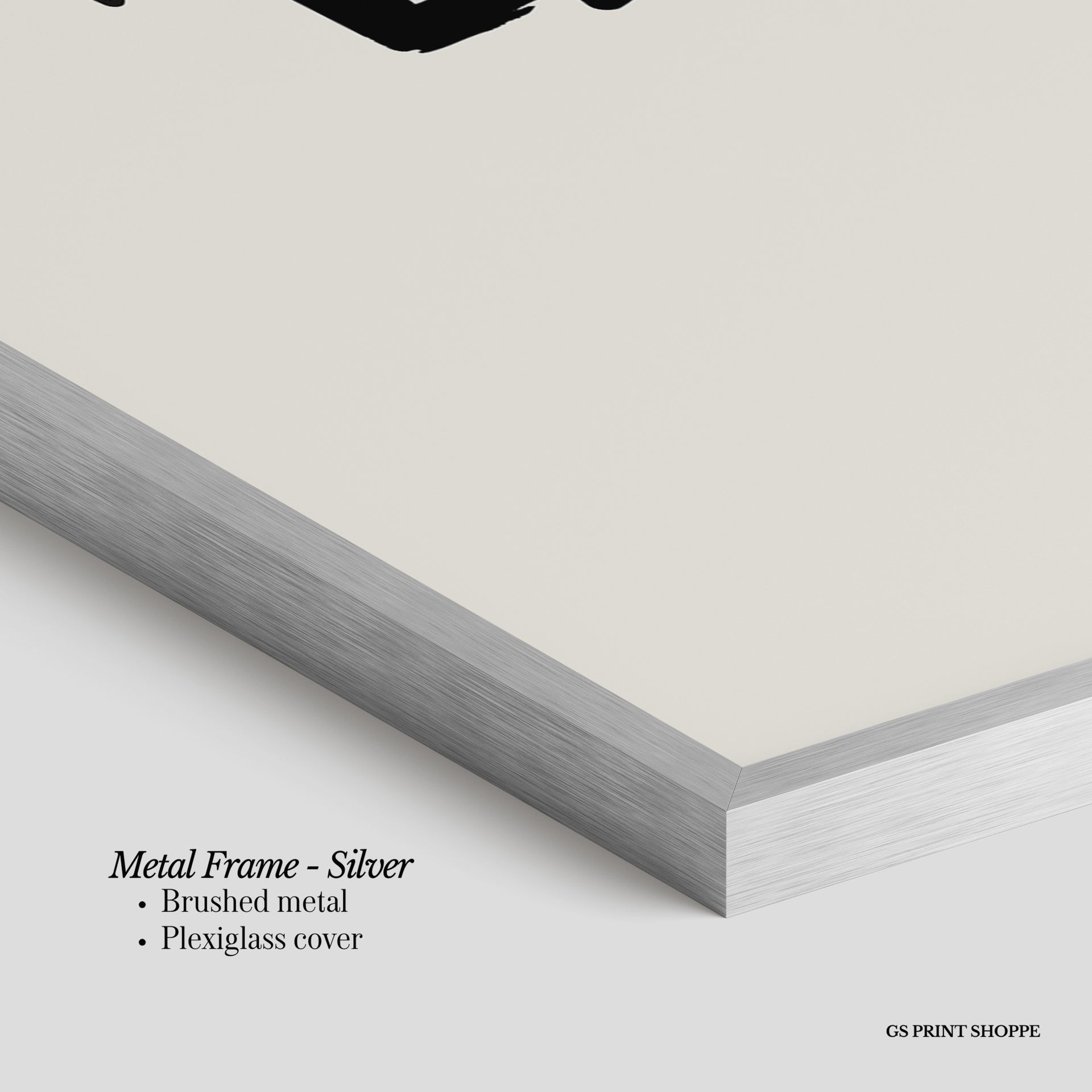 Metal Frame: Sleek and modern, our metal frame is crafted with brushed metal for a polished finish. It comes with durable plexiglass and sturdy metal hangers for horizontal or vertical display.