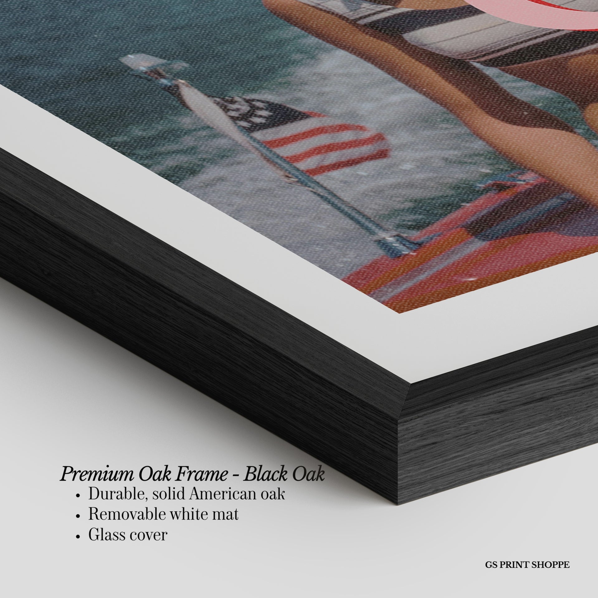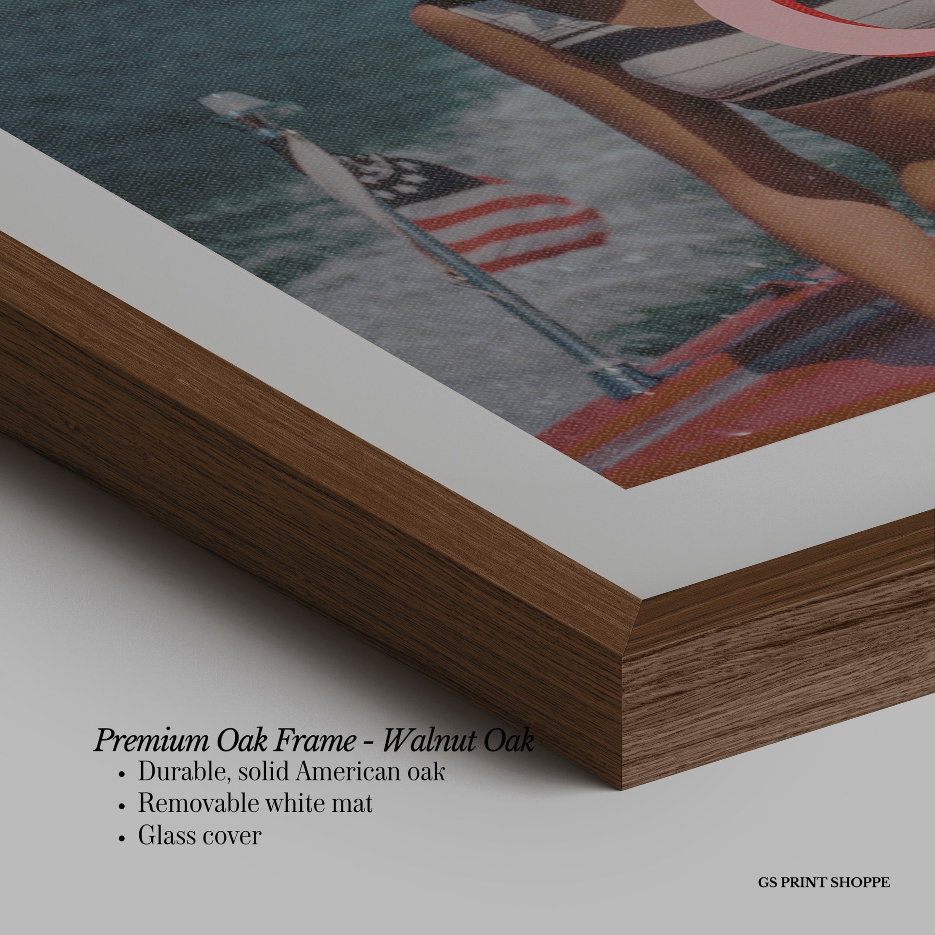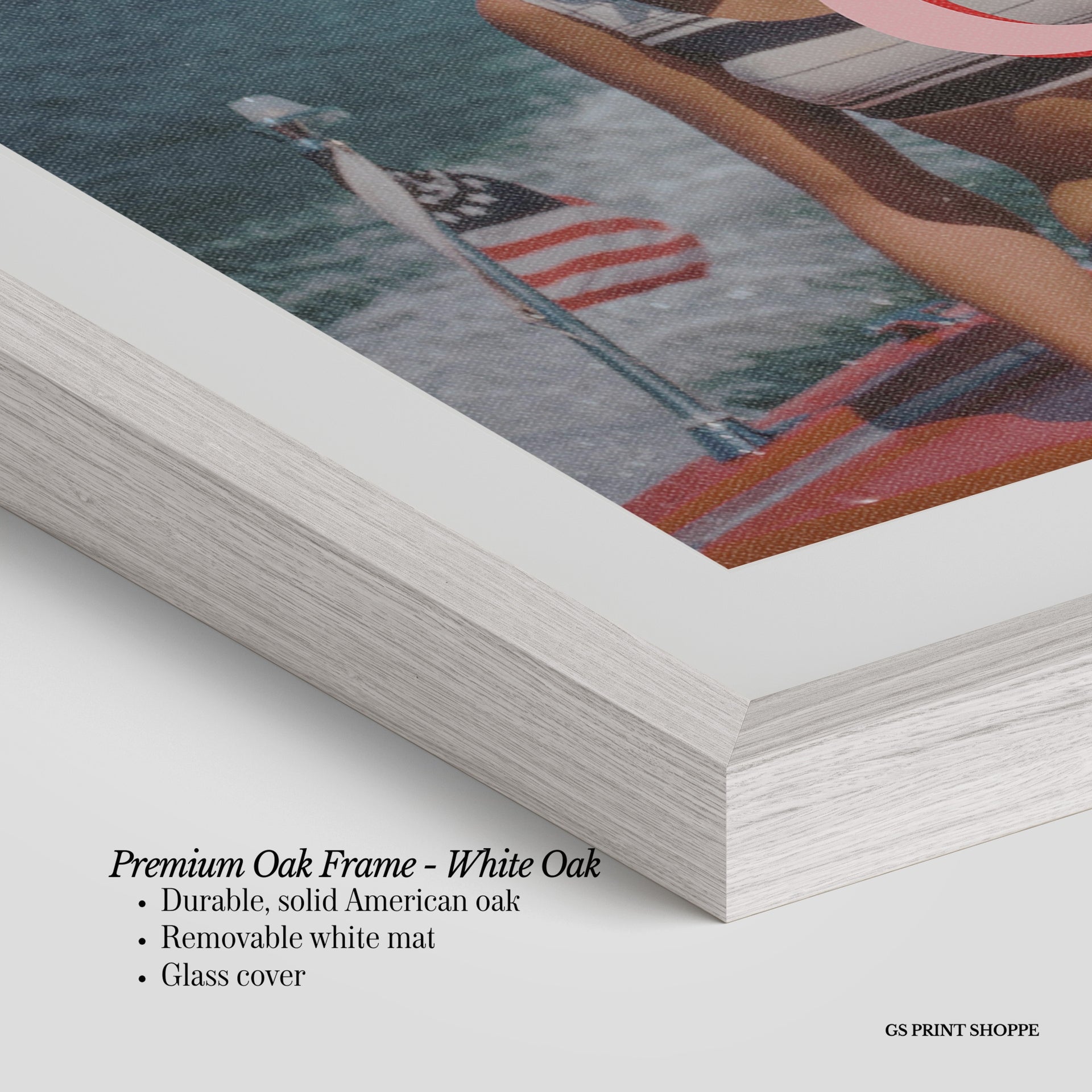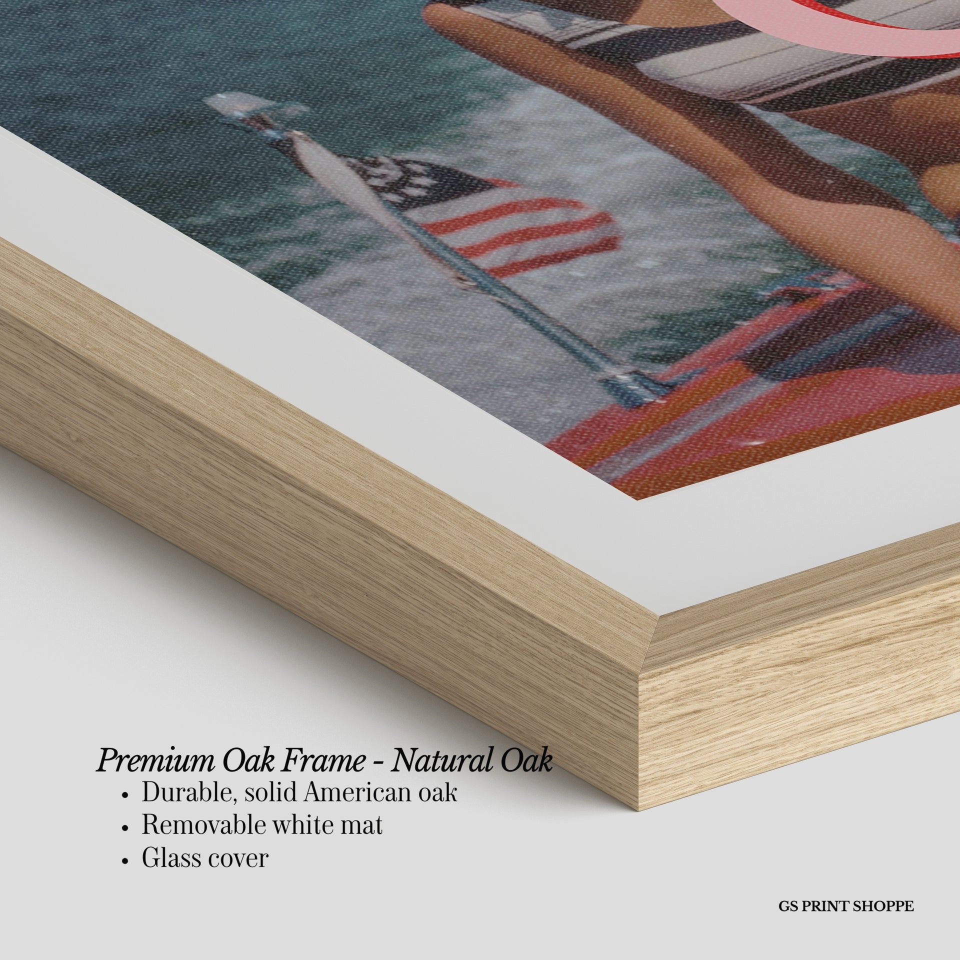 Premium Oak Frame: Our premium oak frame is crafted from solid American oak, offering a warm, natural feel with a high-end finish. We complete this elevated offering with a bright white removable mat and real glass for a versatile and polished look.