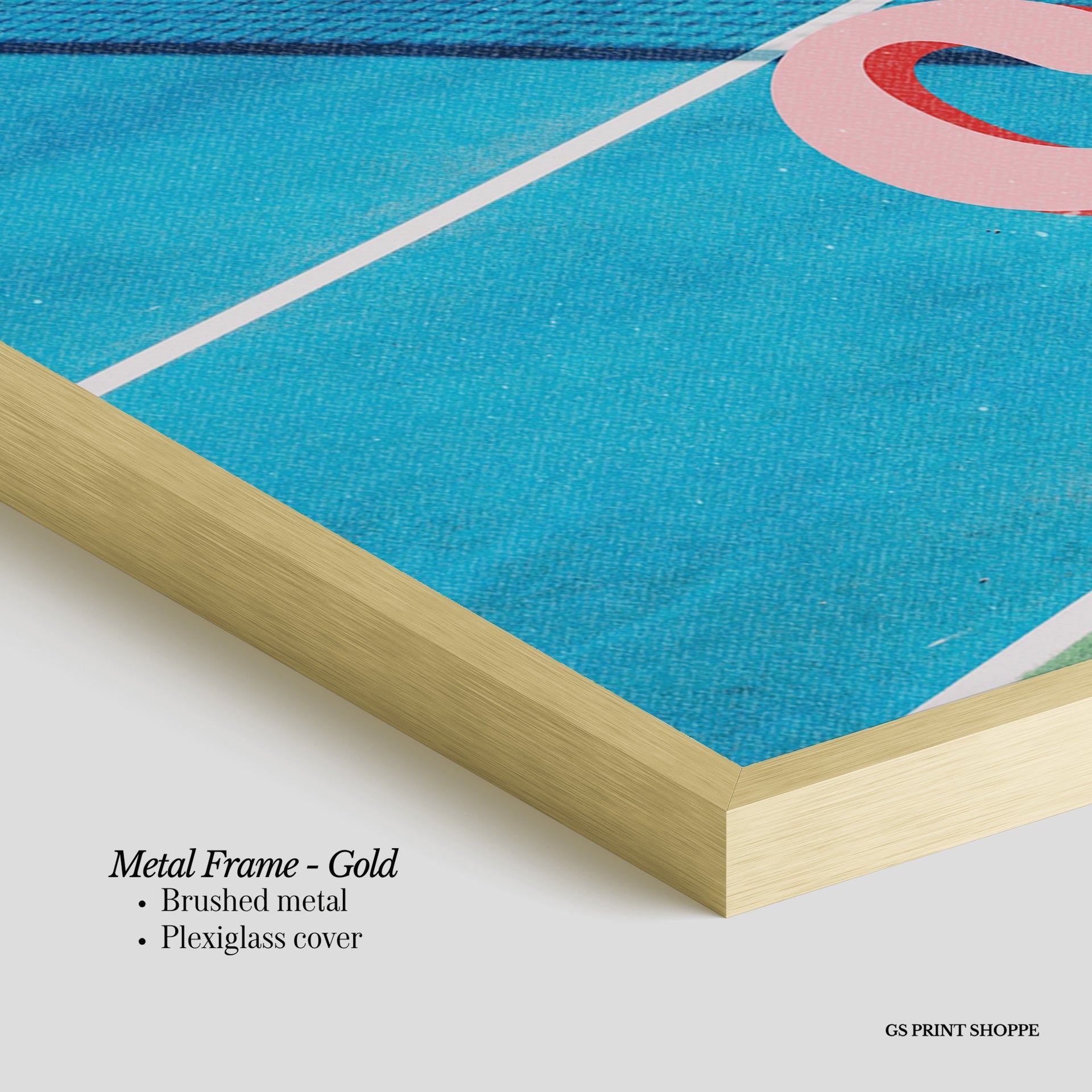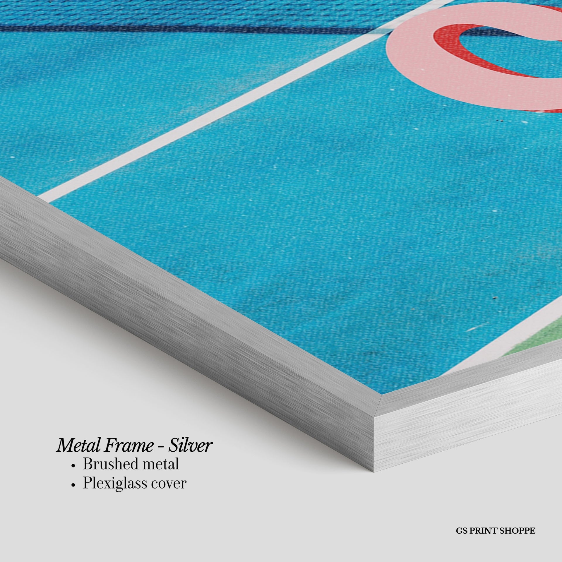 Metal Frame: Sleek and modern, our metal frame is crafted with brushed metal for a polished finish. It comes with durable plexiglass and sturdy metal hangers for horizontal or vertical display.
