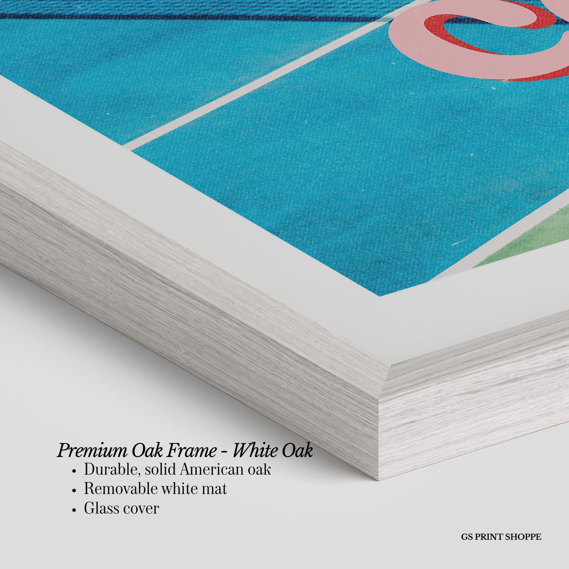 Premium Oak Frame: Our premium oak frame is crafted from solid American oak, offering a warm, natural feel with a high-end finish. We complete this elevated offering with a bright white removable mat and real glass for a versatile and polished look.