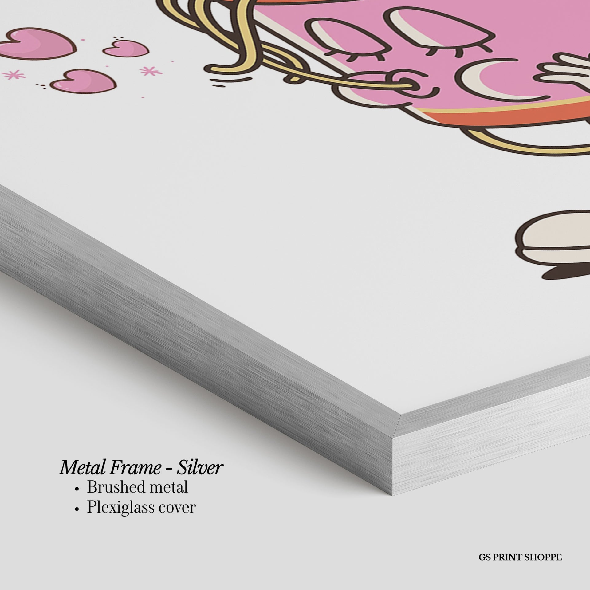 Metal Frame: Sleek and modern, our metal frame is crafted with brushed metal for a polished finish. It comes with durable plexiglass and sturdy metal hangers for horizontal or vertical display.