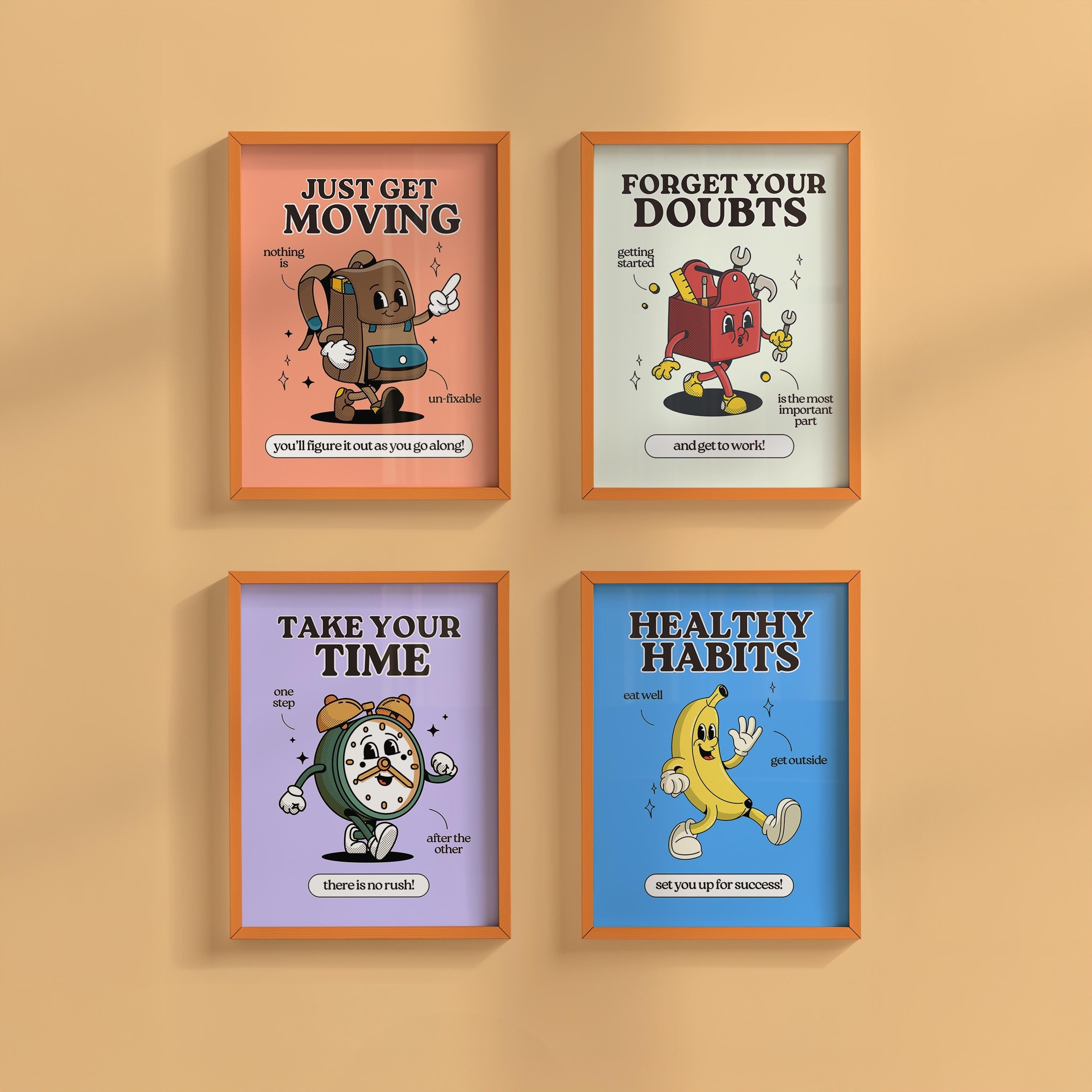 Set of Four Positive Habits Classroom Vertical Digital Art Prints