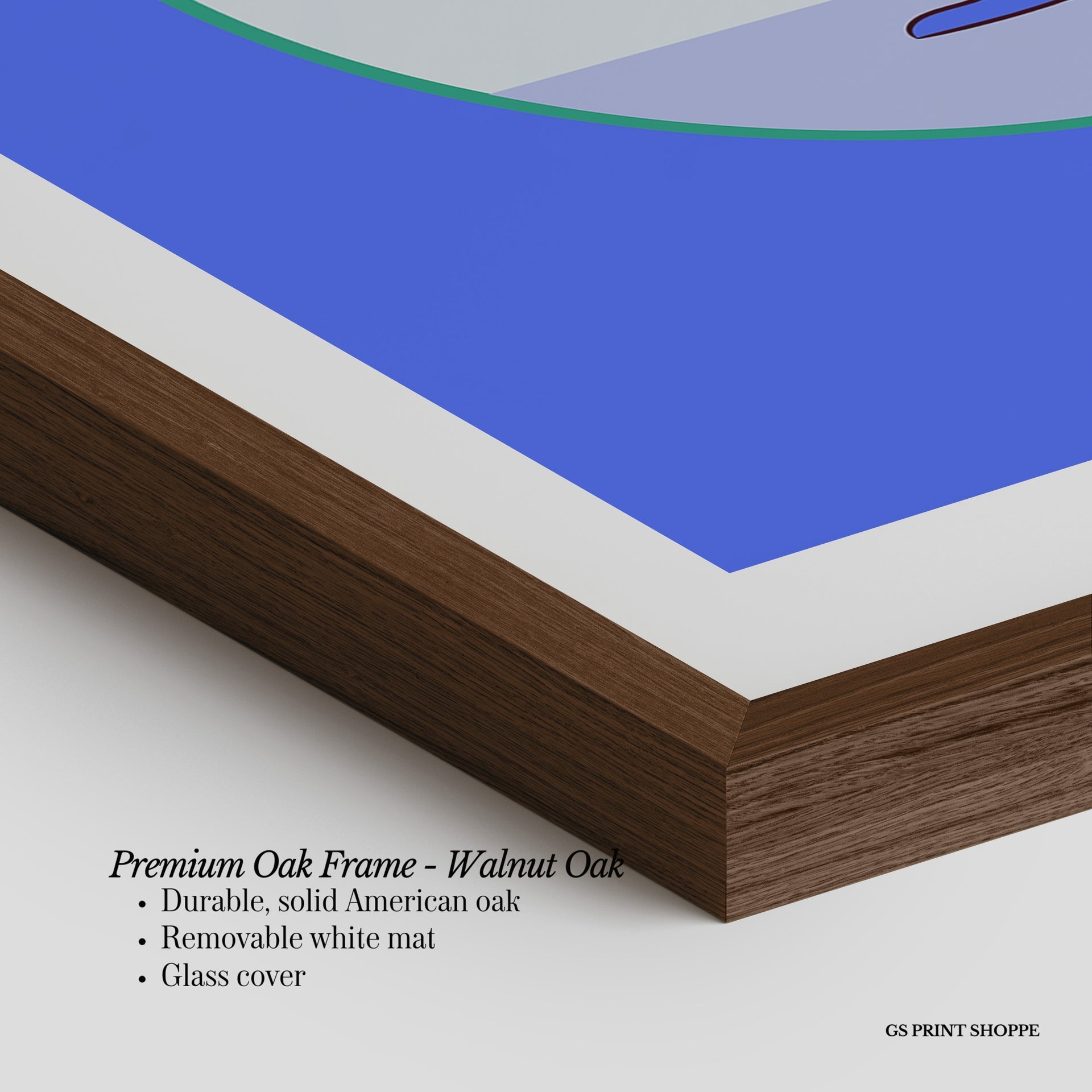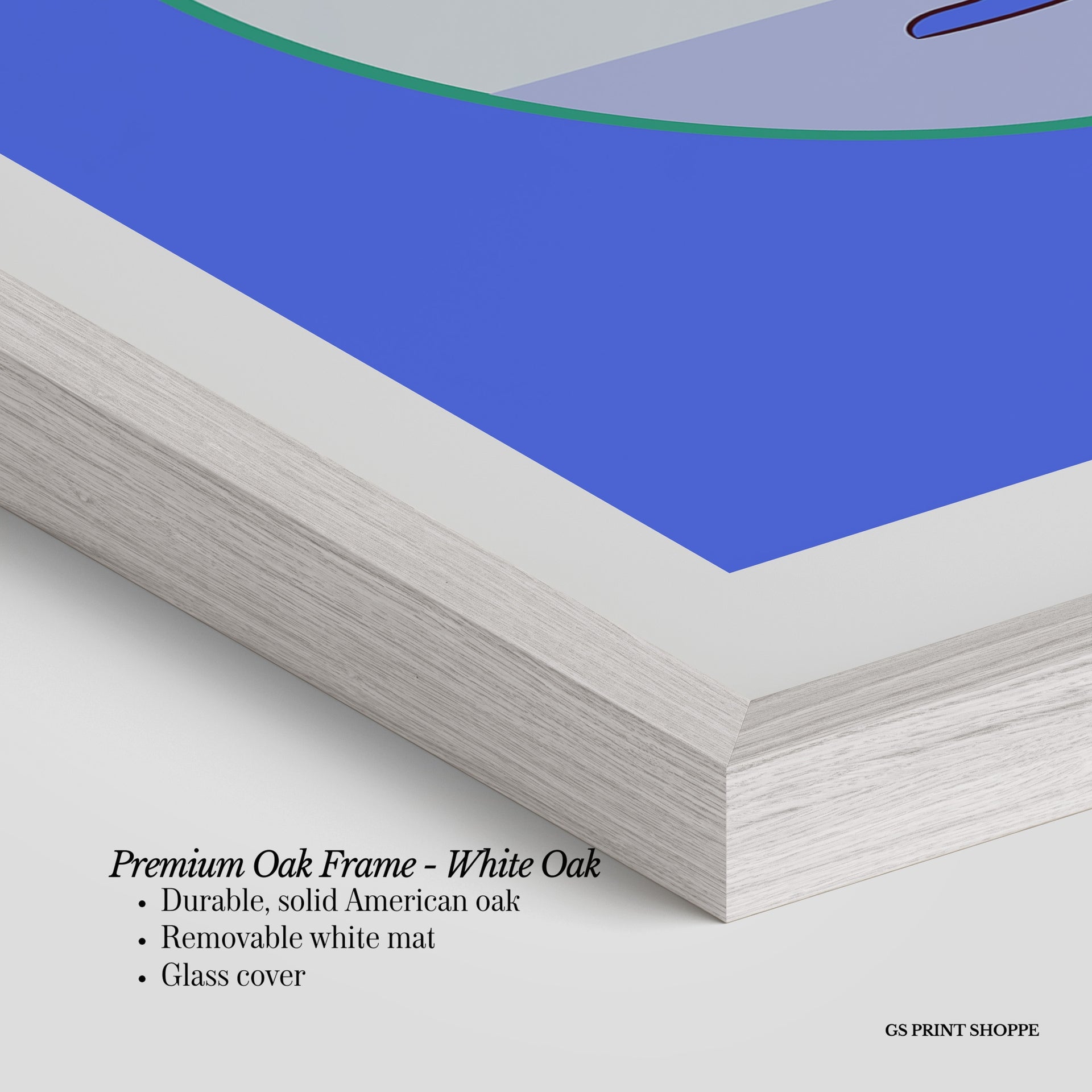 Premium Oak Frame: Our premium oak frame is crafted from solid American oak, offering a warm, natural feel with a high-end finish. We complete this elevated offering with a bright white removable mat and real glass for a versatile and polished look.