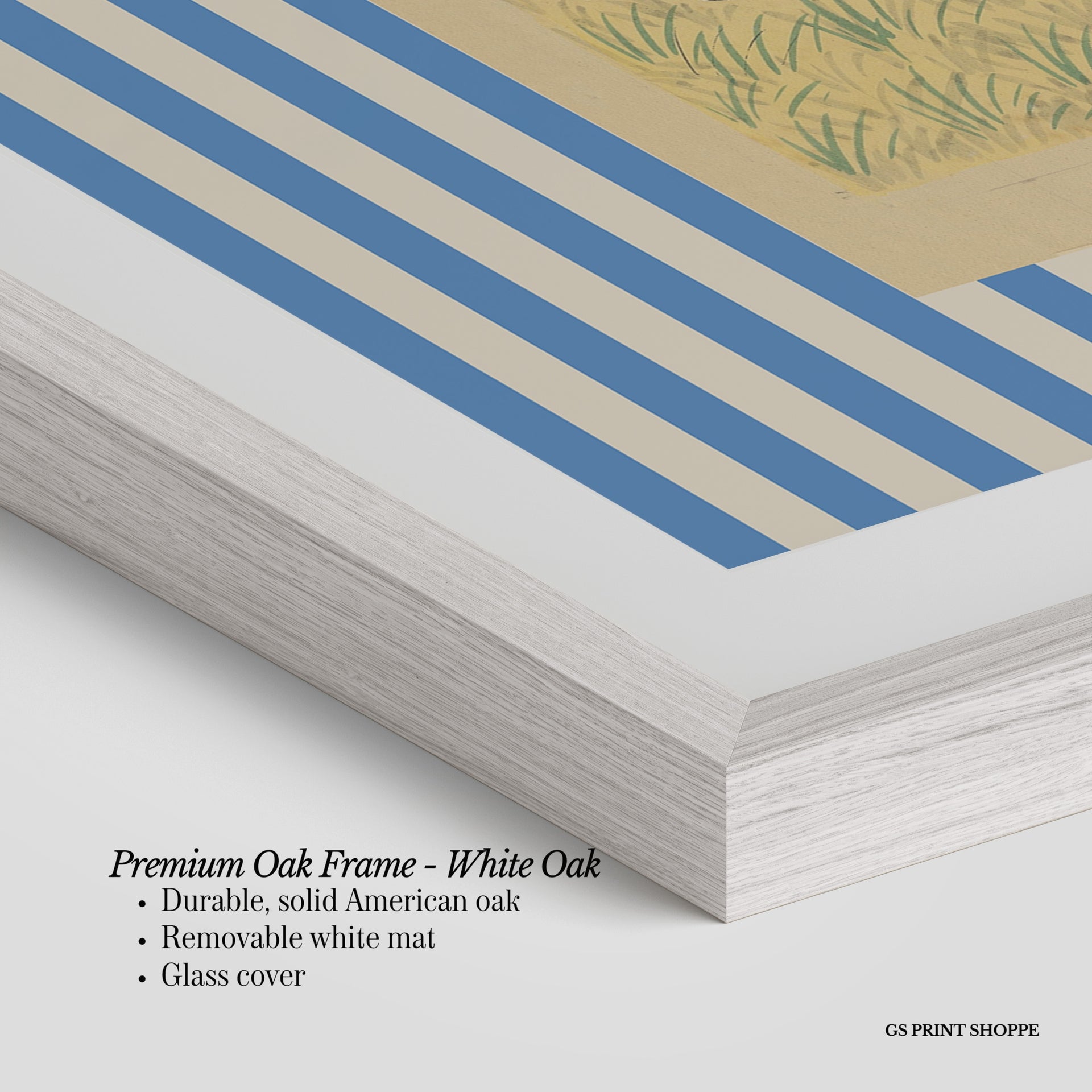 Premium Oak Frame: Our premium oak frame is crafted from solid American oak, offering a warm, natural feel with a high-end finish. We complete this elevated offering with a bright white removable mat and real glass for a versatile and polished look.