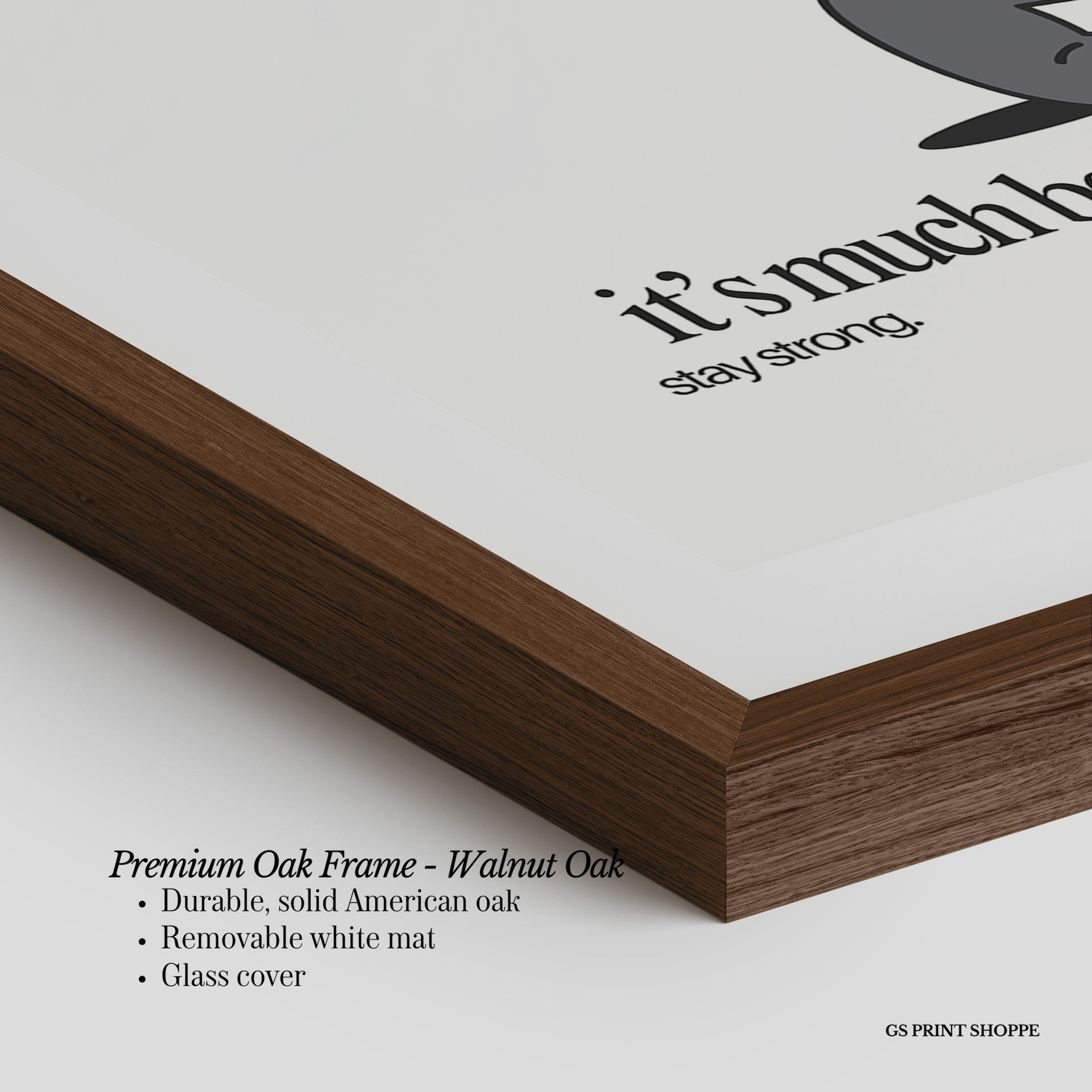 Premium Oak Frame: Our premium oak frame is crafted from solid American oak, offering a warm, natural feel with a high-end finish. We complete this elevated offering with a bright white removable mat and real glass for a versatile and polished look.