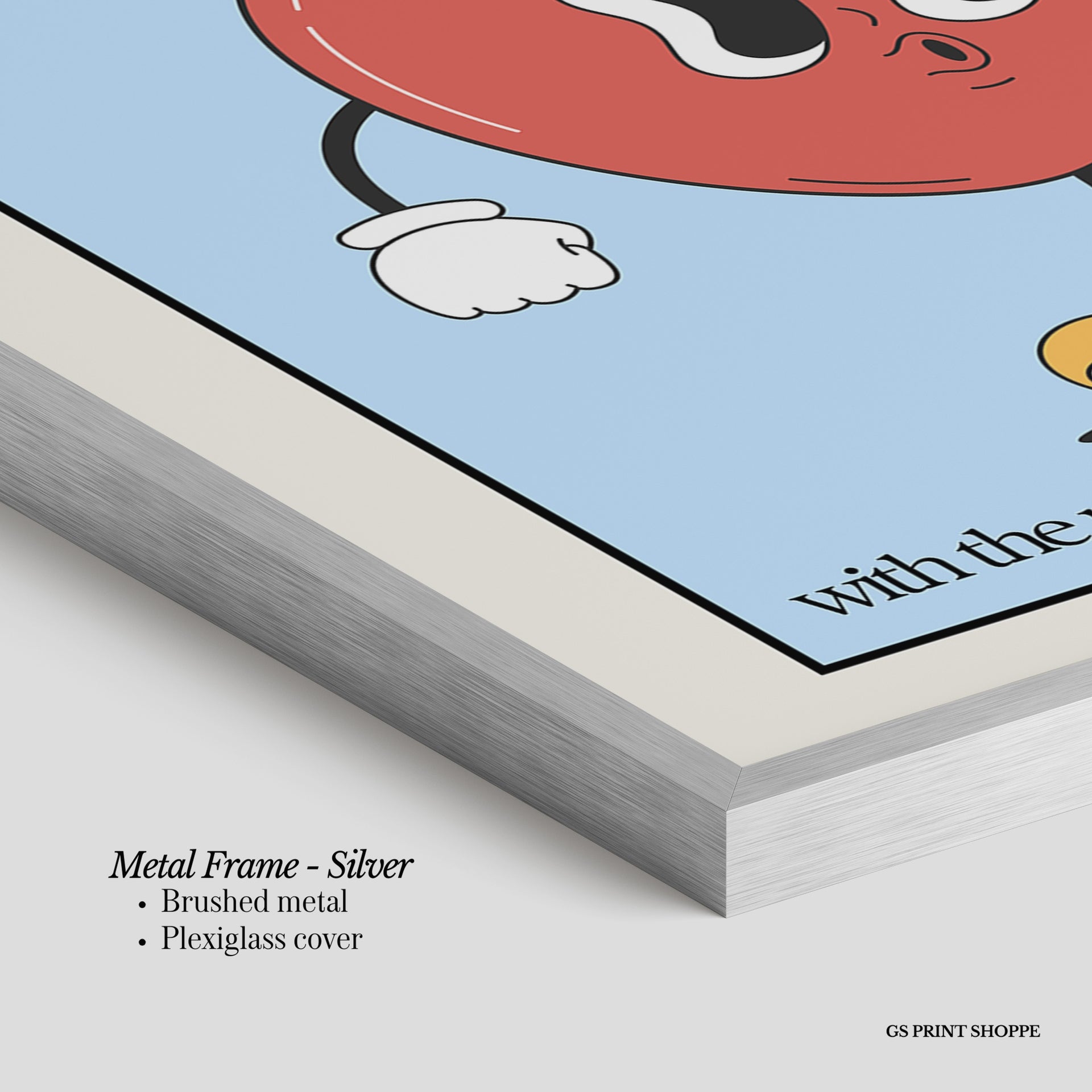 Metal Frame: Sleek and modern, our metal frame is crafted with brushed metal for a polished finish. It comes with durable plexiglass and sturdy metal hangers for horizontal or vertical display.