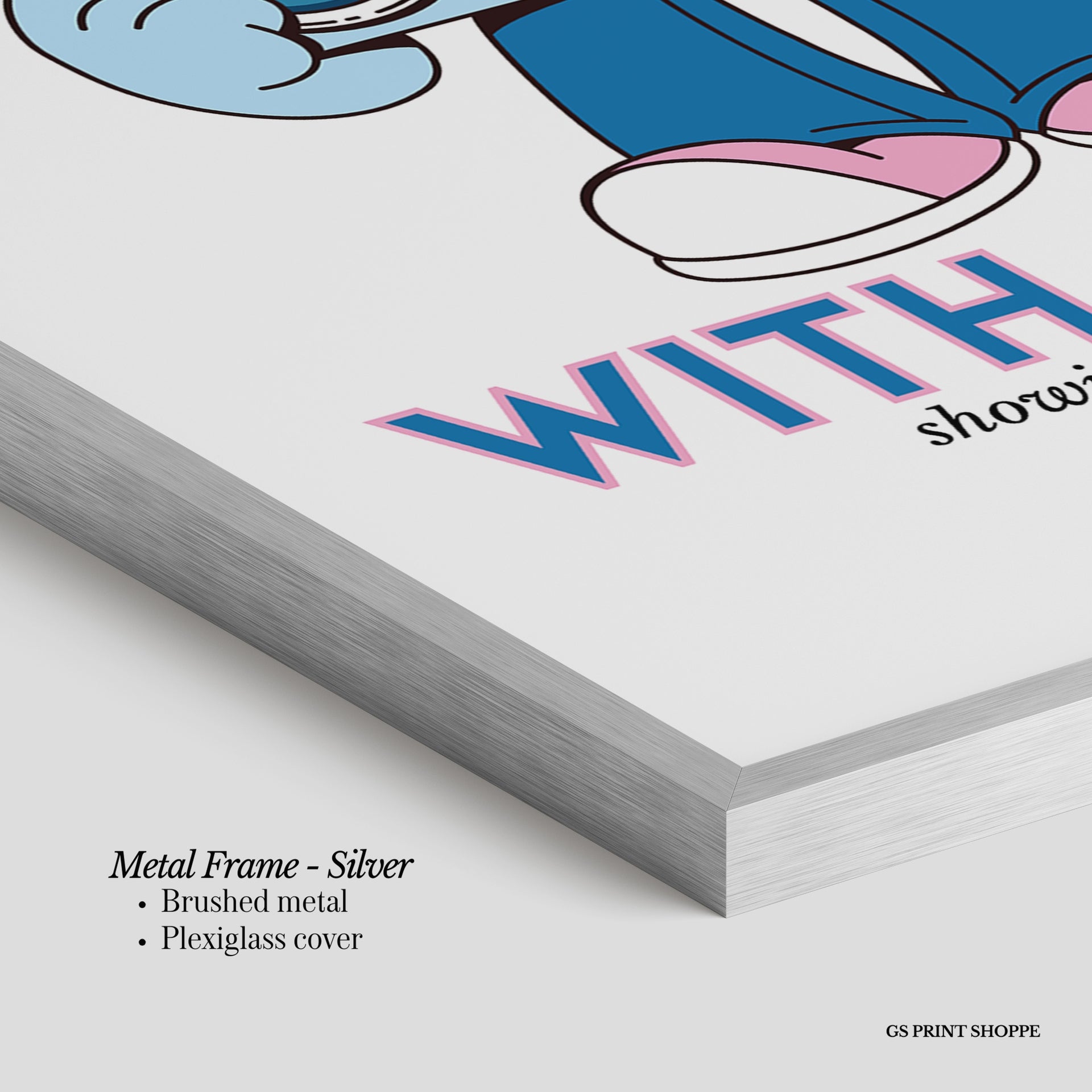 Metal Frame: Sleek and modern, our metal frame is crafted with brushed metal for a polished finish. It comes with durable plexiglass and sturdy metal hangers for horizontal or vertical display.