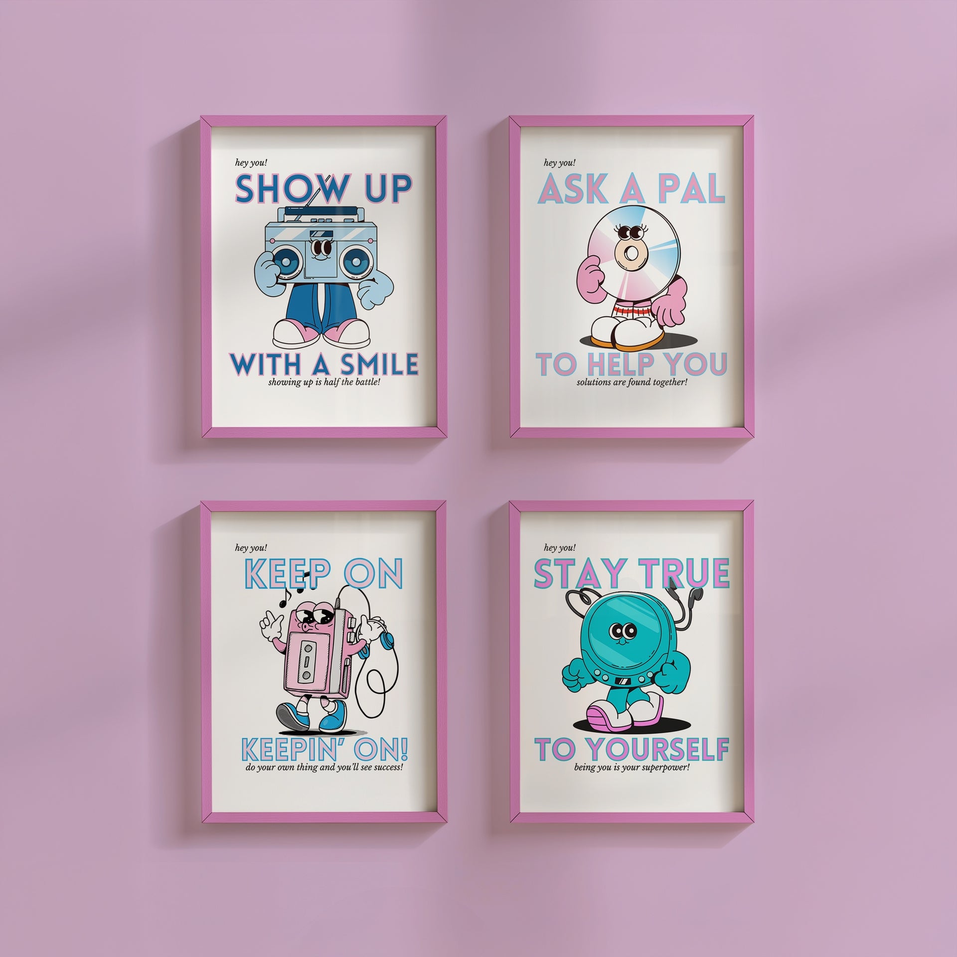 Set of Four Kids and Classroom Music Cartoon Vertical Art Print