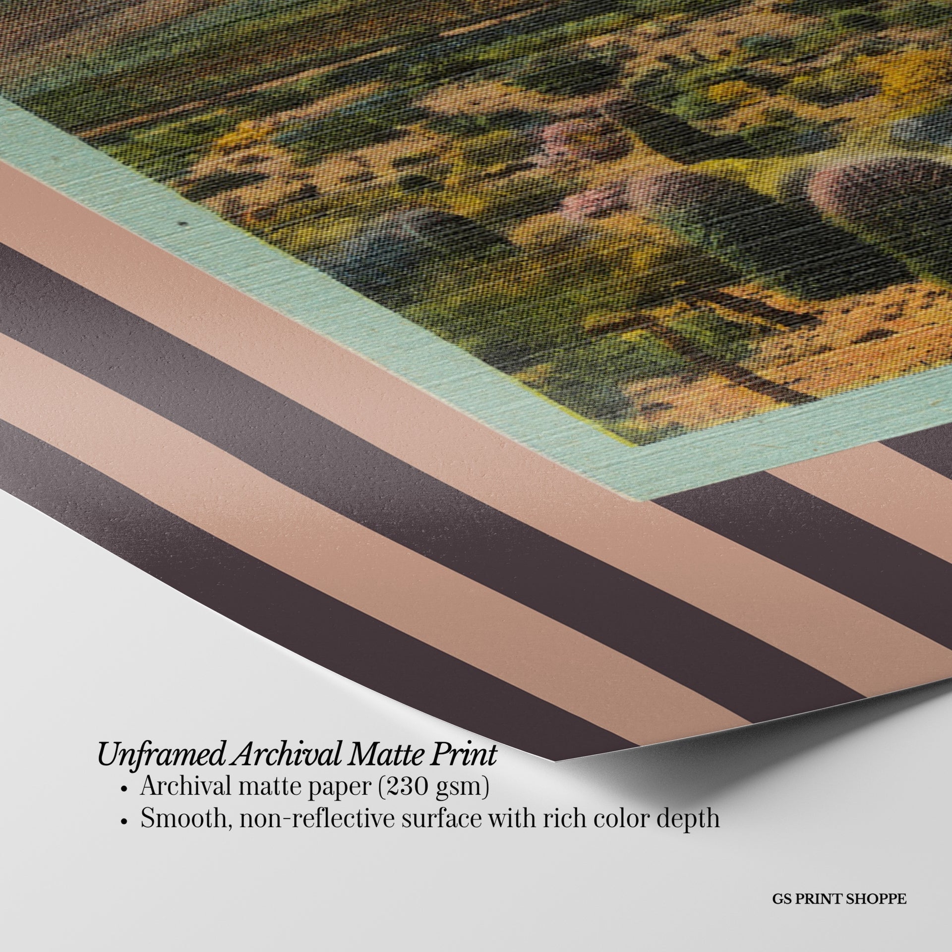 Unframed: This print is professionally printed on archival matte paper (230 gsm), a smooth, acid-free paper with a non-reflective finish. It will be carefully packaged to arrive safely at your door.