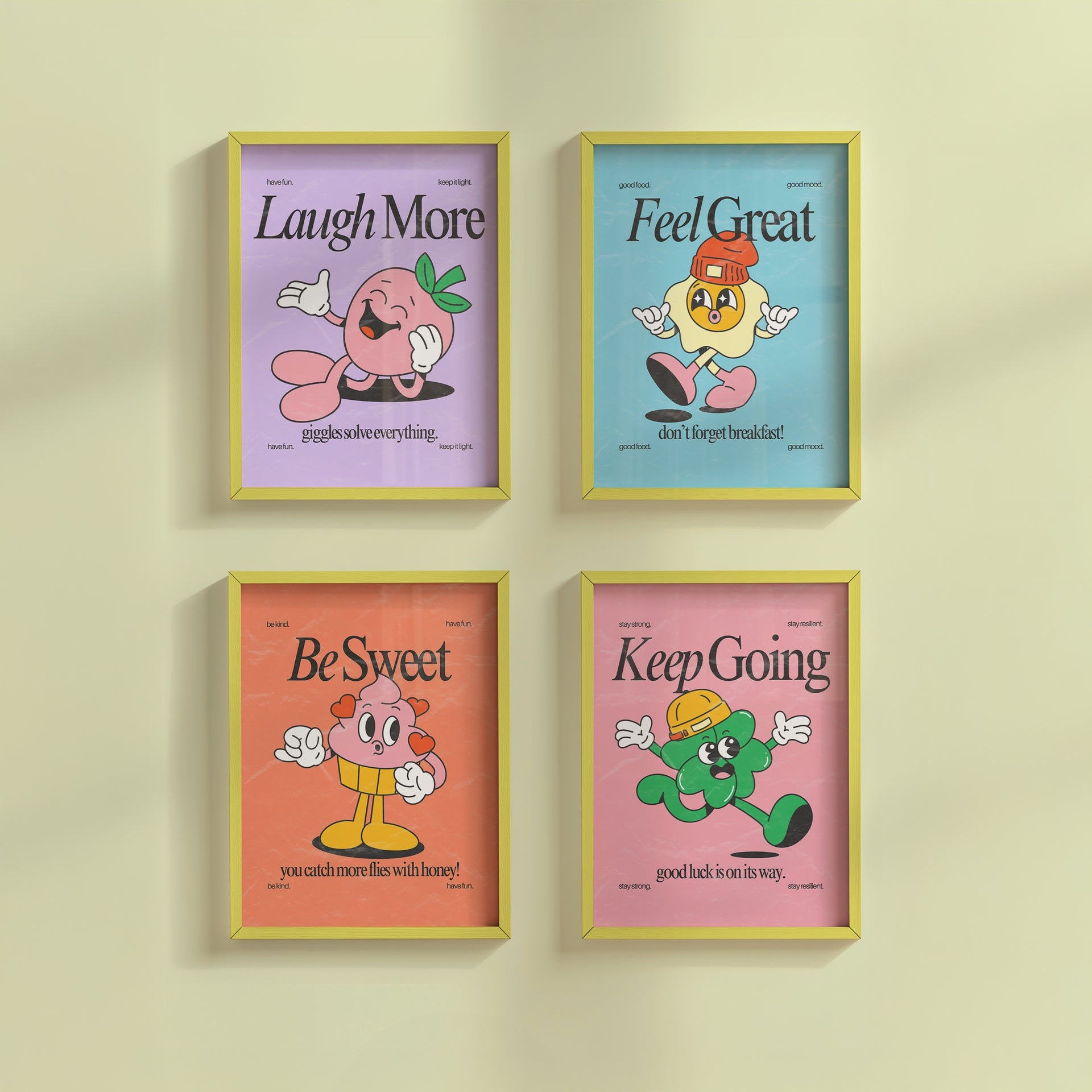 Set of Four Positivity Classroom Cartoon Vertical Art Prints