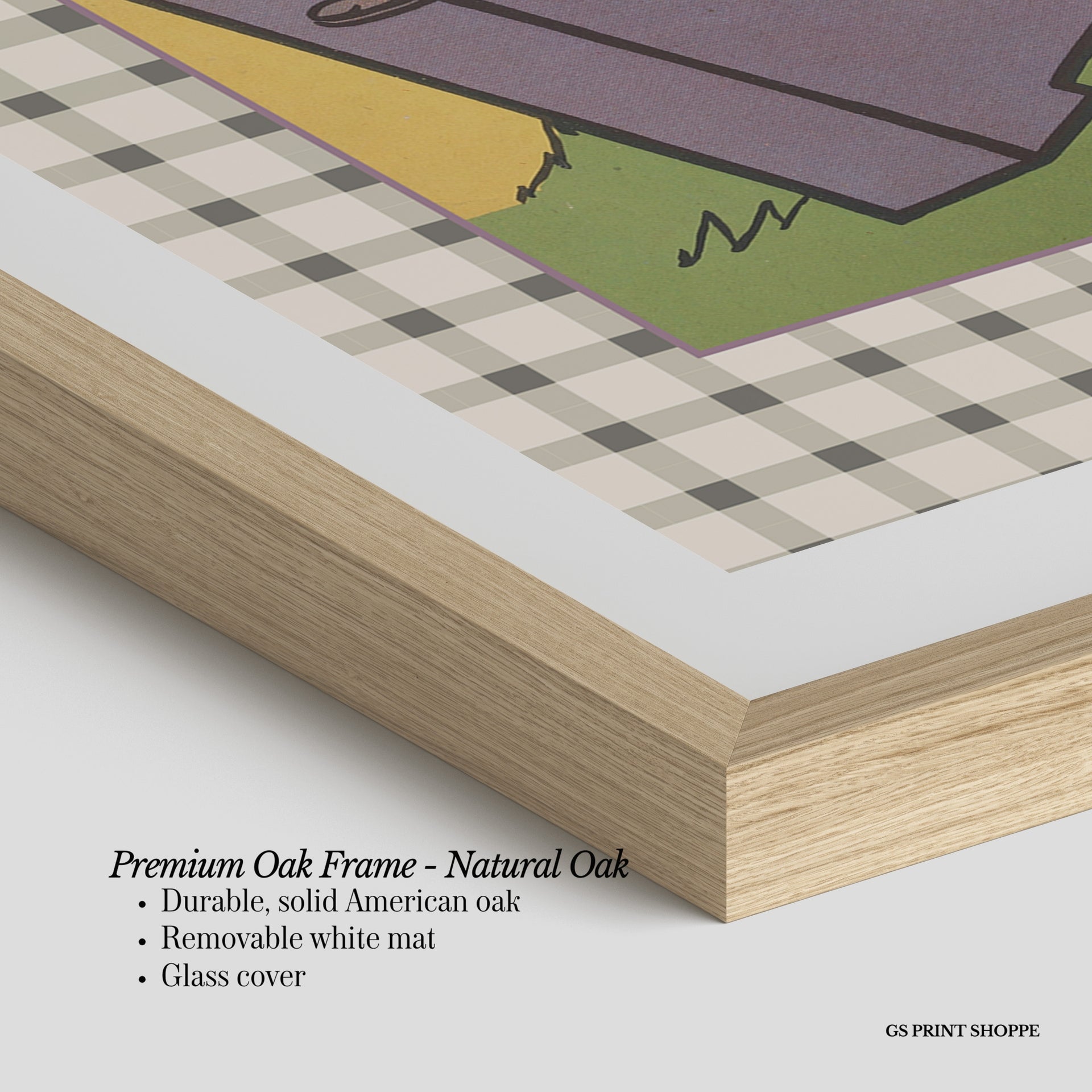Premium Oak Frame: Our premium oak frame is crafted from solid American oak, offering a warm, natural feel with a high-end finish. We complete this elevated offering with a bright white removable mat and real glass for a versatile and polished look.