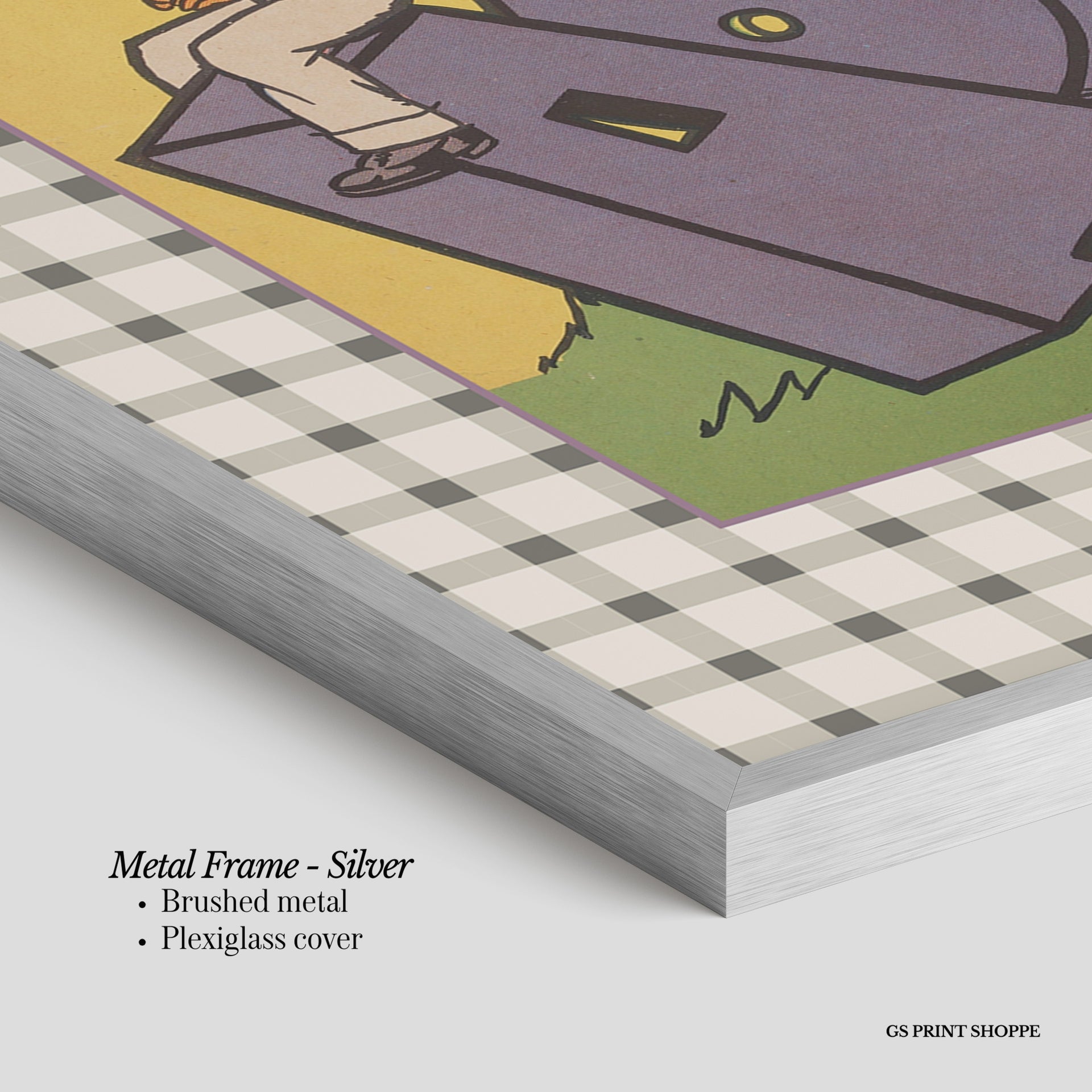 Metal Frame: Sleek and modern, our metal frame is crafted with brushed metal for a polished finish. It comes with durable plexiglass and sturdy metal hangers for horizontal or vertical display.