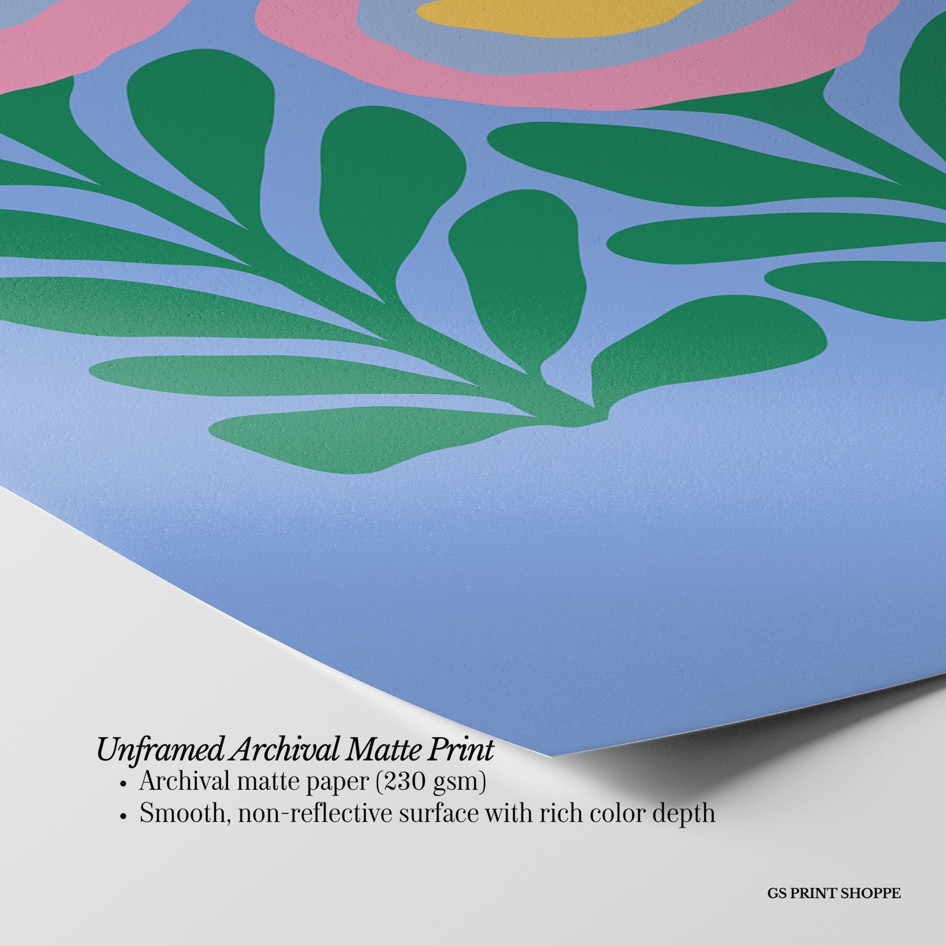 Unframed: This print is professionally printed on archival matte paper (230 gsm), a smooth, acid-free paper with a non-reflective finish. It will be carefully packaged to arrive safely at your door.