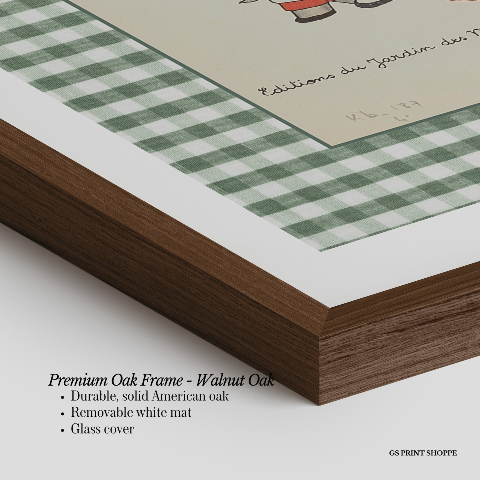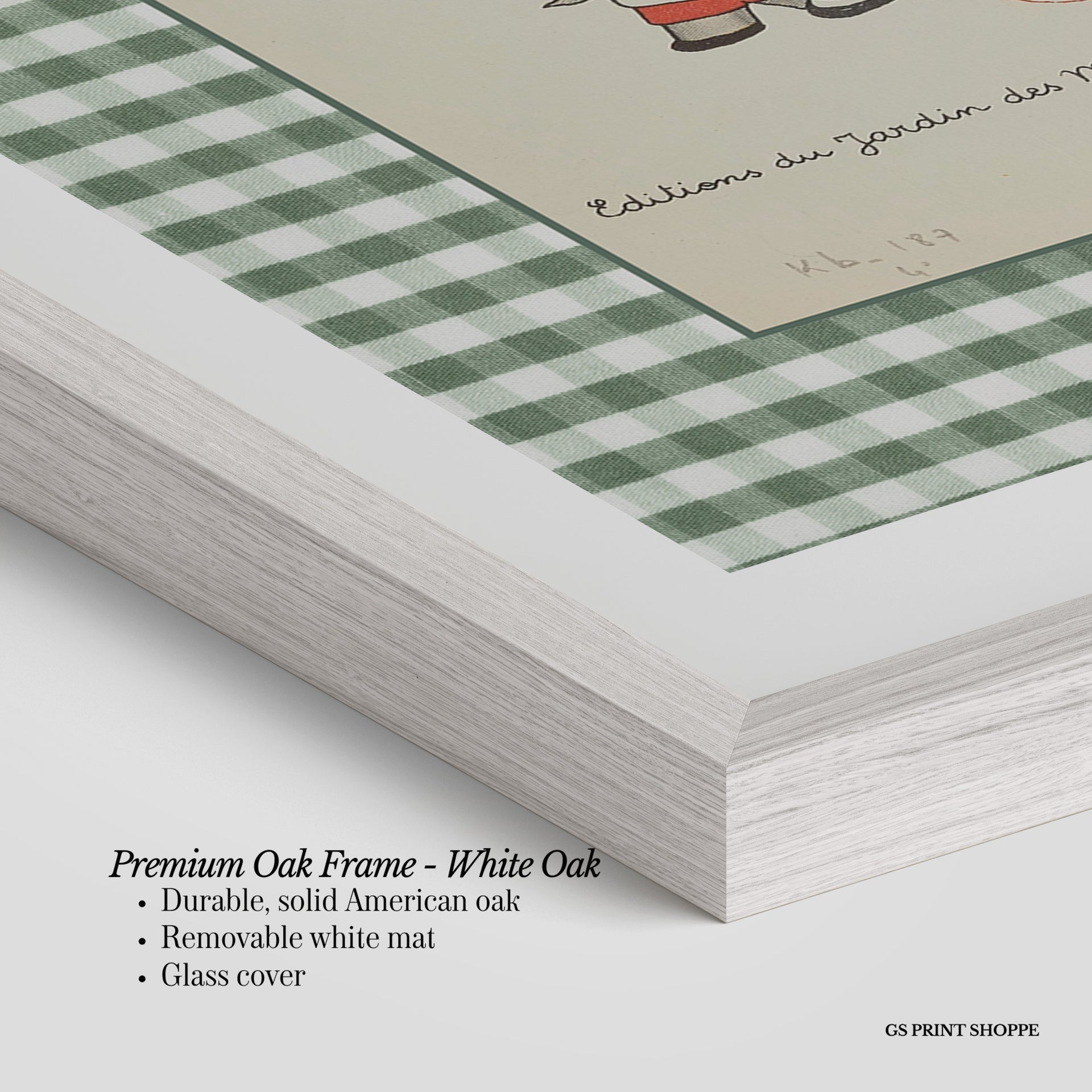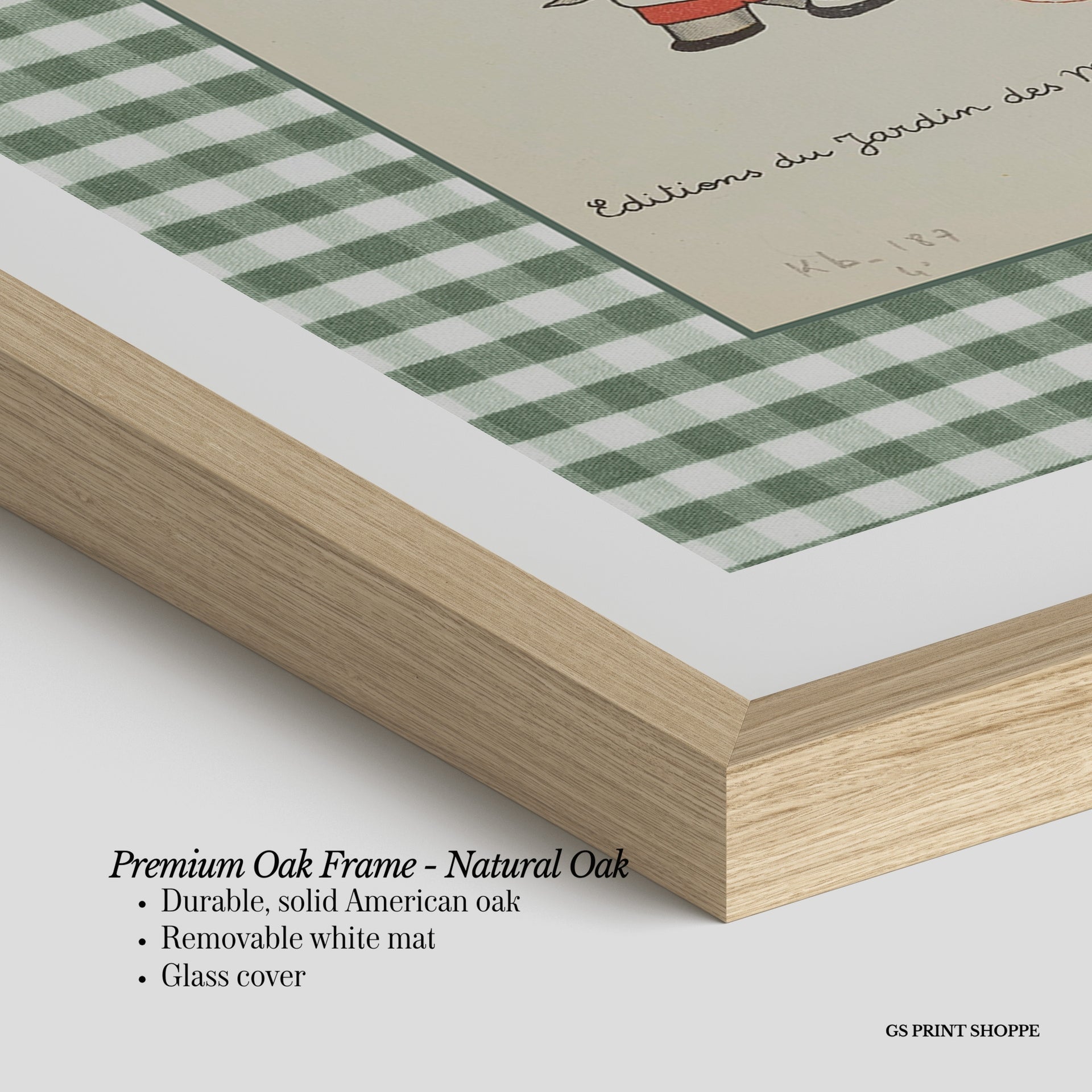 Premium Oak Frame: Our premium oak frame is crafted from solid American oak, offering a warm, natural feel with a high-end finish. We complete this elevated offering with a bright white removable mat and real glass for a versatile and polished look.