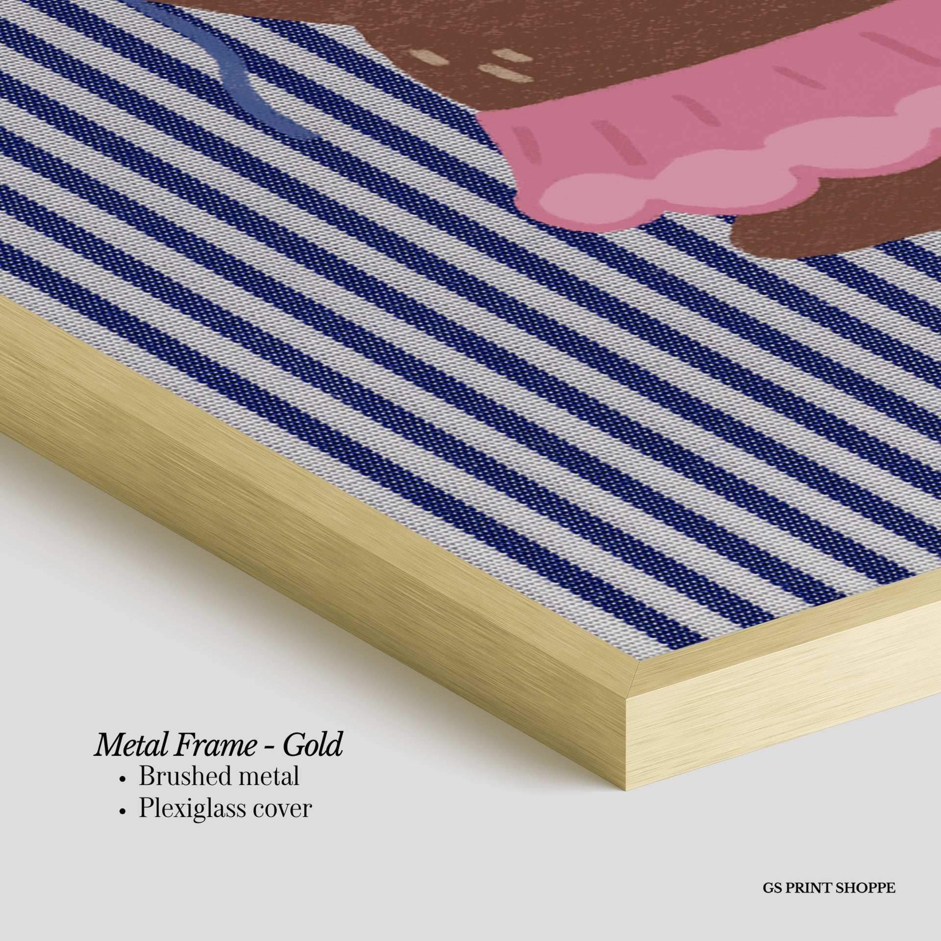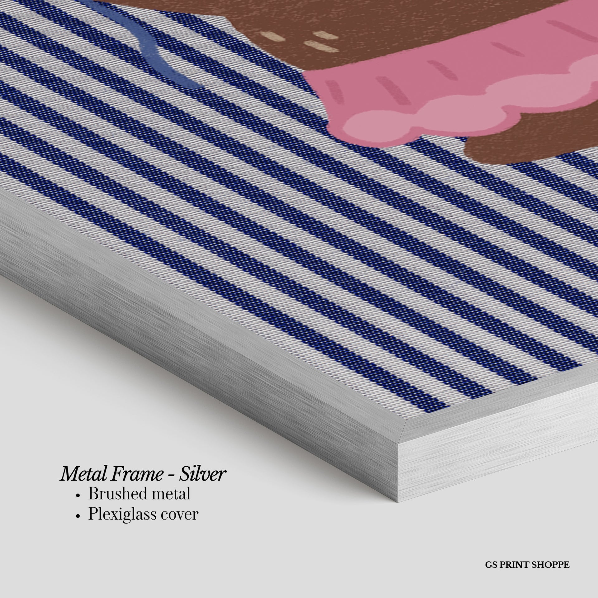 Metal Frame: Sleek and modern, our metal frame is crafted with brushed metal for a polished finish. It comes with durable plexiglass and sturdy metal hangers for horizontal or vertical display.