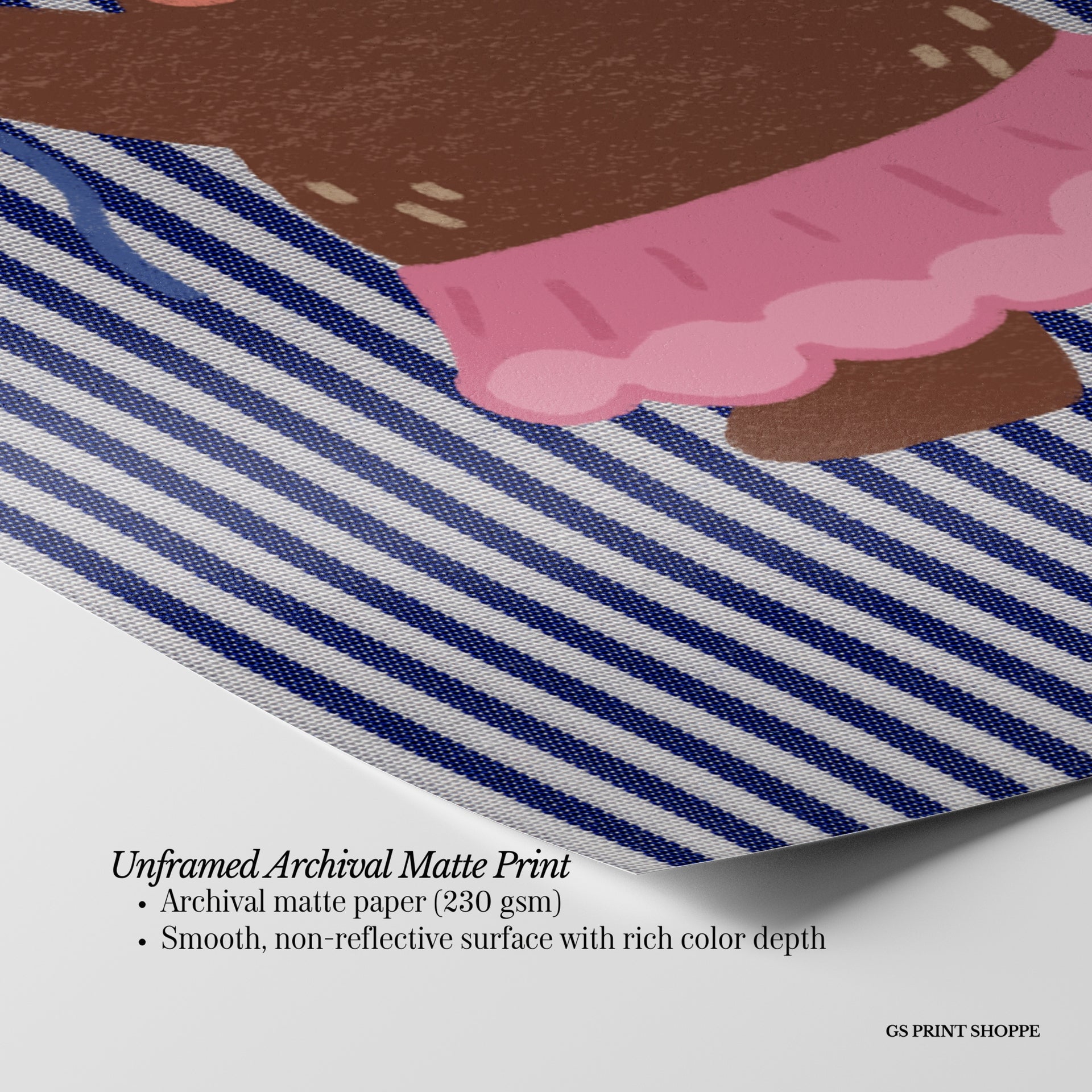 Unframed: This print is professionally printed on archival matte paper (230 gsm), a smooth, acid-free paper with a non-reflective finish. It will be carefully packaged to arrive safely at your door.