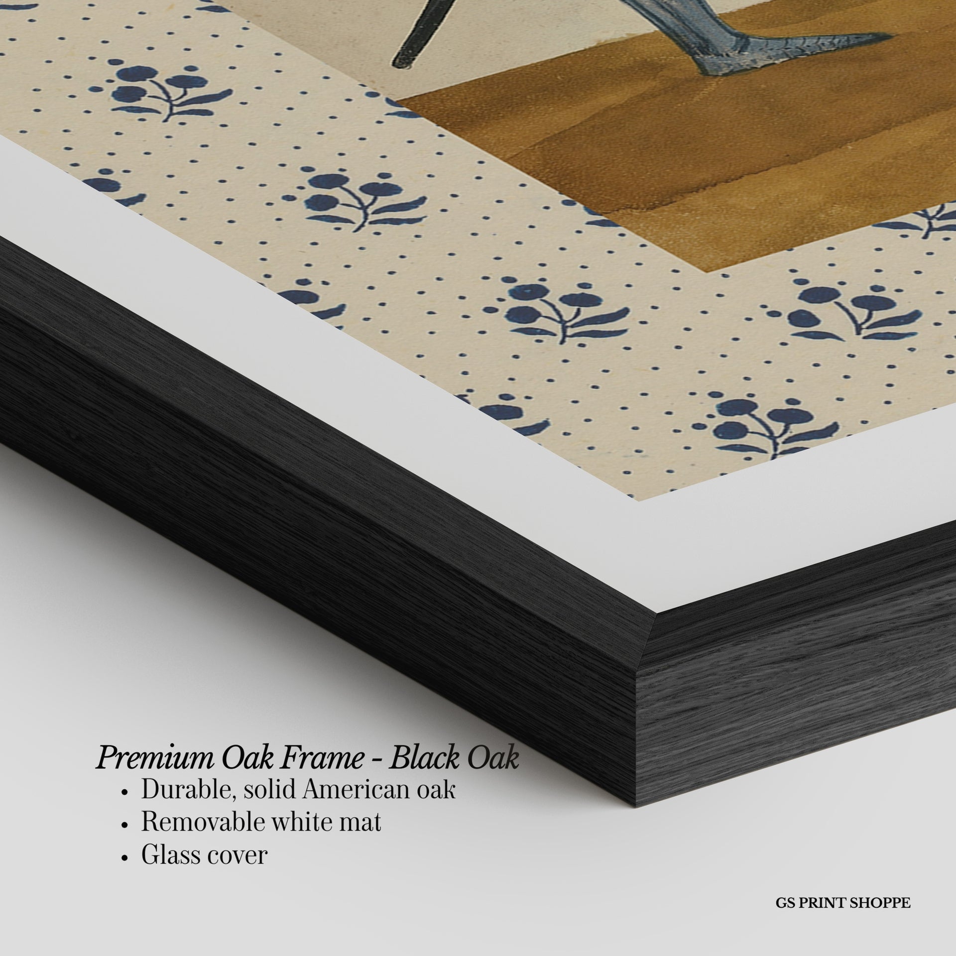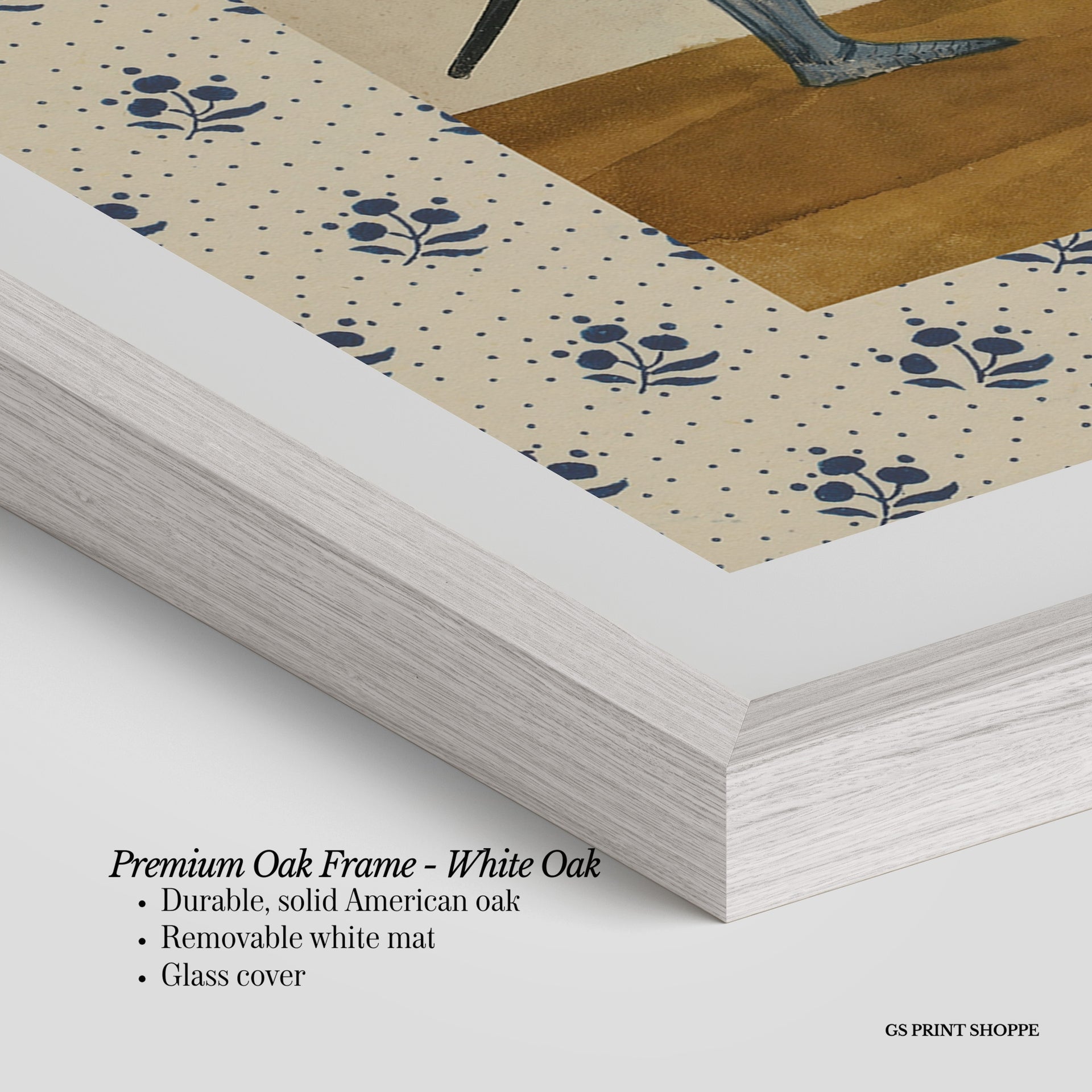 Premium Oak Frame: Our premium oak frame is crafted from solid American oak, offering a warm, natural feel with a high-end finish. We complete this elevated offering with a bright white removable mat and real glass for a versatile and polished look.