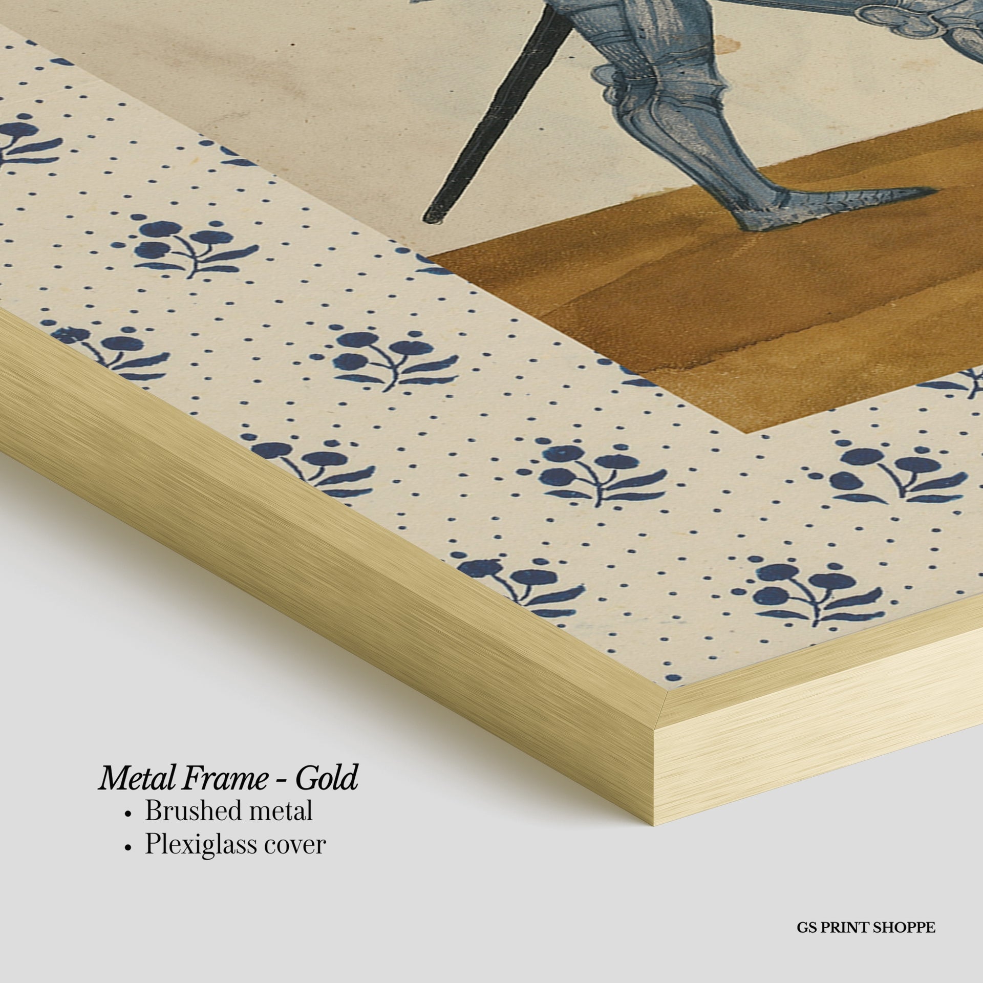 Metal Frame: Sleek and modern, our metal frame is crafted with brushed metal for a polished finish. It comes with durable plexiglass and sturdy metal hangers for horizontal or vertical display.