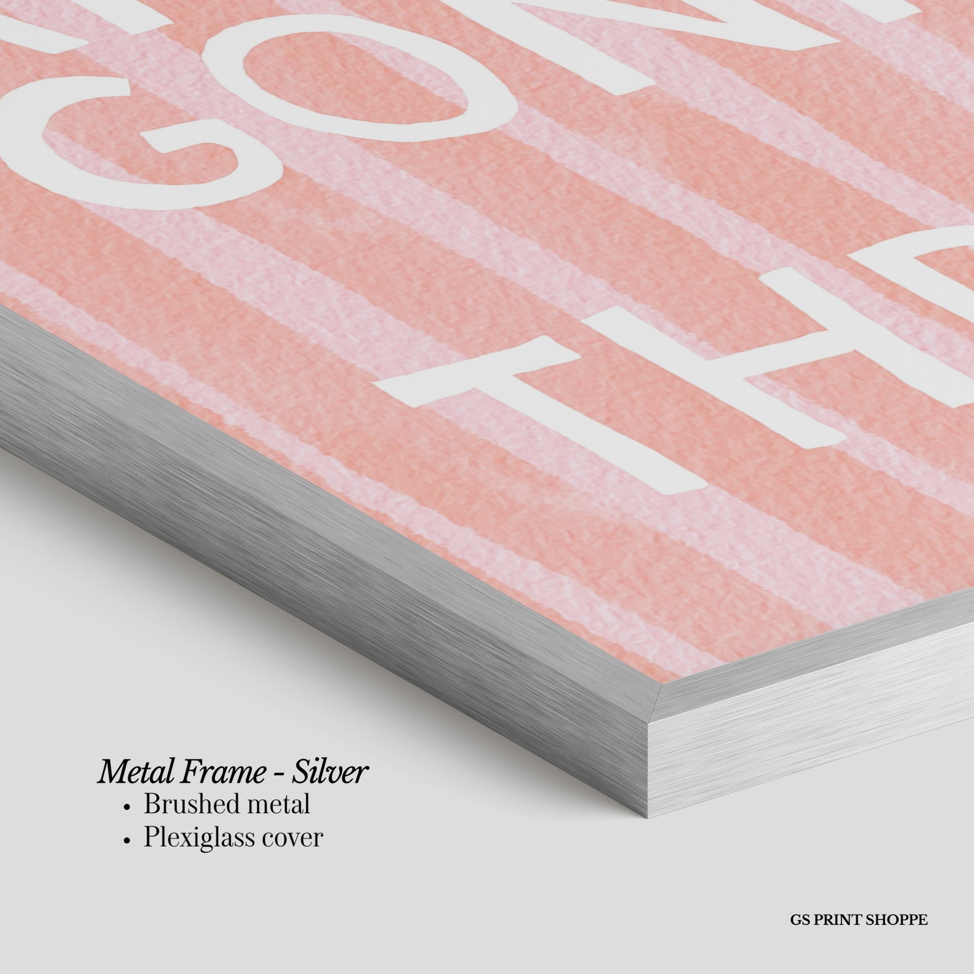 Metal Frame: Sleek and modern, our metal frame is crafted with brushed metal for a polished finish. It comes with durable plexiglass and sturdy metal hangers for horizontal or vertical display.