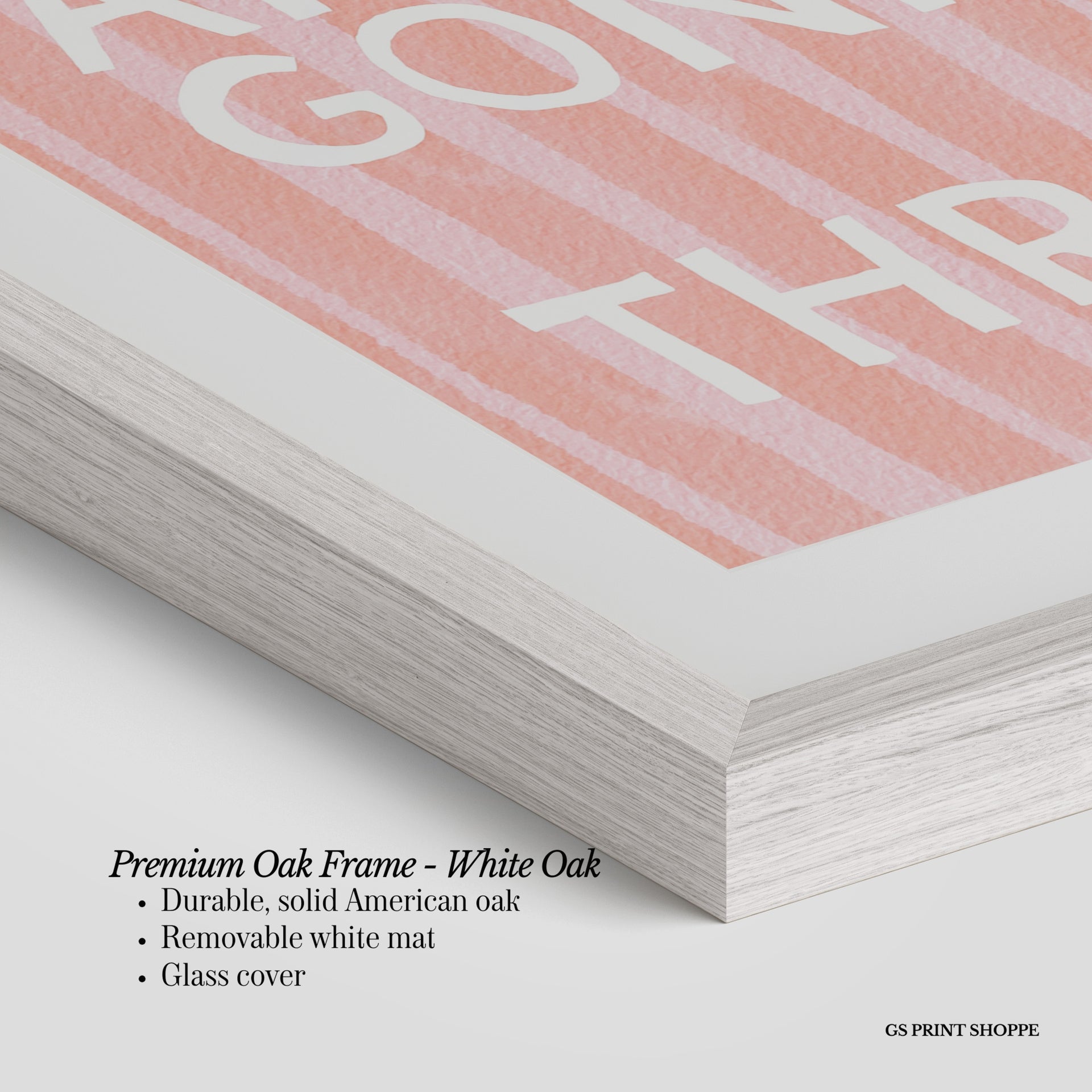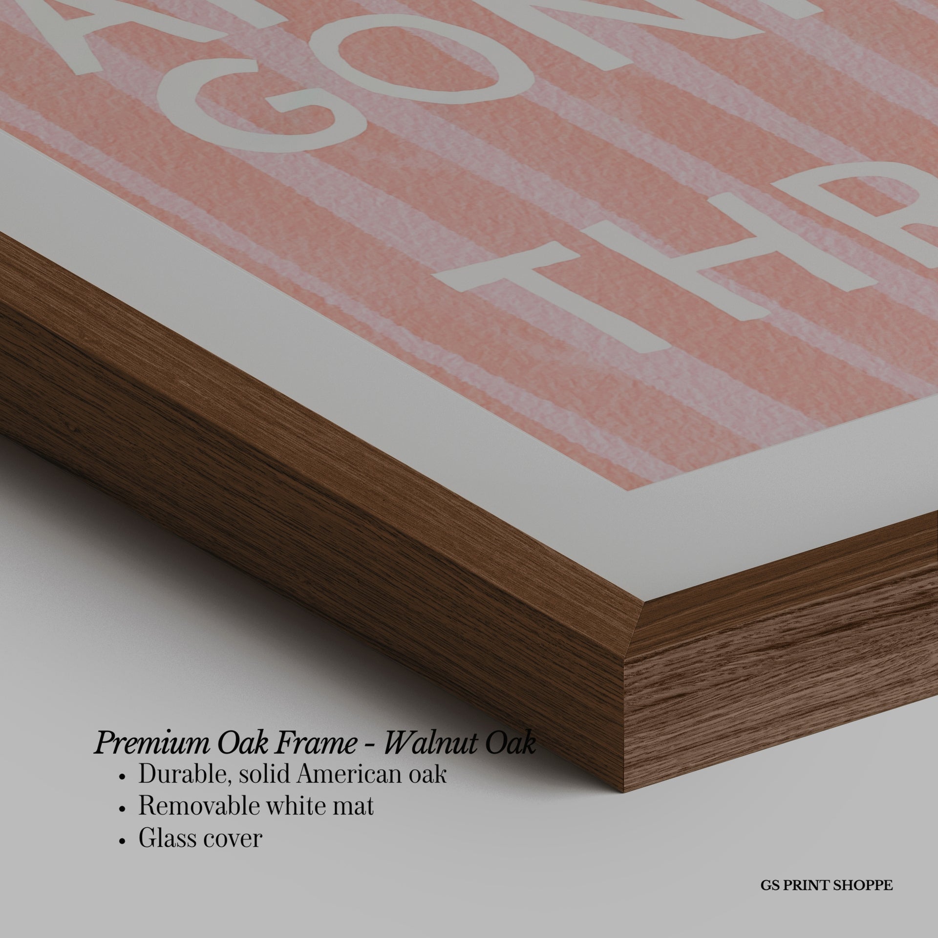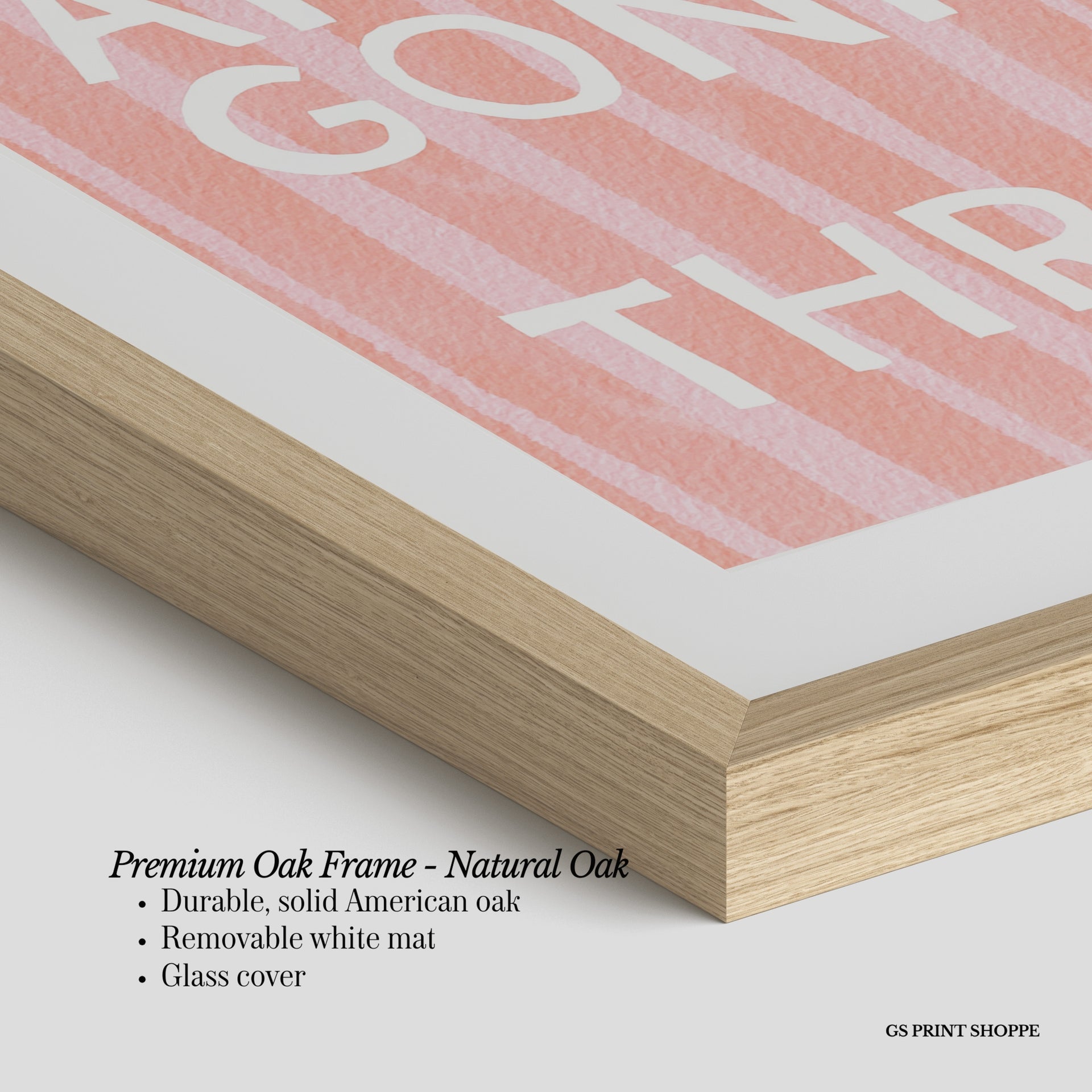 Premium Oak Frame: Our premium oak frame is crafted from solid American oak, offering a warm, natural feel with a high-end finish. We complete this elevated offering with a bright white removable mat and real glass for a versatile and polished look.