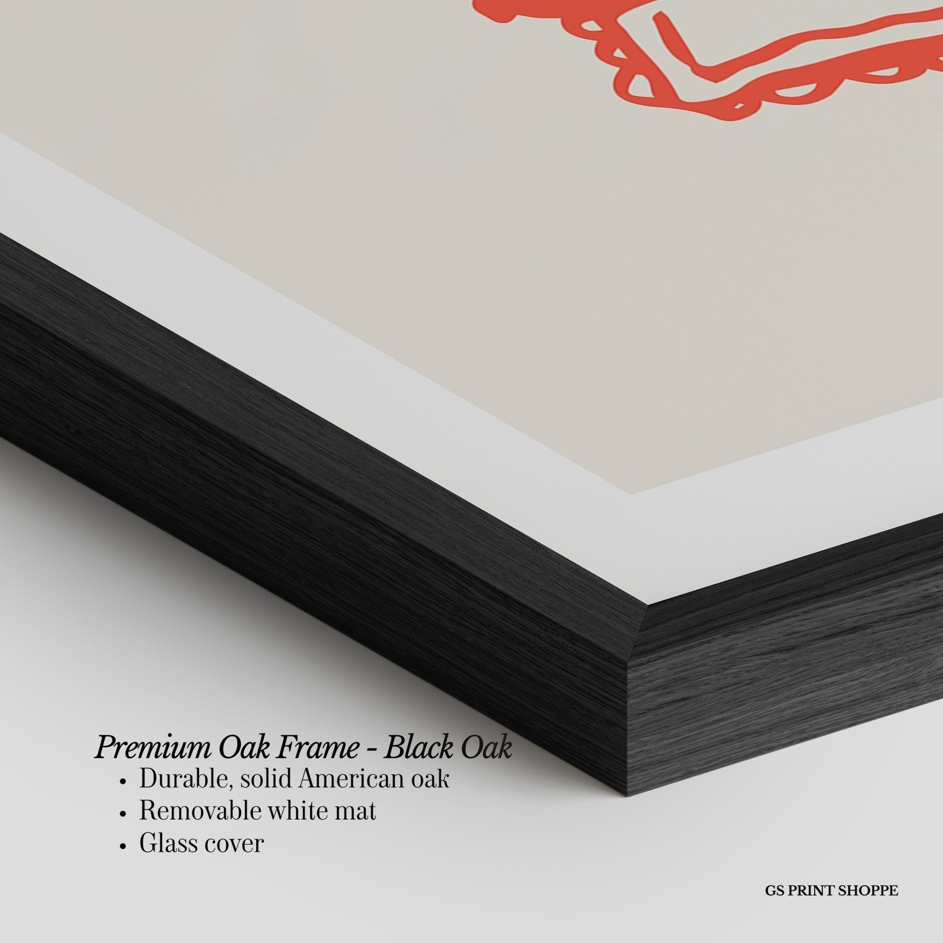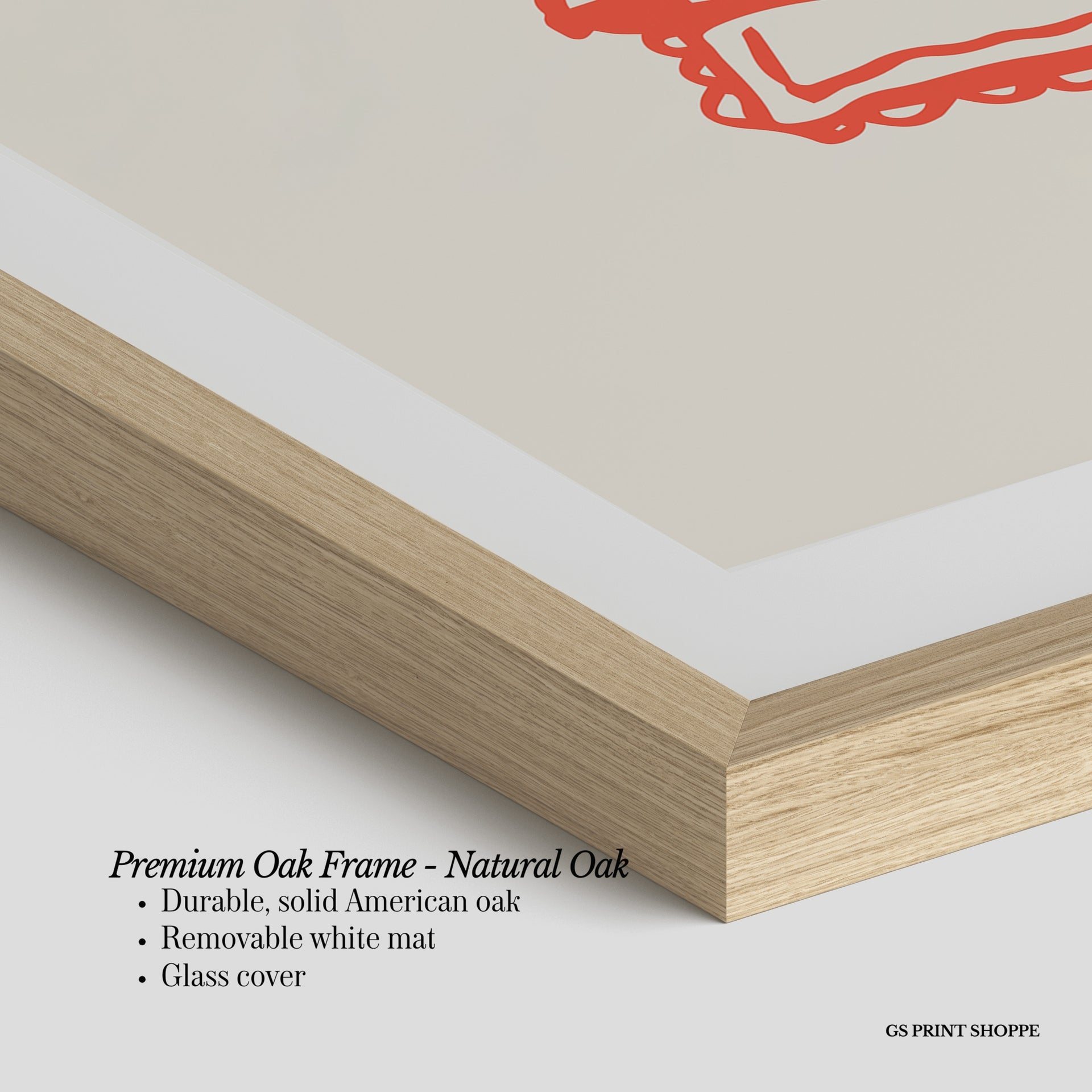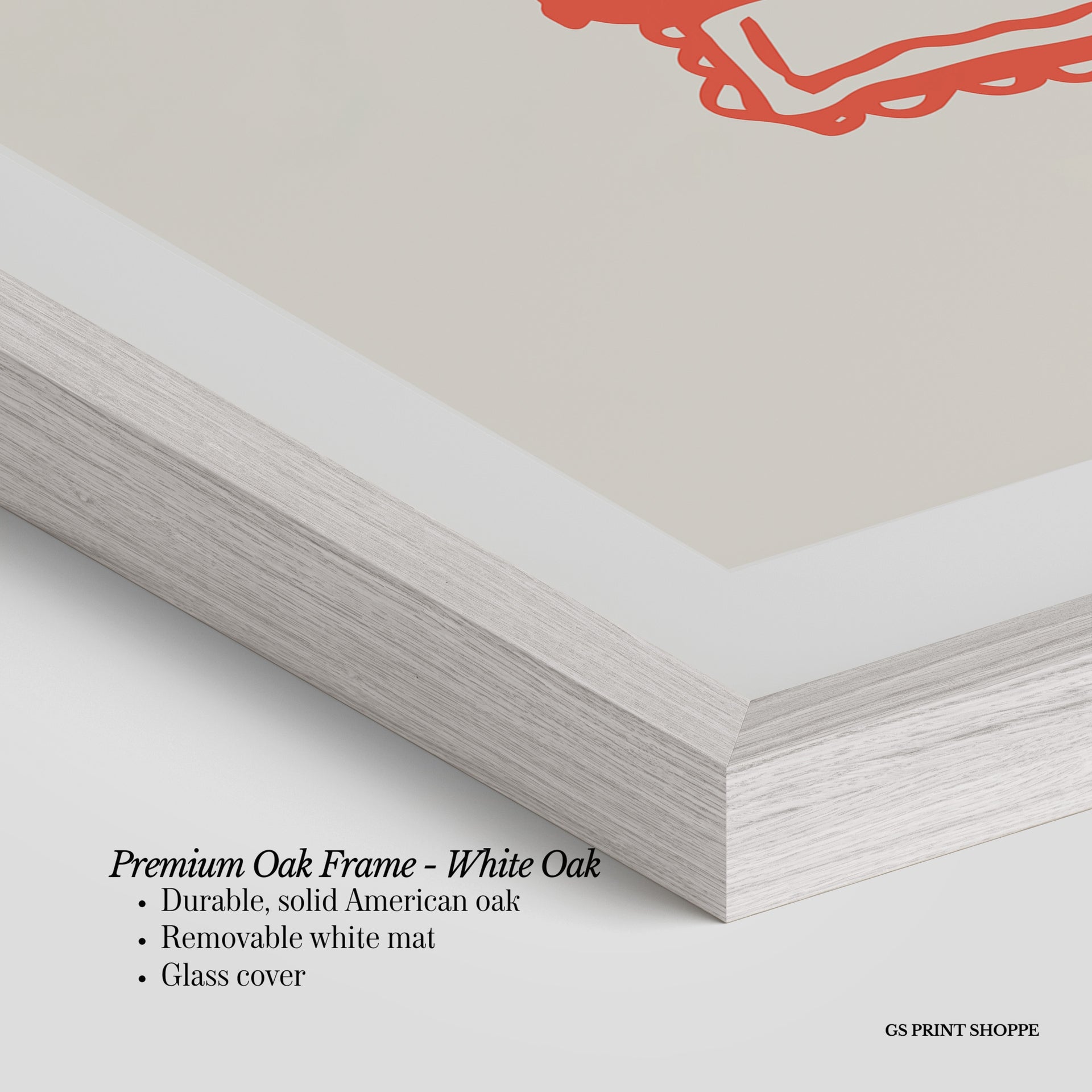 Premium Oak Frame: Our premium oak frame is crafted from solid American oak, offering a warm, natural feel with a high-end finish. We complete this elevated offering with a bright white removable mat and real glass for a versatile and polished look.