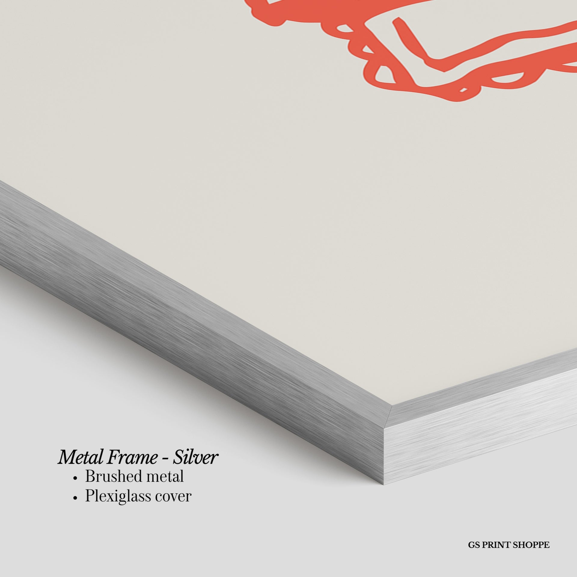 Metal Frame: Sleek and modern, our metal frame is crafted with brushed metal for a polished finish. It comes with durable plexiglass and sturdy metal hangers for horizontal or vertical display.