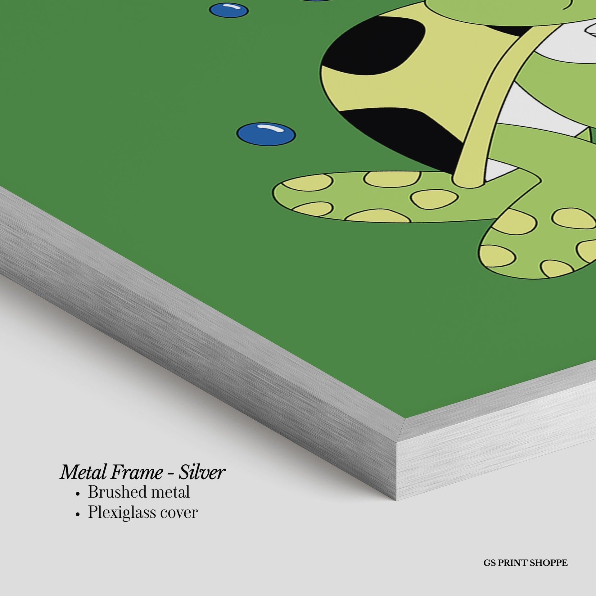 Metal Frame: Sleek and modern, our metal frame is crafted with brushed metal for a polished finish. It comes with durable plexiglass and sturdy metal hangers for horizontal or vertical display.